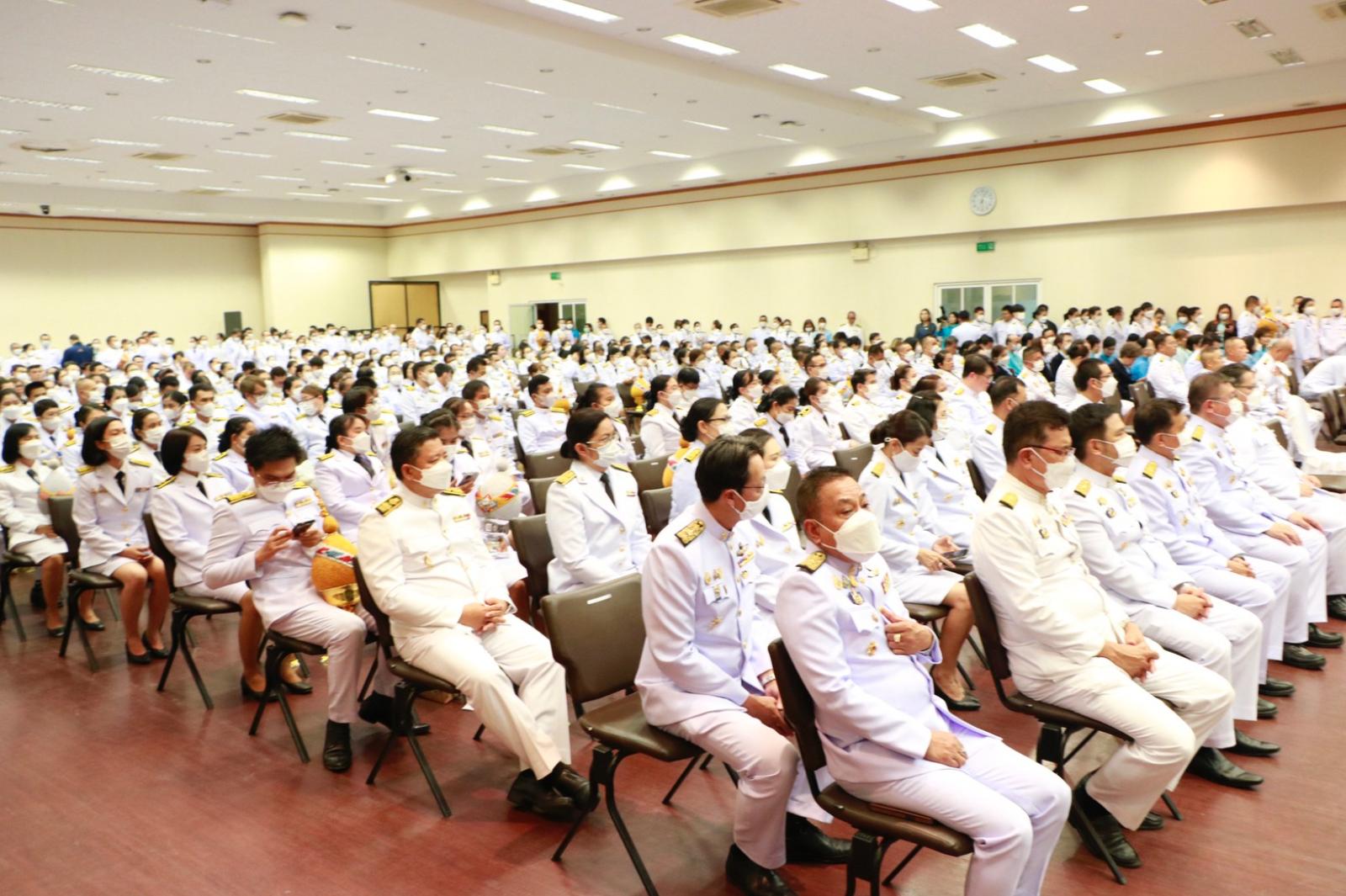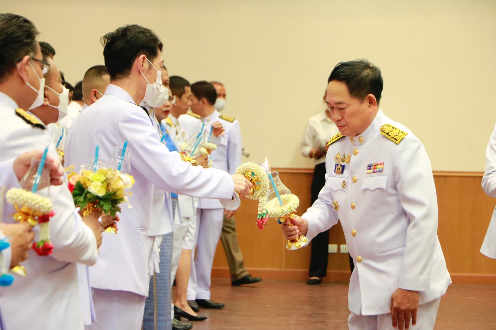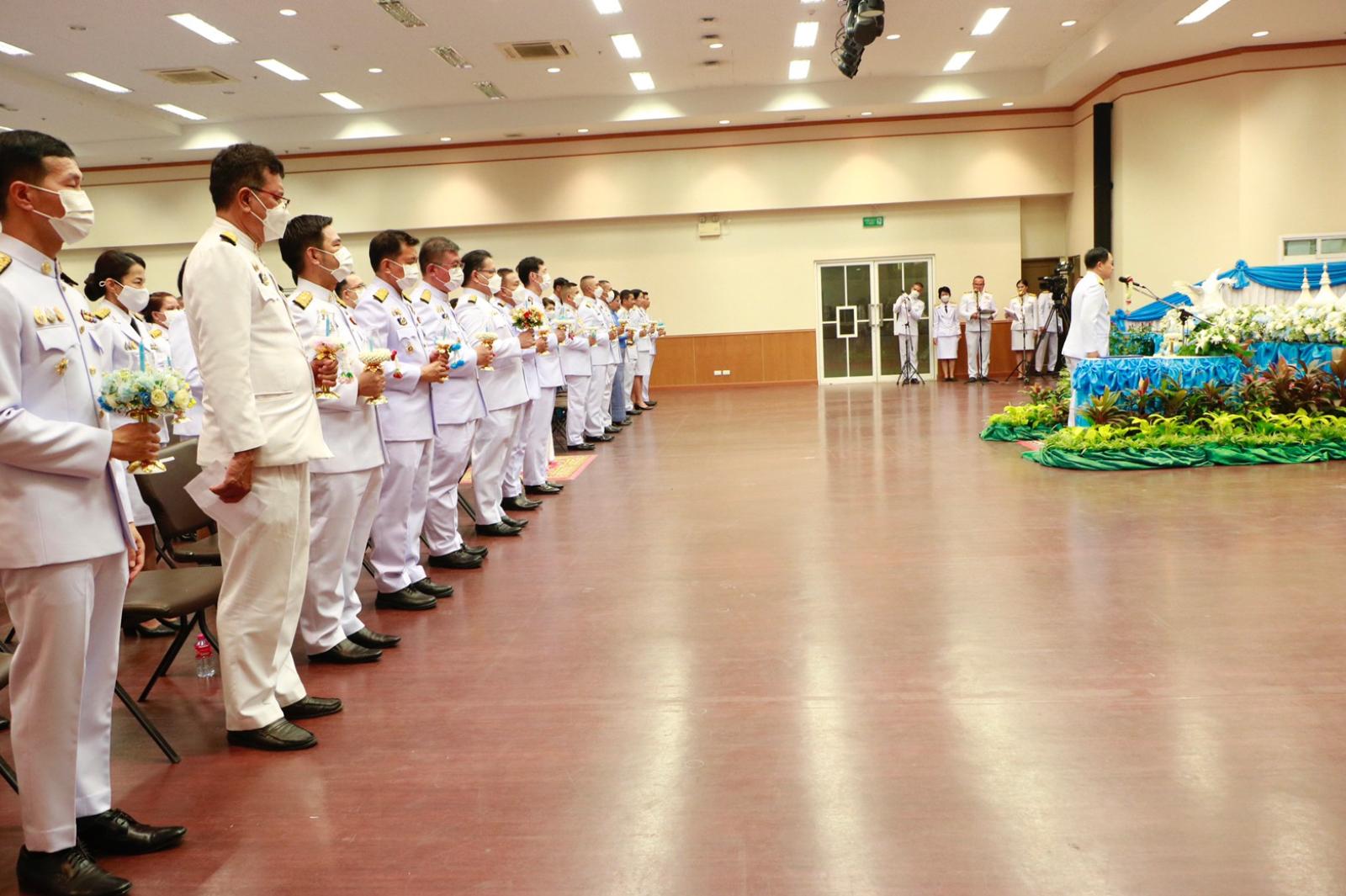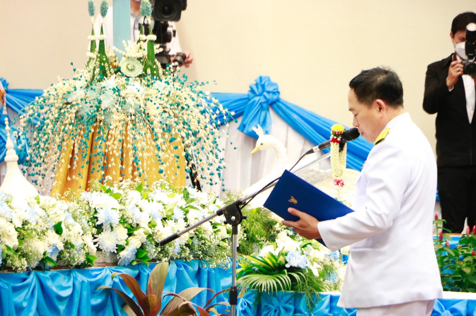 ร่วมพิธีถวายเครื่องราชสักการะ วางพานพุ่ม (พานพุ่มเงิน-พุ่มทอง) และพิธีจุดเทียนถวายพระพรชัยมงคล