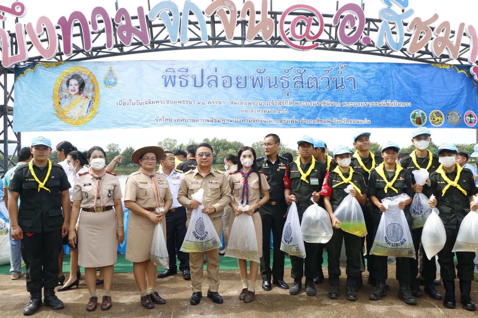 เมื่อวันที่ 16 สิงหาคม 2566 เวลา 09.30 น. ดร.พงษ์ศักดิ์ ตั้งวานิชกพงษ์ นายกองค์การบริหารส่วนจังหวัดขอนแก่น มอบหมายให้ ว่าที่ร้อยเอกพงเจตน์ พรกุณา ปลัด องค์การบริหารส่วนจังหวัดขอนแก่น ร่วมพิธีปล่อยพันธุ์สัตว์น้ำเนื่องในวันเฉลิมพระชนพรรษาสมเด็จพระนางเจ้าสิริกิติ์ พระบรมราชินีนาถ พระบรมราชชนนีพันปีหลวง นายชาญชัย ศรศรีวิชัย รองผู้ว่าราชการจังหวัดขอนแก่น เป็นประธานในพิธี โดยมีนายอำพล จินดาวงค์ ประมงจังหวัดขอนแก่น กล่าวรายงาน หัวหน้าส่วนราชการอำเภอสีชมพู หัวหน้าส่วนปกครอง สมาชิกองค์กรปกครองท้องถิ่น ข้าราชการ คณะครู อาจารย์ กำนันผู้ใหญ่บ้าน ประชาชน และแขกผู้มีเกียรติ เข้าร่วมพิธี ณ บริเวณบึงทามจักจั่น ตำบลวังเพิ่ม อำเภอสีชมพู จังหวัดขอนแก่น