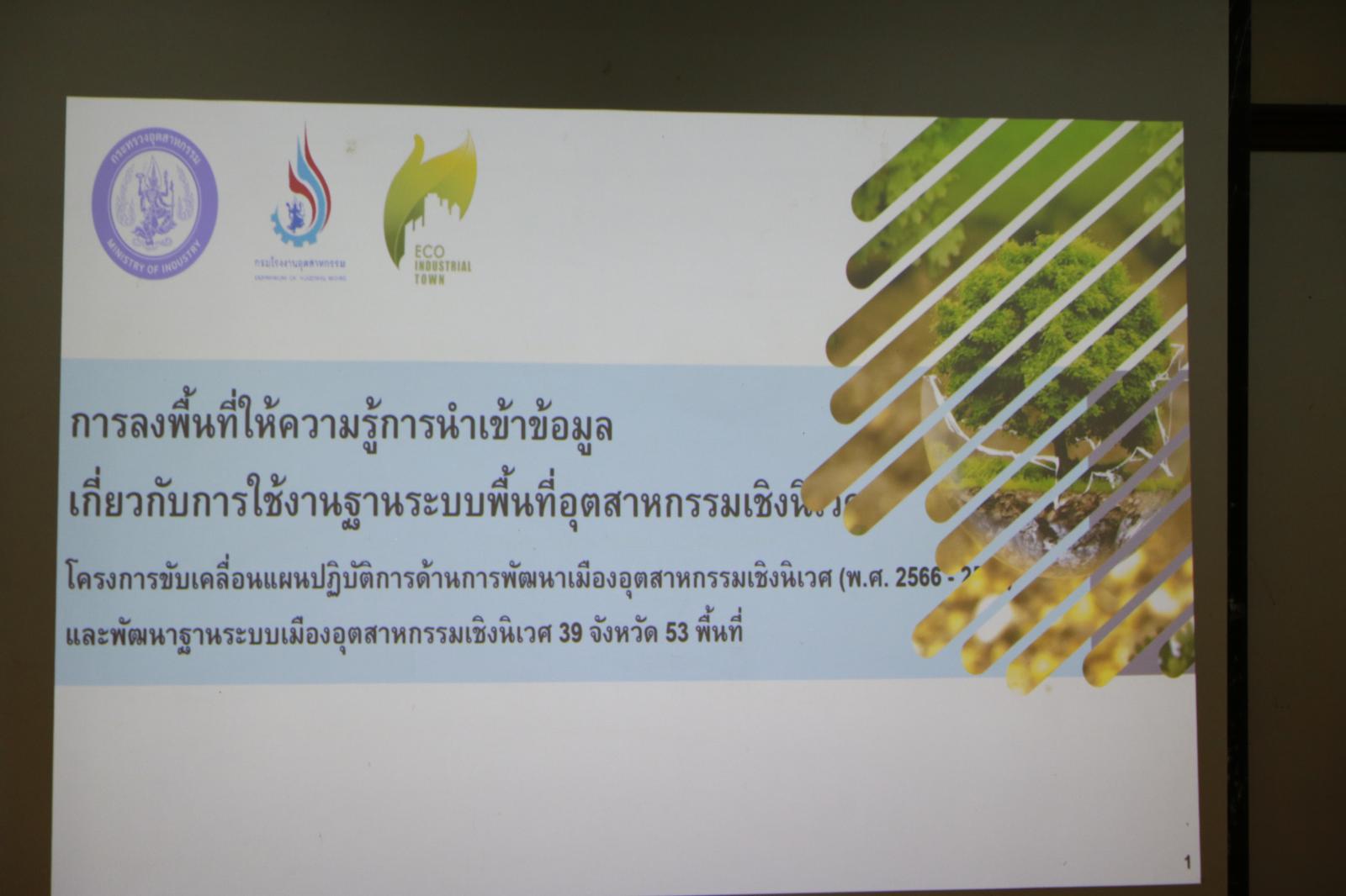 เข้าร่วมประชุมการลงพื้นที่ให้ความรู้การนำเข้าข้อมูลเกี่ยวกับการใช้งานฐานระบบพื้นที่อุตสาหกรรมเชิงนิเวศ โครงการขับเคลื่อนแผนปฏิบัติการด้านการพัฒนาเมืองอุตสาหกรรมเชิงนิเวศ
