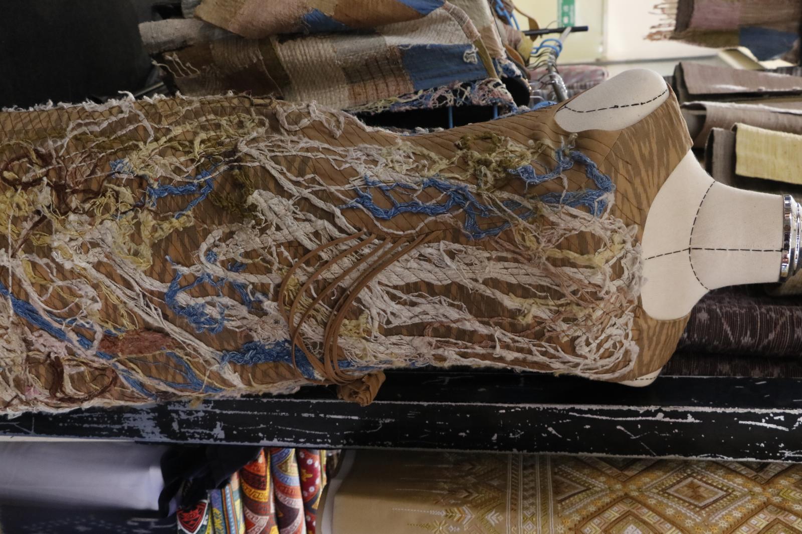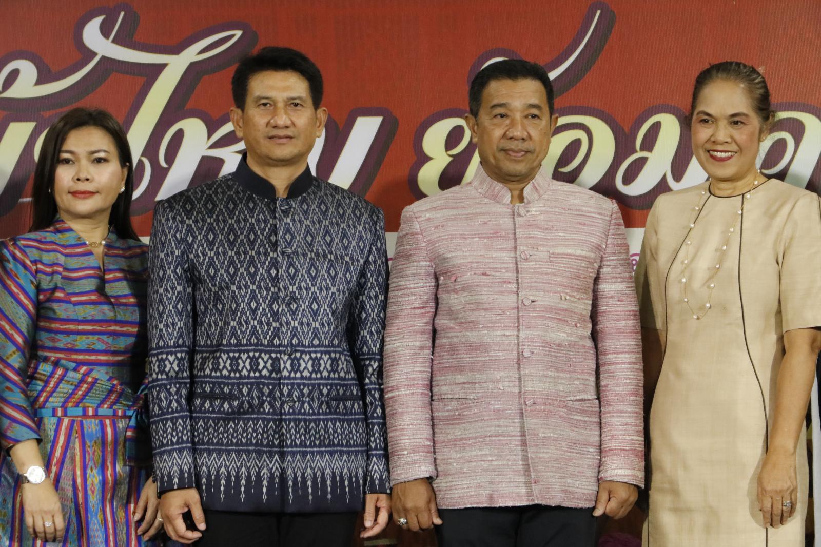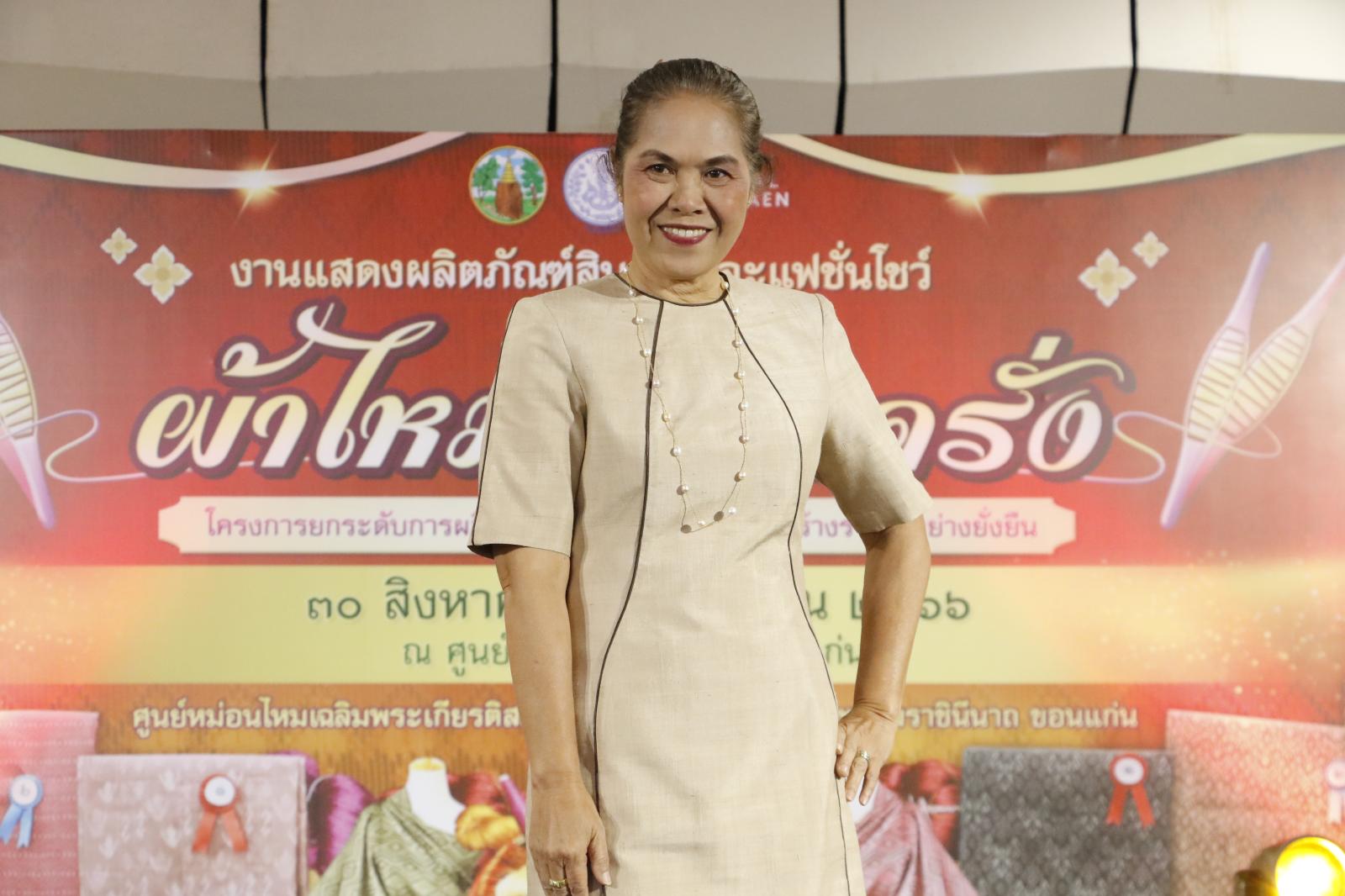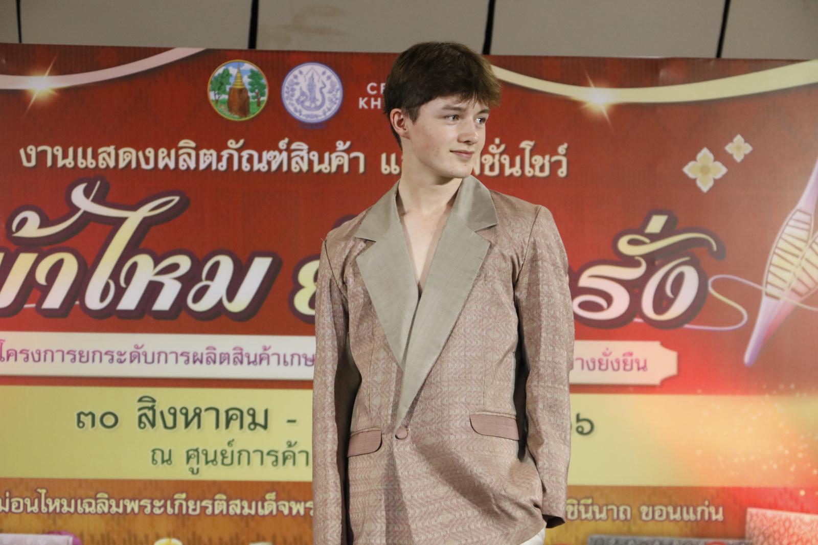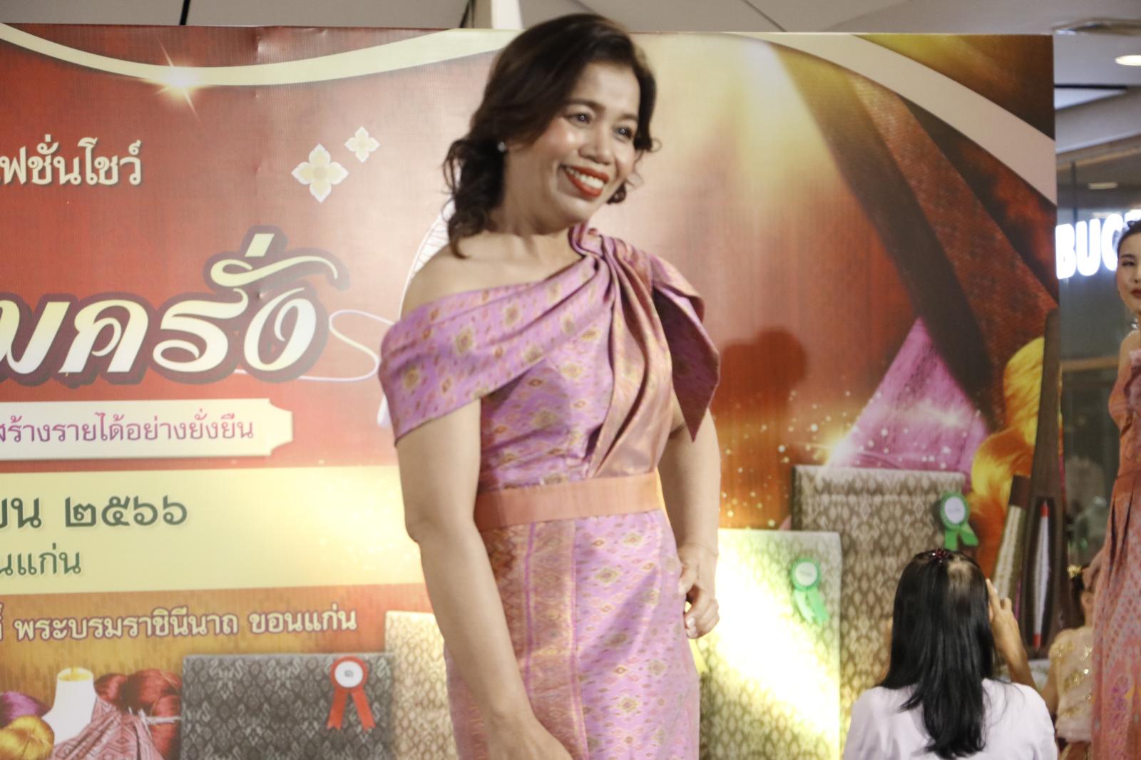 กิจกรรมการเดินแบบด้วยเครื่องแต่งกายชุดผ้าไหม ในงานจัดงานแสดงผลิตภัณฑ์สินค้าผ้าไหมย้อมครั่งและแสดงแฟชั่นโชว์