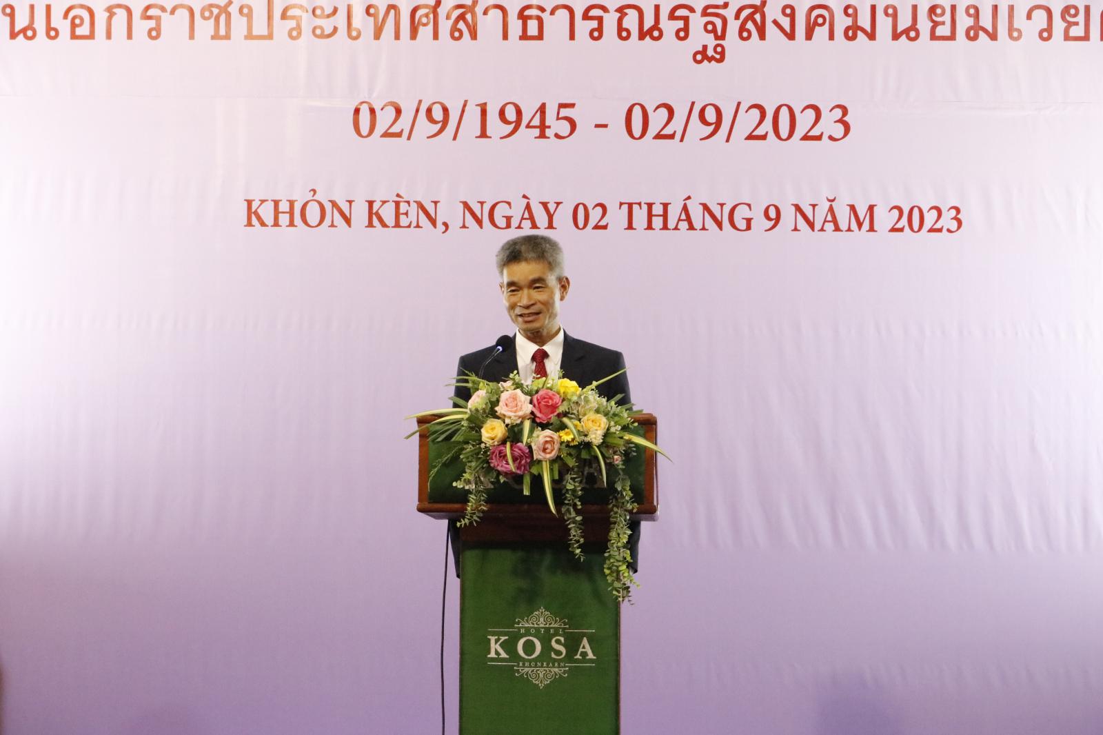 เมื่อวันที่ 2 กันยายน 2566 เวลา 10.30 น. ดร.พงษ์ศักดิ์ ตั้งวานิชกพงษ์ นายกองค์การบริหารส่วนจังหวัดขอนแก่น มอบหมายให้ นายสิทธิกุล ภูคำวงศ์ รองนายกองค์การบริหารส่วนจังหวัดขอนแก่น เข้าร่วมงานวันเอกราชประเทศสาธารณรัฐนิยมเวียดนาม โดยมีท่าน จู ดึ๊ก หยุง กงสุลใหญ่สาธารณรัฐนิยมเวียดนามประจำจังหวัดขอนแก่น กล่าวตอนรับ นายสุเทพ มณีโชค รองผู้ว่าราชการจังหวัดขอนแก่น นายเหลี้ยว จุ้น หยุน กงสุลใหญ่สาธารณรัฐประชาชนจีนจังหวัดขอนแก่น, นายสมบัติ เพ็งพระจันทร์ กงสุลใหญ่สาธารณรัฐประชาธิปไตยประชาชนลาว ณ จังหวัดขอนแก่น, นายณัฐพล ประคุณ ศึกษาภัณฑ์ กงสุลกิตติมศักดิ์สาธารณรัฐเปรู ประจำจังหวัดขอนแก่น หัวหน้าส่วนราชการจังหวัดขอนแก่น สมาคม ชมรม และชาวไทยเชื้อสายเวียดนาม หัวหน้าส่วนราชการภาครัฐ,ภาคเอกชน และผู้มีเกียรติ ที่เข้าร่วมงาน ณ ห้องมงกุฎเพชร โรงแรมโฆษะ ขอนแก่น อำเภอเมืองขอนแก่น จังหวัดขอนแก่น