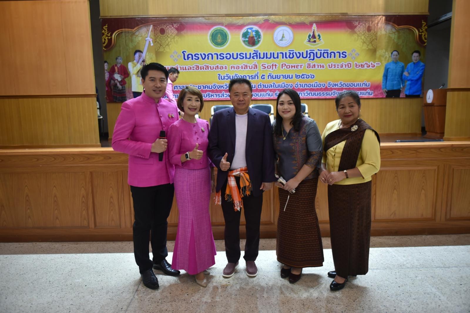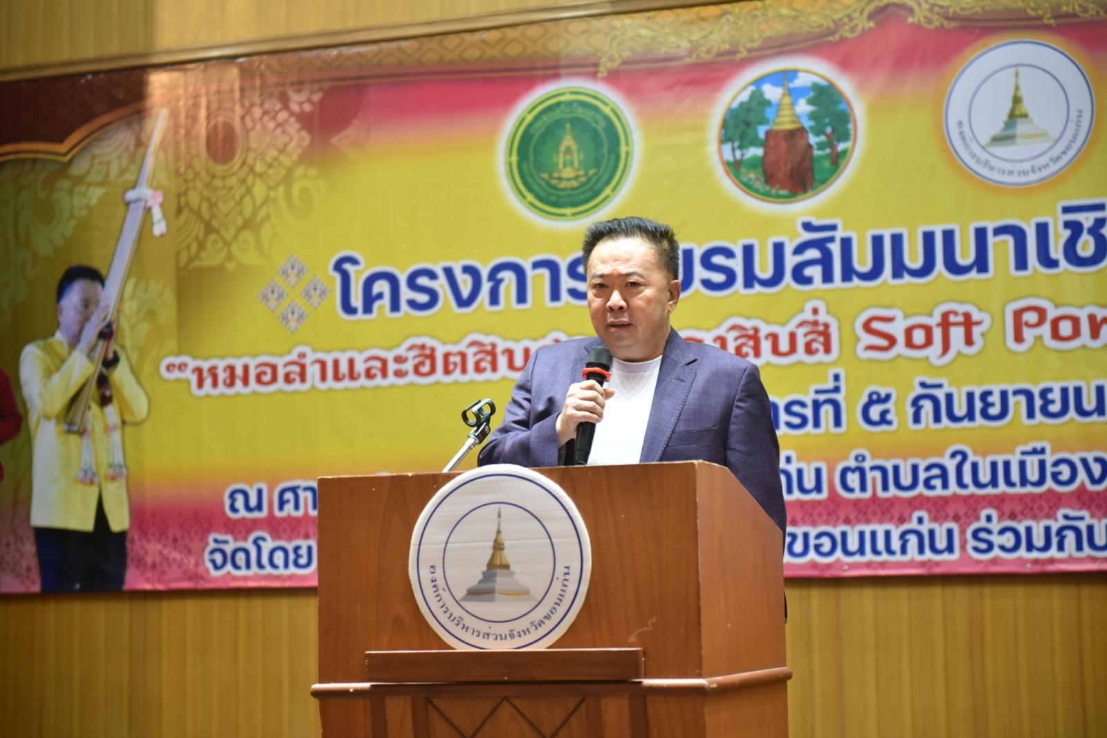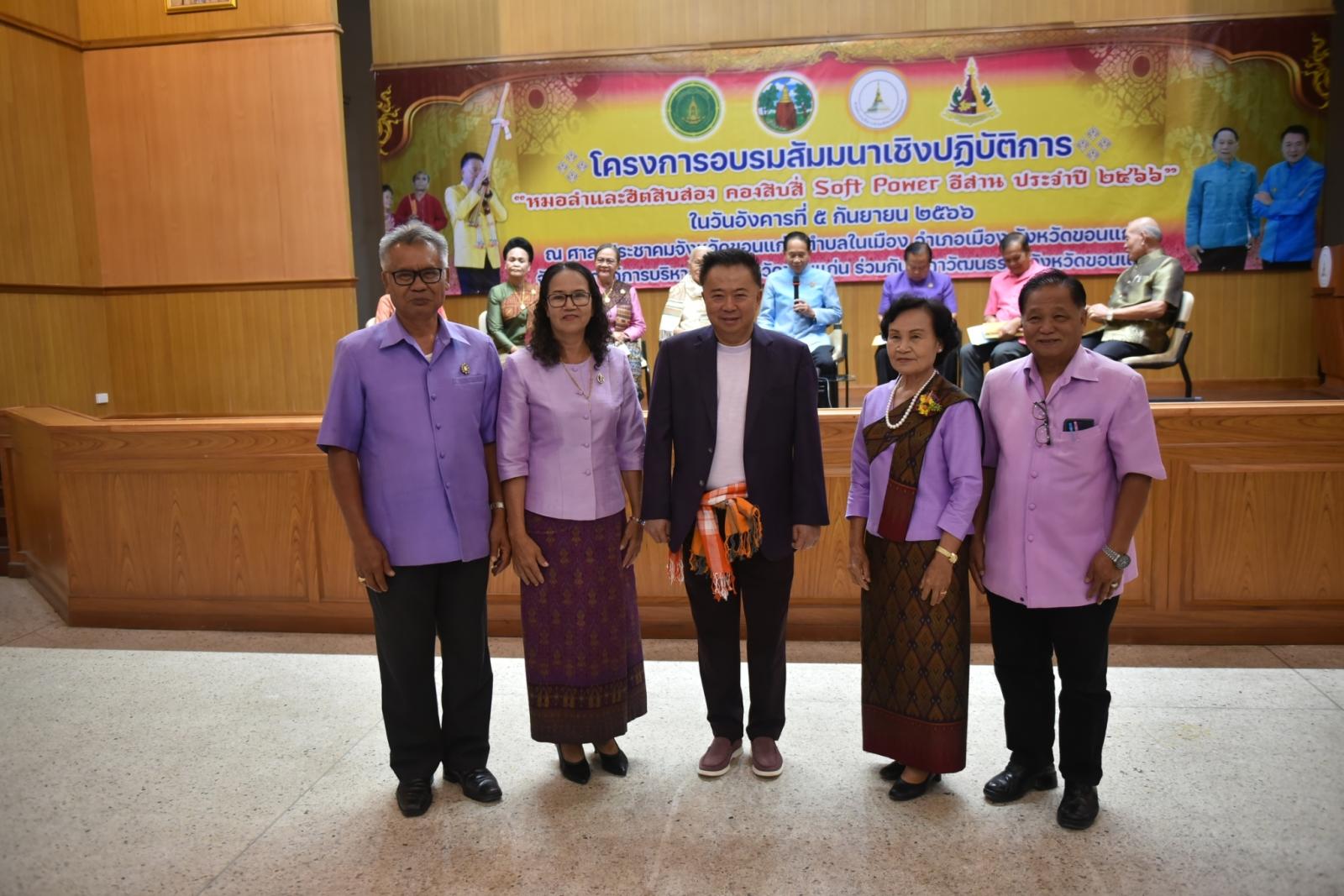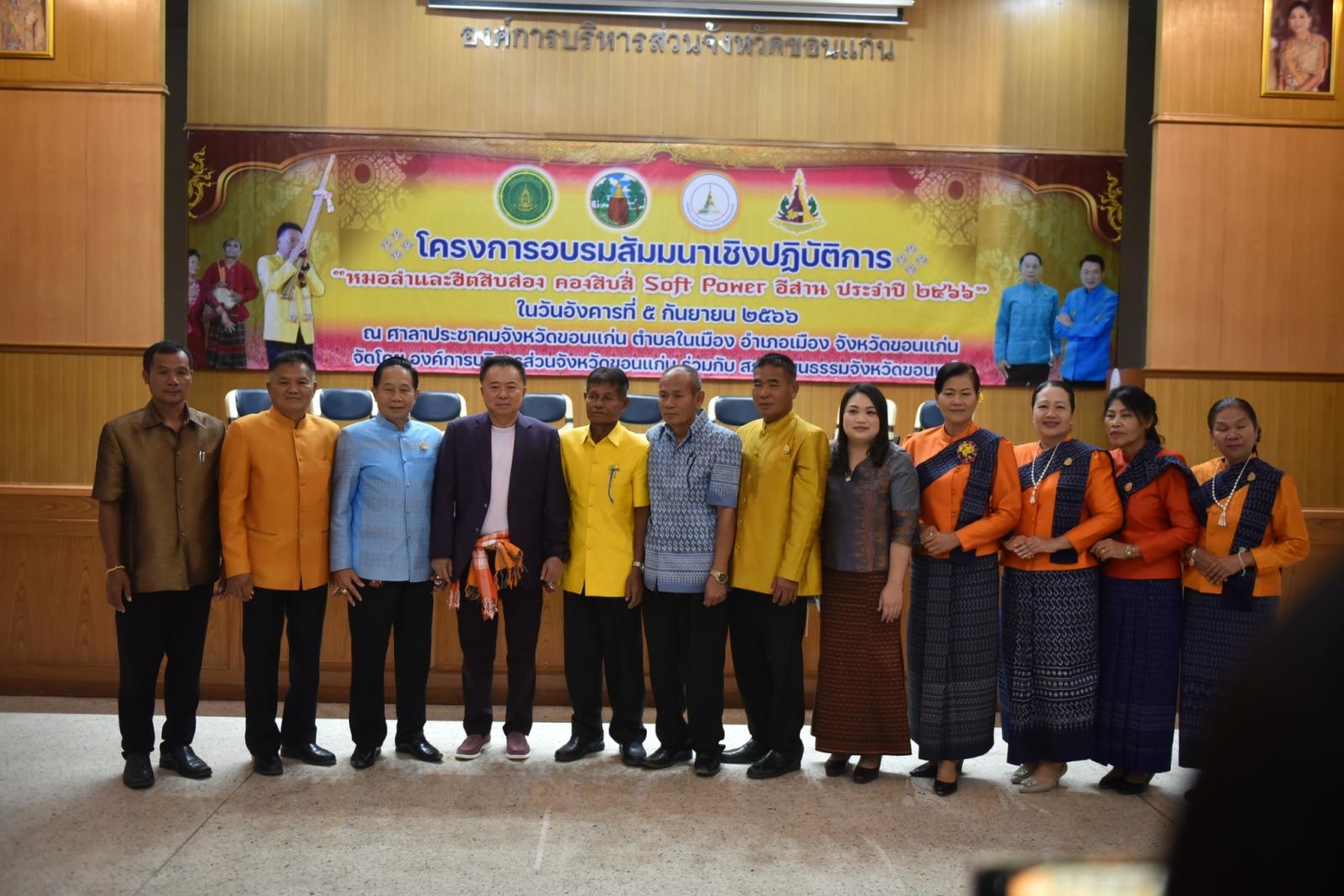 วันที่ 5 กันยายน 2566 เวลา 09.00 น. ดร.พงษ์ศักดิ์ ตั้งวานิชกพงษ์ นายกองค์การบริหารส่วนจังหวัดขอนแก่น เป็นประธานในพิธีเปิดโครงการอบรมสัมมนาเชิงปฏิบัติการ“หมอลำและฮีตสิบสอง คองสิบสี่ Soft Power อีสาน ประจำปี 2566” โดยมี ดร.สมยงค์ แก้สุพรรณ ประธานสภาวัฒนธรรมจังหวัดขอนแก่น กล่าวรายงาน ในโอกาสนี้มี นางกฤษณา วันทอง ส.อบจ.ขอนแก่น อ.ชุมแพ เขต 3 พร้อมด้วย นายนำศิลป์ วิเศษ ผอ.สำนักการศึกษา ศาสนาและวัฒนธรรม คณะผู้บริหาร ข้าราชการ อบจ.ขอนแก่น เข้าร่วมเป็นเกียรติในพิธี ณ หอประชุมศาลาประชาคม อบจ.ขอนแก่น อ.เมือง จ.ขอนแก่น