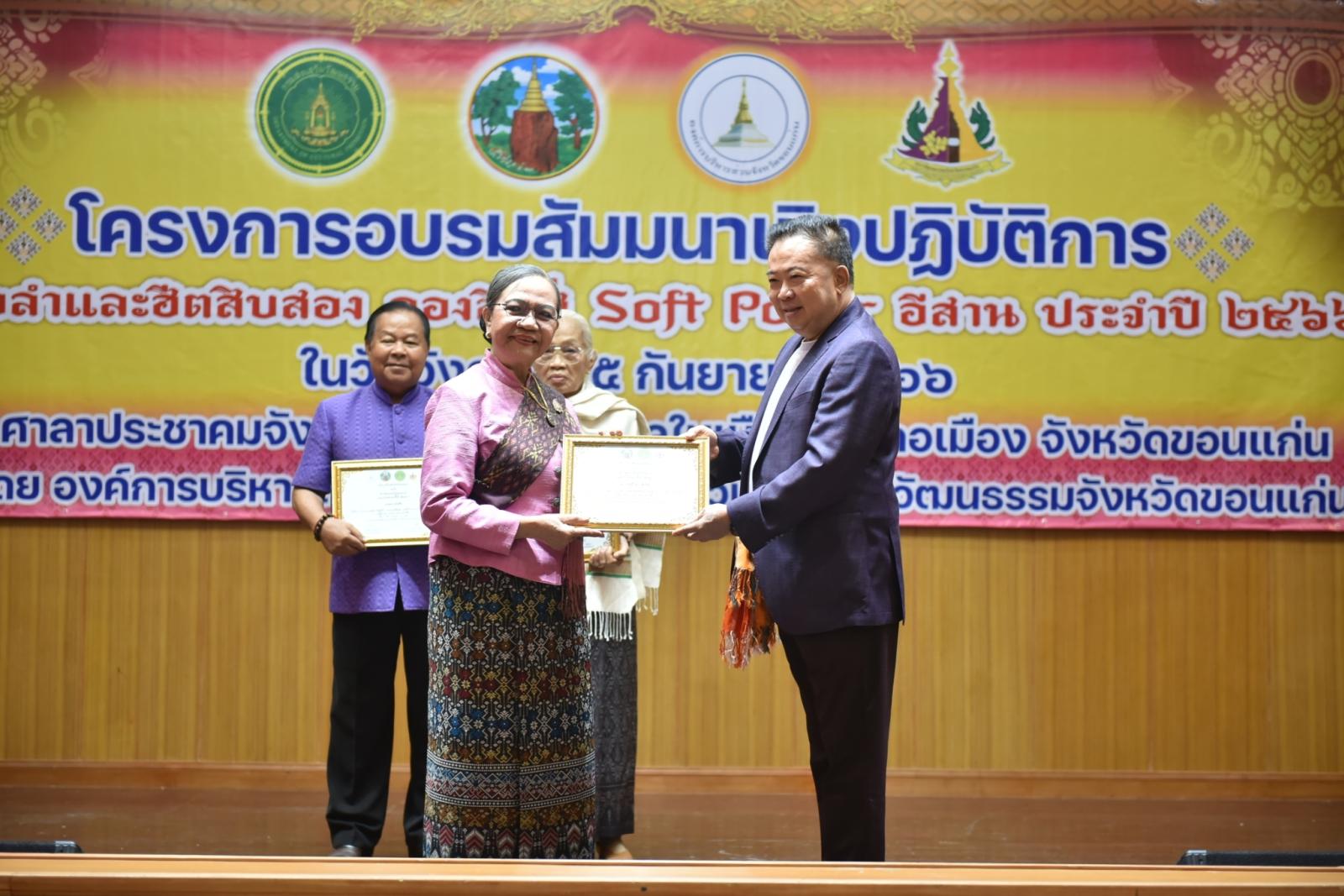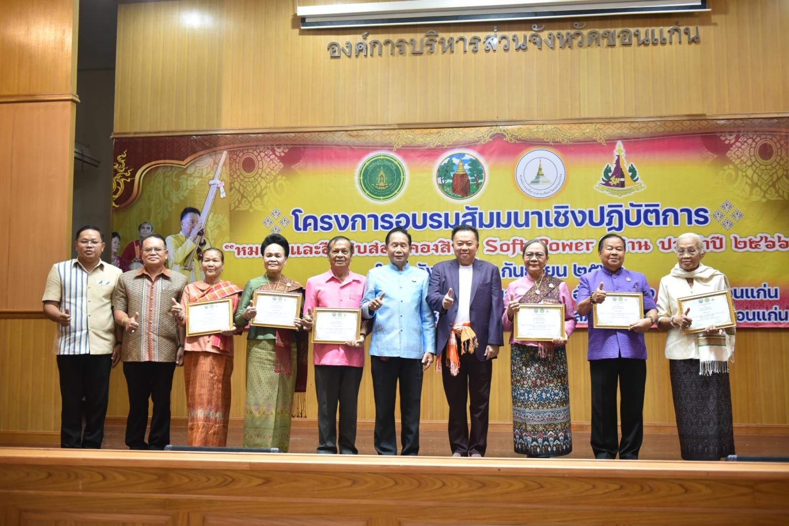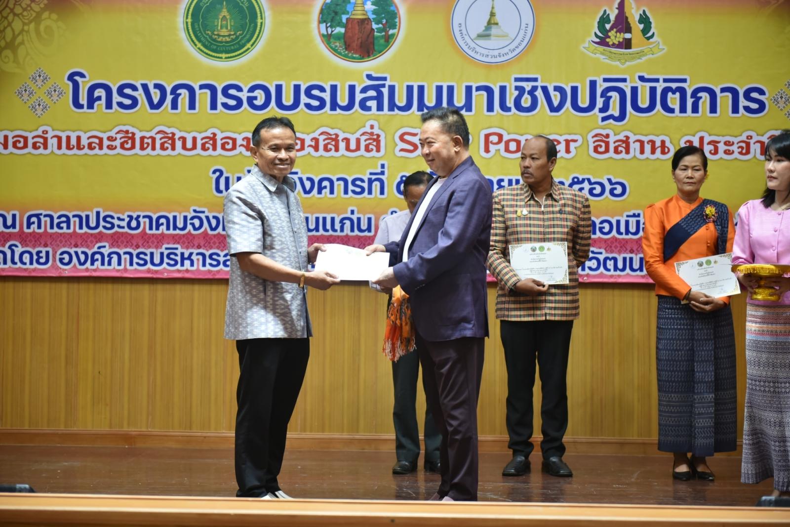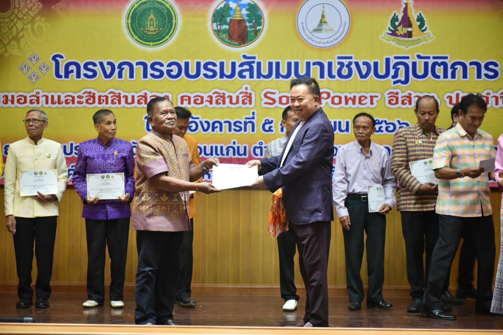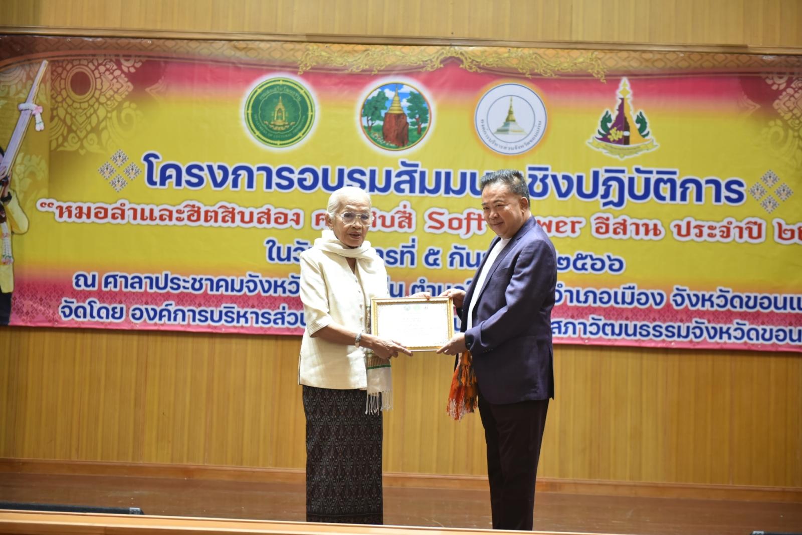 วันที่ 5 กันยายน 2566 เวลา 09.00 น. ดร.พงษ์ศักดิ์ ตั้งวานิชกพงษ์ นายกองค์การบริหารส่วนจังหวัดขอนแก่น เป็นประธานในพิธีเปิดโครงการอบรมสัมมนาเชิงปฏิบัติการ“หมอลำและฮีตสิบสอง คองสิบสี่ Soft Power อีสาน ประจำปี 2566” โดยมี ดร.สมยงค์ แก้สุพรรณ ประธานสภาวัฒนธรรมจังหวัดขอนแก่น กล่าวรายงาน ในโอกาสนี้มี นางกฤษณา วันทอง ส.อบจ.ขอนแก่น อ.ชุมแพ เขต 3 พร้อมด้วย นายนำศิลป์ วิเศษ ผอ.สำนักการศึกษา ศาสนาและวัฒนธรรม คณะผู้บริหาร ข้าราชการ อบจ.ขอนแก่น เข้าร่วมเป็นเกียรติในพิธี ณ หอประชุมศาลาประชาคม อบจ.ขอนแก่น อ.เมือง จ.ขอนแก่น