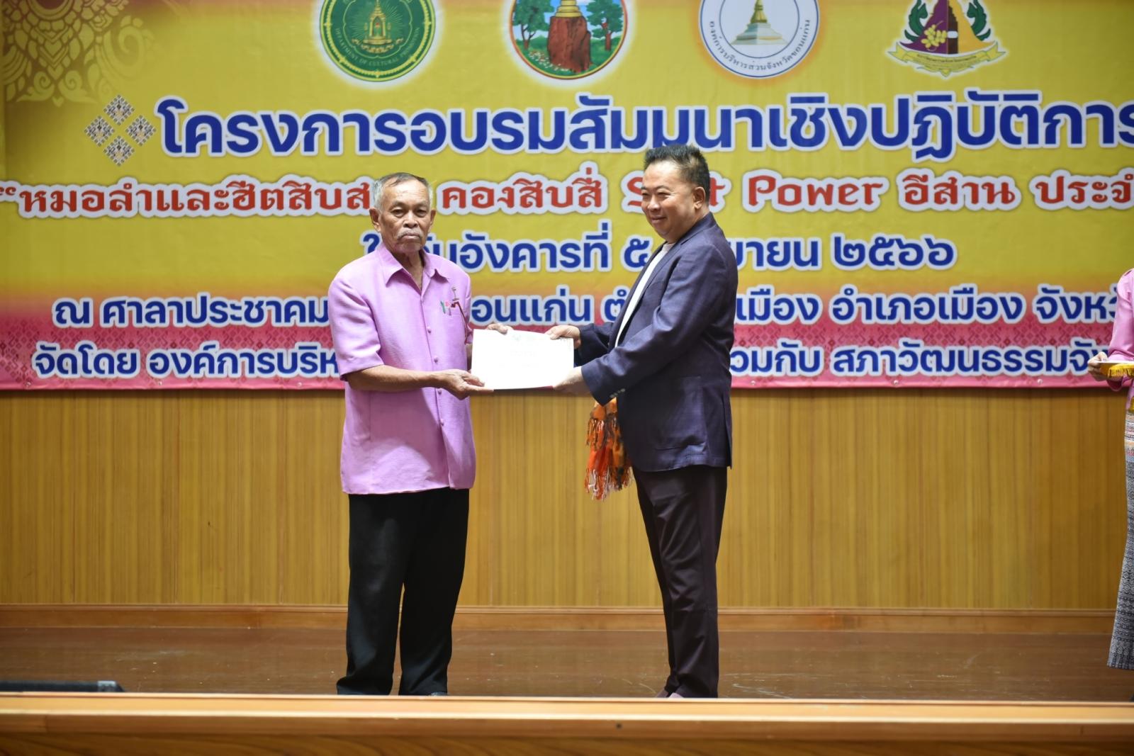 พิธีเปิดโครงการอบรมสัมมนาเชิงปฏิบัติการ“หมอลำและฮีตสิบสอง คองสิบสี่ Soft Power อีสาน ประจำปี 2566”