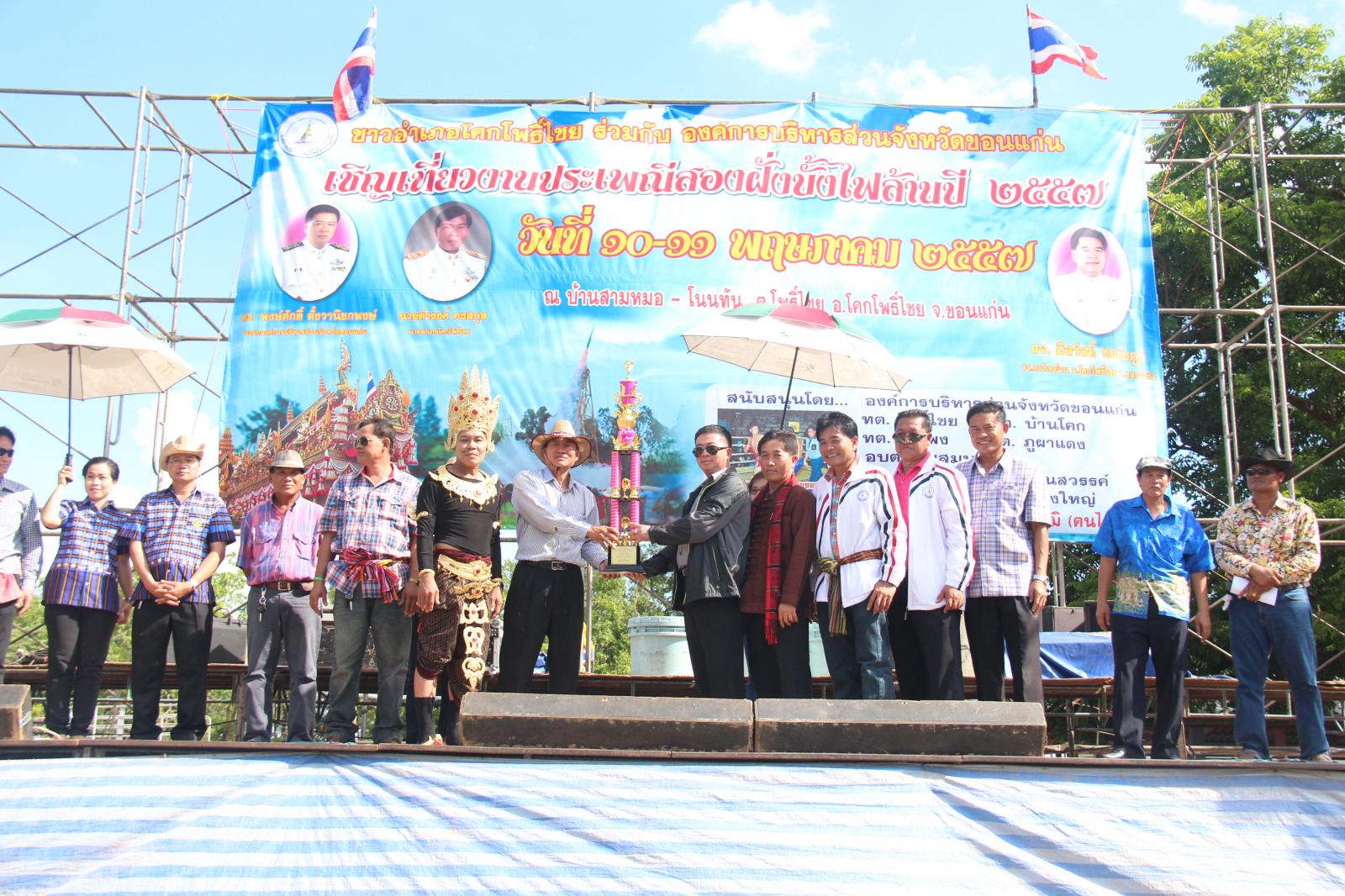 เมื่อวันที่ 10 พฤษภาคม 2557 ดร.พงษ์ศักดิ์ ตั้งวานิชกพงษ์ นายกองค์การบริหารส่วนจังหวัดขอนแก่น และนายมนตรี ชาลีเครือ นายกองค์การบริหารส่วนจังหวัดชัยภูมิ ร่วมเป็นประธานเปิดงาน ประเพณีสองฝั่งบั้งไฟล้าน ประจำปี 2557 ณ บ้านสามหมอ - โนนทัน อำเภอโคกโพธิ์ไชย จังหวัดขอนแก่น