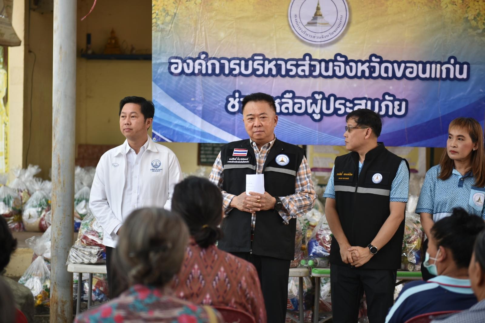 วันที่ 11 ตุลาคม 2566 เวลา 10.00 น. อบจ.ขอนแก่น นำโดย ดร.พงษ์ศักดิ์ ตั้งวานิชกพงษ์ นายกองค์การบริหารส่วนจังหวัดขอนแก่น พร้อมด้วย นายประสิทธิ์ ทองแท่งไทย รองนายก อบจ.ขอนแก่น ,นายจรูญ อ่วยนอก รองประธาน สภา อบจ.ขอนแก่น , นางนริศรา อรุณเดชาชัย ส.อบจ.ขอนแก่น เขต อ.บ้านแฮด ,นายจิตรายุทธ ฉัตรชัยพลรัตน์ ส.อบจ.ขอนแก่น เขต อ.บ้านไผ่, นายสมาส นามพิกุล ส.อบจ.ขอนแก่น เขต อ.พระยืน ,นายจิรายุ โชติศิลากุล ส.อบจ.ขอนแก่น เขต อ.เปือยน้อย และ นางสาวศิริวรรณ สุรินทะ หัวหน้าสำนักปลัด อบจ. หัวหน้าส่วนราชการ ข้าราการ เจ้าหน้าที่ ในสังกัด อบจ.ขอนแก่น ร่วมลงพื้นที่เยี่ยมให้กำลังใจและมอบถุงยังชีพเพื่อช่วยเหลือผู้ประสบอุทกภัยในพื้นที่อำเภอบ้านแฮด จุดแรกที่ศาลากลางบ้านบ้านหนองกระหนวน ต.โนนสมบูรณ์ จำนวน 190 ชุด และ จุดที่2 ที่ศาลาวัดบ้านโนนทัน ต.โนนสมบูรณ์ อ.บ้านแฮด จำนวน 265 ชุด โดยมี นายเสกสม ลินดาพรประเสริฐ นายอำเภอบ้านแฮด พร้อมด้วย นางสุลภา เถาทวงษ์ นายก อบต.โนนสมบูรณ์ คณะผู้บริหาร อปท. ผู้นำชุมชน ร่วมให้การต้อนรับ