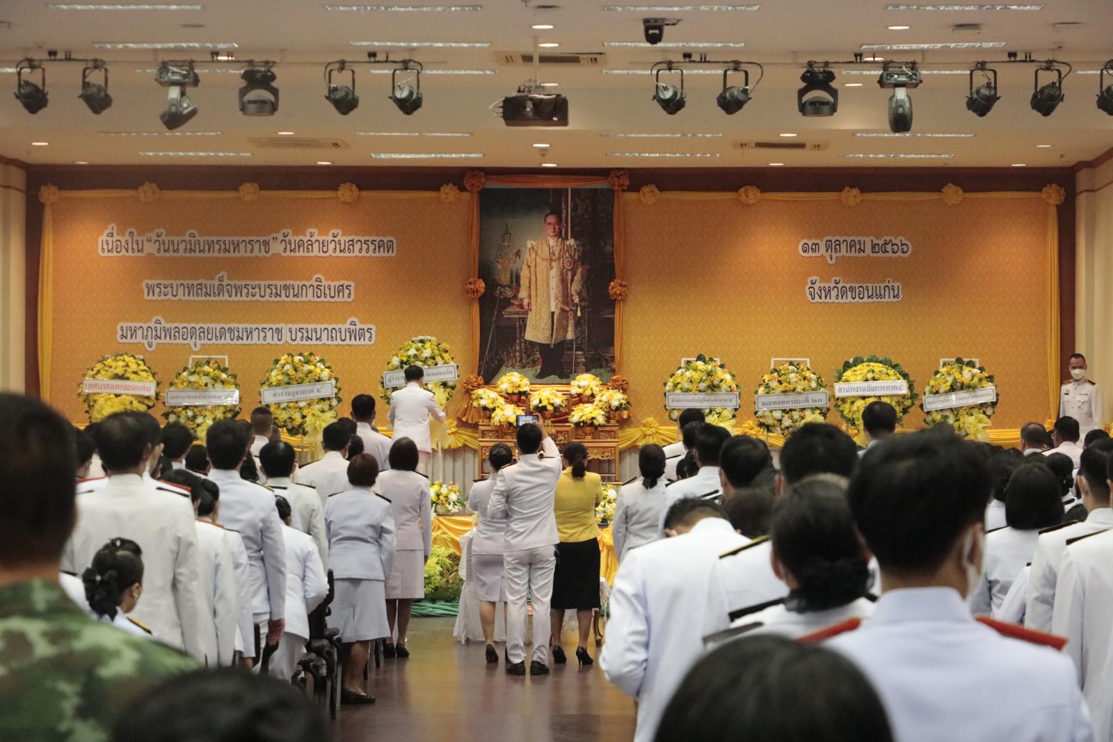 เมื่อวันที่ 13 ตุลาคม 2566 เวลา 07.00 น. ดร.พงษ์ศักดิ์ ตั้งวานิชกพงษ์ นายกองค์การบริหารส่วนจังหวัดขอนแก่น มอบหมายให้ นายสิทธิกุล ภูคำวงศ์ รองนายกองค์การบริหารส่วนจังหวัดขอนแก่น เข้าร่วมพิธีสวดพระพุทธมนต์ พิธีวางพวงมาลาถวายราชสักการะ “วันนวมินทรมหาราช” วันคล้ายวันสวรรคตพระบาทสมเด็จพระบรมชนกาธิเบศรมหาภูมิพลอดุลยเดชมหาราช บรมนาถบพิตร 13 ตุลาคม 2566 โดยมีนายไกรสร กองฉลาด ผู้ว่าราชการจังหวัดขอนแก่น เป็นประธานในพิธี รองผู้ว่าราชการจังหวัดขอนแก่น, นางสาวเสาวลักษณ์ แสงนิ่ม รักษาราชการแทน ผู้อำนวยการสำนักยุทธศาสตร์และงบประมาณ (ผู้อำนวยการส่วนแผนงานและงบประมาณ , นายบุญมี ราญมีชัย ผู้อำนวยการส่วนบริการและเผยแพร่วิชาการ ,หัวหน้าส่วนราชการองค์การบริหารส่วนจังหวัดขอนแก่น , หัวหน้าส่วนราชการภาครัฐ - เอกชน , จิตอาสา ,นักเรียน และ นักศึกษา เข้าร่วมพิธีทำบุญตักบาตรพระราชกุศล ณ ห้องประชุมแก่นเมืองศาลากลางจังหวัดขอนแก่น (หลังใหม่ ชั้น 1) อำเภอเมืองขอนแก่น จังหวัดขอนแก่น
