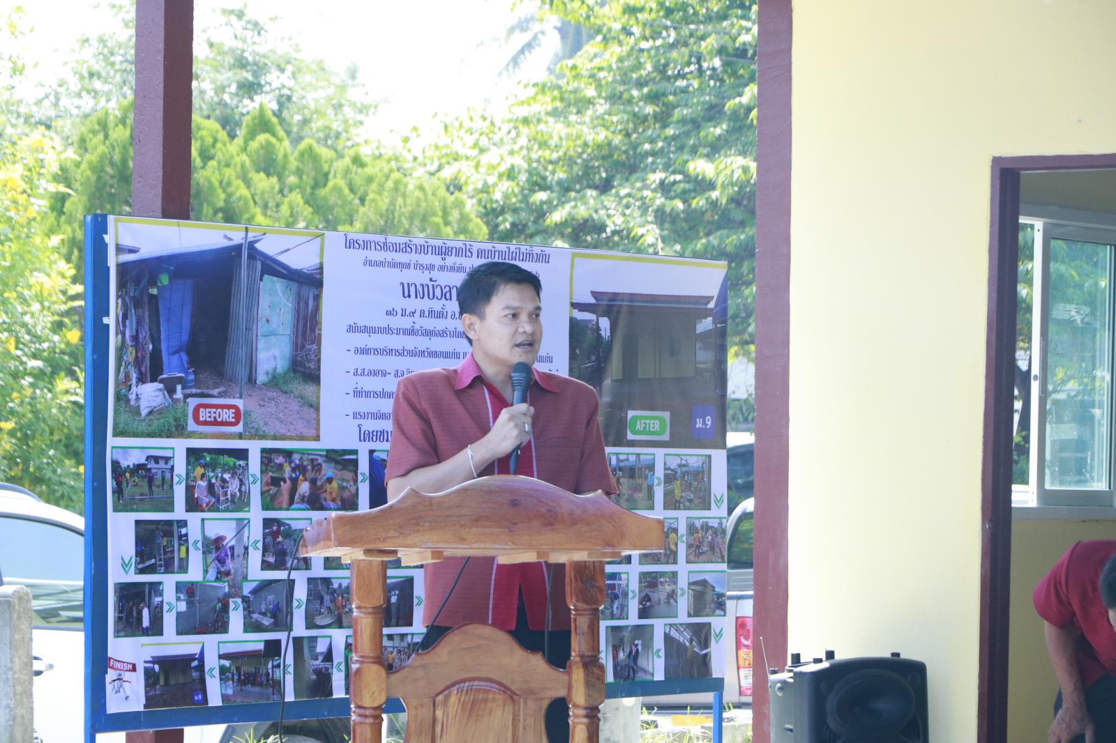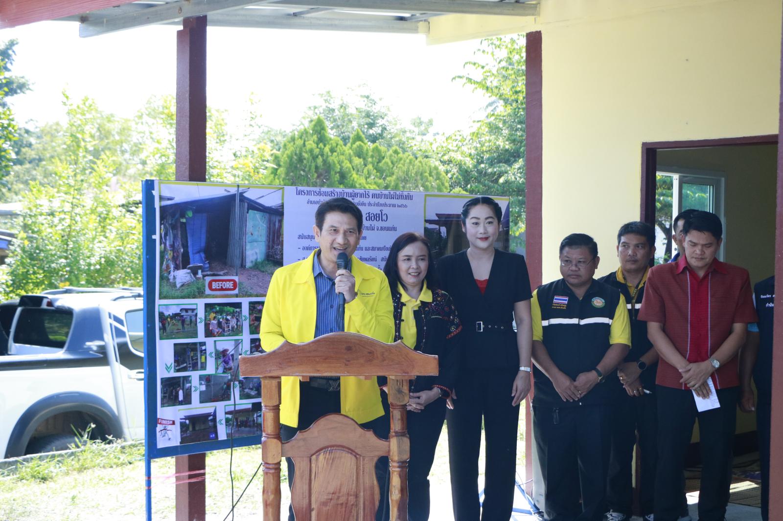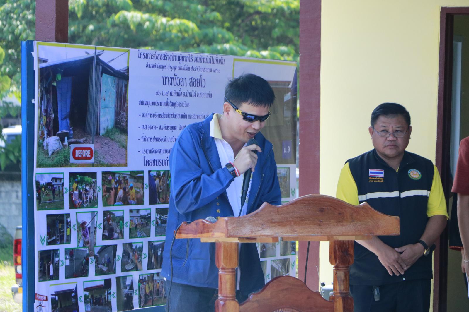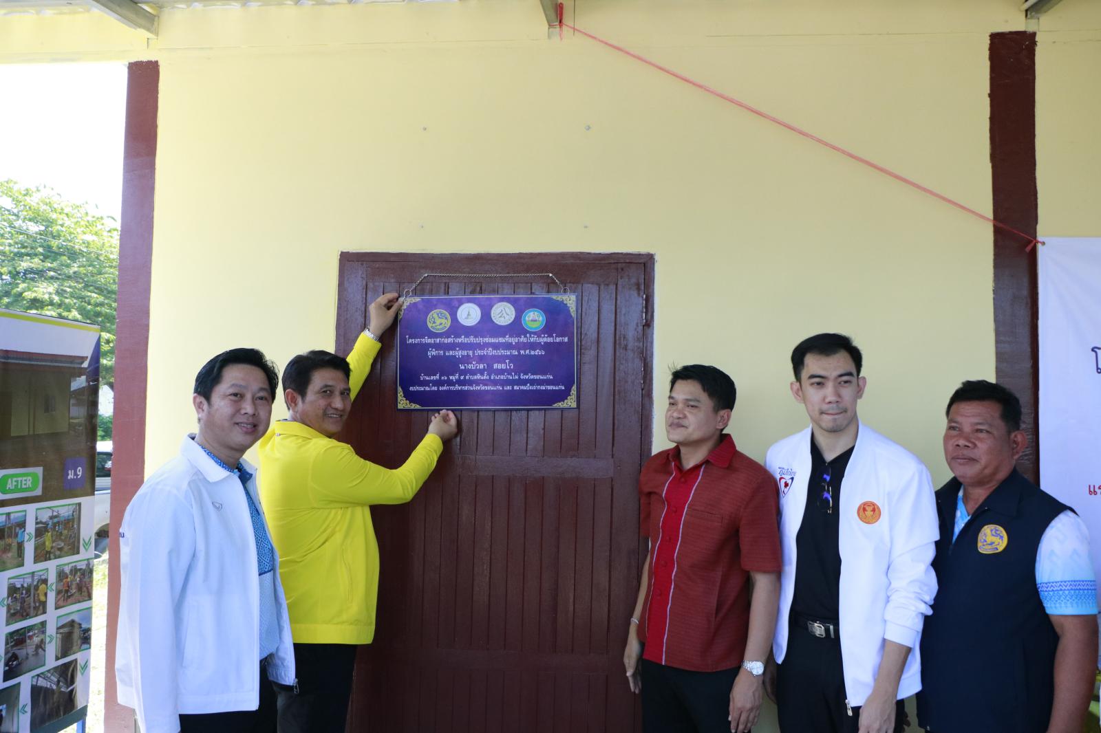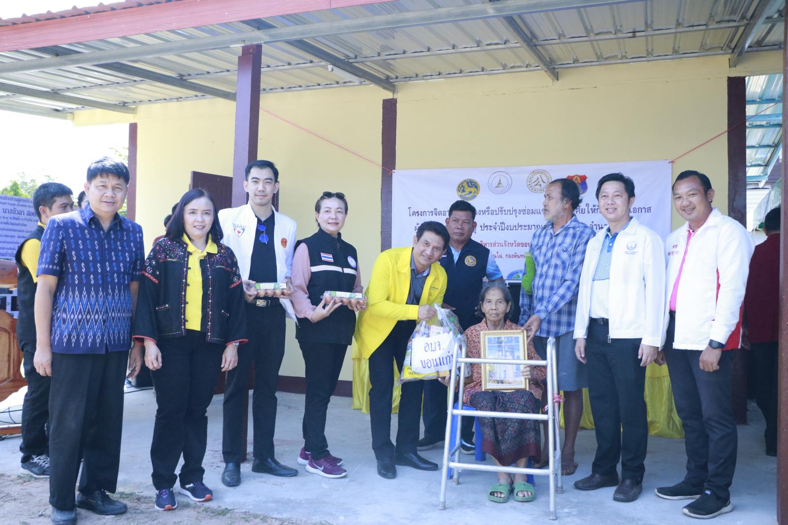 เมื่อวันที่ 17 ตุลาคม 2566 เวลา 10.00 น. ดร.พงษ์ศักดิ์ ตั้งวานิชกพงษ์ นายกองค์การบริหารส่วนจังหวัดขอนแก่น มอบหมายให้ นายสิทธิกุล ภูคำวงศ์ รองนายกองค์การบริหารส่วนจังหวัดขอนแก่น เป็นประธานในพิธีส่งมอบที่อยู่อาศัยโครงการจิตอาสาก่อสร้างหรือปรับปรุงซ่อมแซ่มที่อยู่อาศัยให้กับผู้ด้อยโอกาส ผู้พิการ และผู้สูงอายุ ประจำปีงบประมาณ พ.ศ. 2566 พร้อมด้วย นางกฤษณา ศิริพรรณ ส.อบจ.ขอนแก่น อ.บ้านไผ่ เขต 1 นายจิตรายุทธ ฉัตรชัยพลรัตน์ ส.อบจ.ขอนแก่น อ.บ้านไผ่ เขต 2 นายจิรายุ โชติศิลากุล ส.อบจ.ขอนแก่น อ.เปือยน้อย นางสาวศิริวรรณ สุรินทะ หัวหน้าสำนักปลัด อบจ. นายบุญมี ราญมีชัย ผู้อำนวยการส่วนบริการและเผยแพร่วิชาการ ข้าราชการองค์การบริหารจังหวัดขอนแก่น คณะกรรมการปึงเถ่ากงม่า ผู้นำท้องถิ่น ผู้อำนวยการ รพ.สต. ร่วมเป็นเกียรติด้วย ณ บ้านเลขที่ 36 บ้านนาโน ม.9 ต.หินตั้ง อ.บ้านไผ่ จ.ขอนแก่น (นางบัวลา สอยโว)