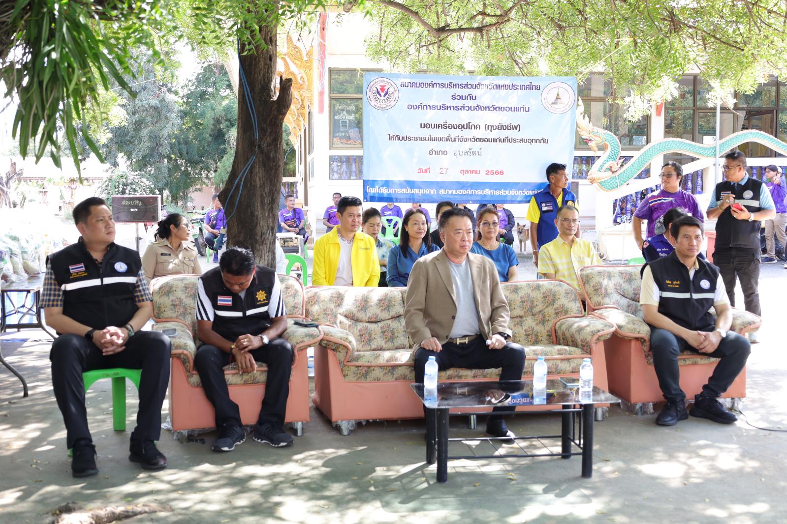 เมื่อวันที่ 27 ตุลาคม 2566 เวลา 14.00 น. ดร.พงษ์ศักดิ์ ตั้งวานิชกพงษ์ นายก อบจ.ขอนแก่น พร้อมด้วย นายสิทธิกุล ภูคำวงศ์ รองนายก อบจ.ขอนแก่น, นายจรูญ อ่วยนอก รองประธาน สภา อบจ.ขอนแก่น , นายรุ่งโรจน์ เย็นสบาย ส.อบจ.ขอนแก่น เขต อ.อุบลรัตน์, นางวราพร หาญชนะชัยกูล เลขานุการองค์การบริหารส่วนจังหวัด หัวหน้าส่วนราชการ ข้าราชการ เจ้าหน้าที่ ในสังกัด อบจ.ขอนแก่น ร่วมมอบเครื่องอุปโภค บริโภค (ถุงยังชีพ) เพื่อช่วยเหลือผู้ประสบภัยในเขตพื้นที่บ้านโนนสวรรค์ ต.เขื่อนอุบลรัตน์ จำนวน 184 ชุด โดยมี นายทองใบ แก้วประดิษฐ์ นายก อบต.เขื่อนอุบลรัตน์ กล่าวรายงาน ทั้งนี้มีผู้นำท้องที่ ผู้นำท้องถิ่น ในพื้นที่ตำบลเขื่อนอุบลรัตน์ เข้าร่วมเป็นเกียรติ ณ วัดโนนสวรรค์ บ้านโนนสวรรค์ ต.เขื่อนอุบลรัตน์ อ.อุบลรัตน์ จ.ขอนแก่น