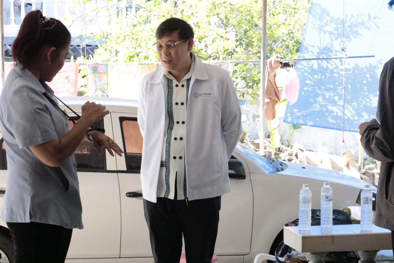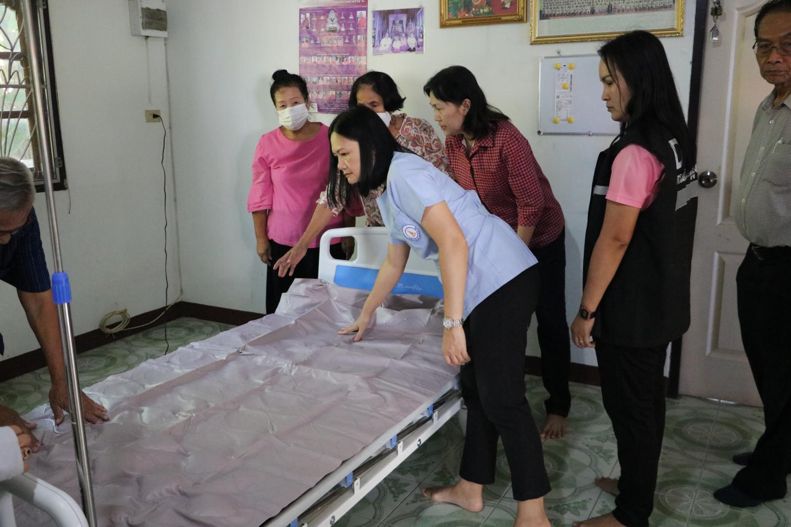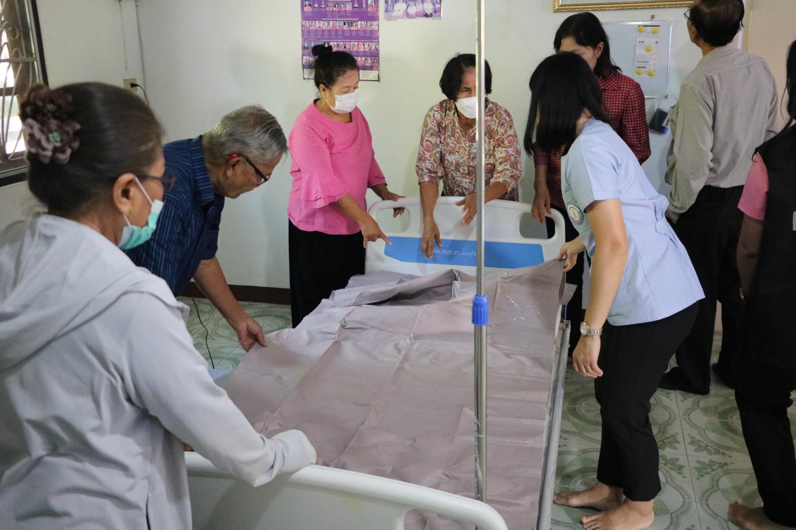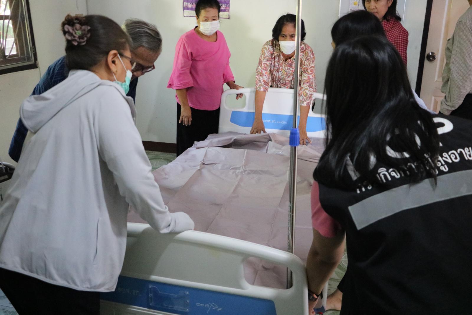 มอบเตียงผู้ป่วยชนิดสามไกราวสไลค์พร้อมเบอะและเสาพร้อมที่นอนลม เพื่อใช้กับ นายมนตรี ดีรักษา