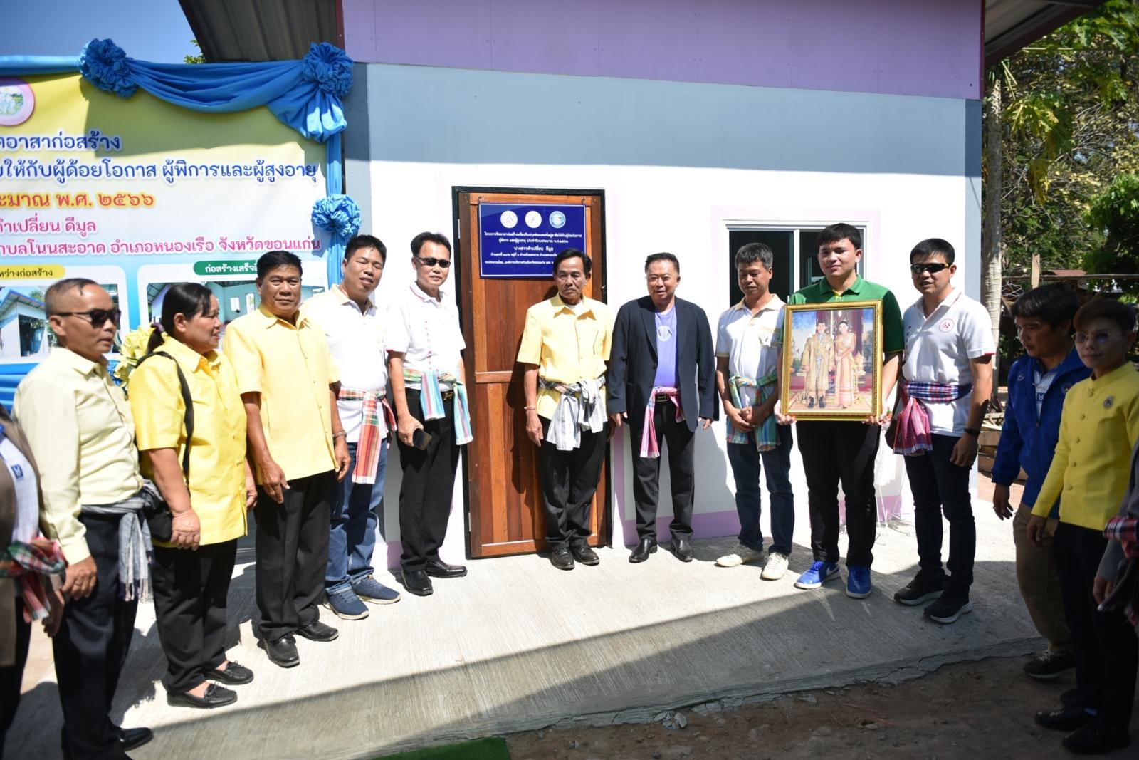 เมื่อวันที่ 21 พฤศจิกายน 2566 เวลา 13.30 น. ดร.พงษ์ศักดิ์ ตั้งวานิชกพงษ์ นายก อบจ.ขอนแก่น เป็นประธานในพิธีมอบที่อยู่อาศัยโครงการจิตอาสาก่อสร้าง หรือปรับปรุงซ่อมแซมที่อยู่อาศัย ให้กับผู้ด้อยโอกาส ผู้พิการ และผู้สูงอายุ ประจำปีงบประมาณ พ.ศ 2566 ณ บ.หนองพลวง ต.ทุ่งชมพู อ.ภูเวียง จ.ขอนแก่น รายนายอดุล กิติยวงษ์ และในโอกาสนี้ มีนายวิบูลย์ เรืองประเสริฐกุล ส.อบจ.ขอนแก่น อ.เวียงเก่า นายปรัชญา ทองแท่งไทย ส.อบจ.ขอนแก่น อ.ภูผาม่าน ผู้แทนสมาคมปึงเฒ่ากงม่า นายพิสิทธิ์ เทาหา นายก อบต.ทุ่งชมพู น.ส.ศิริวรรณ สุรินทะ หัวหน้าสำนักปลัด อบจ. พร้อมด้วย ผู้นำท้องที่ท้องถิ่น ร่วมเป็นเกียรติ ณ บ้านเลขที่ 45 ม.6 บ.หนองพลวง ต.ทุ่งชมพู อ.ภูเวียง จ.ขอนแก่น