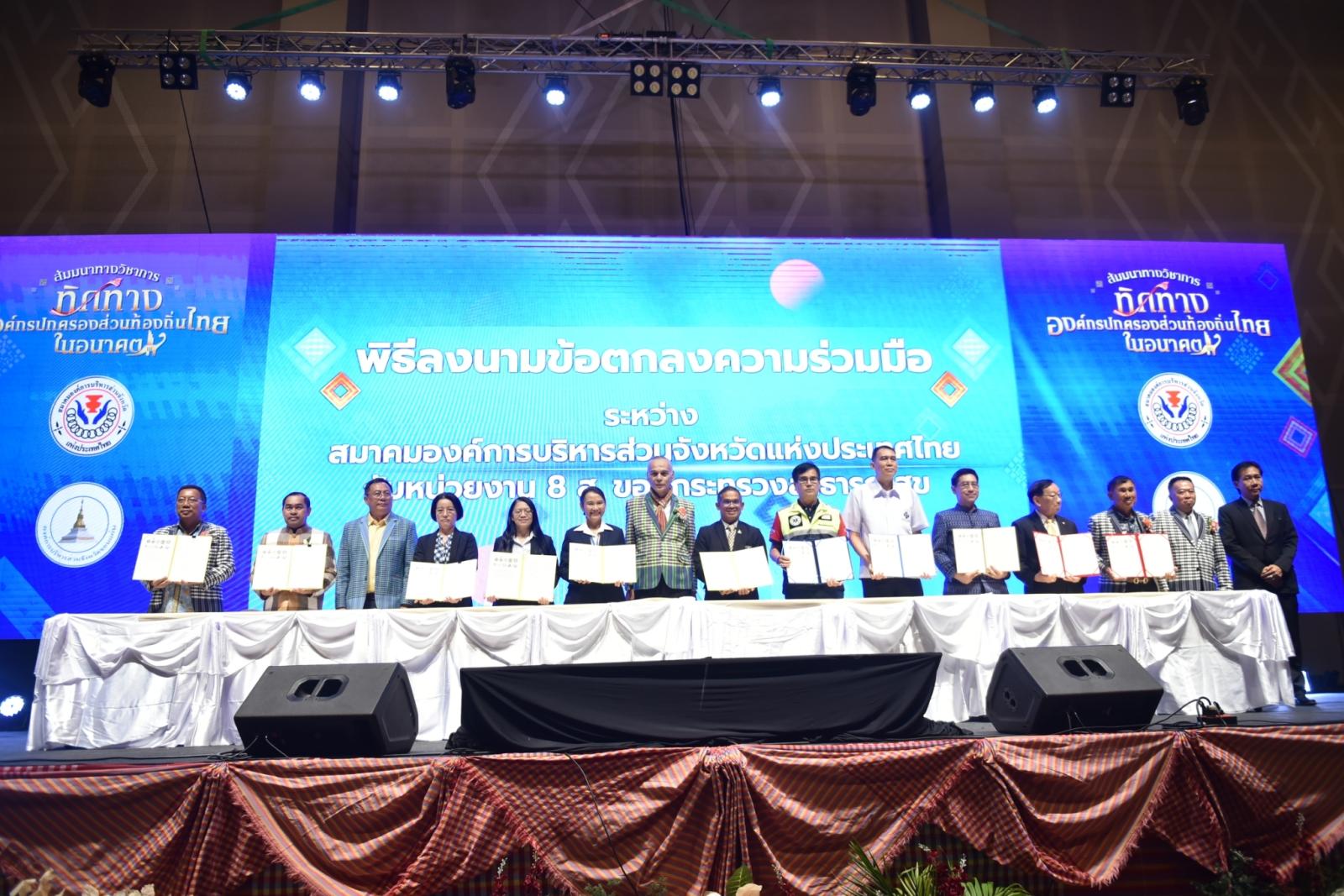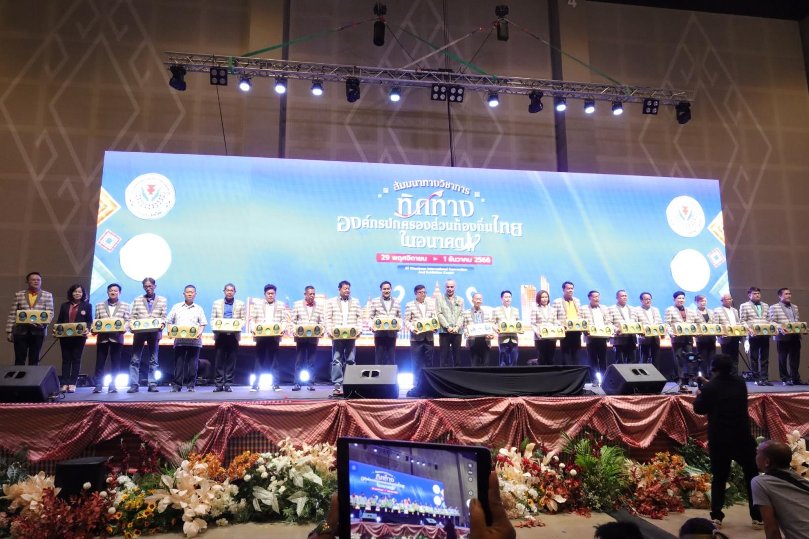 วันที่ 30 พฤศจิกายน 2566 เวลา 09.00 น. สมาคมองค์การบริหารส่วนจังหวัดแห่งประเทศไทย ร่วมกับสมาพันธ์ อบจ.ภาคตะวันออกเฉียงเหนือ และองค์การบริหารส่วนจังหวัดขอนแก่น ร่วมกันจัดโครงการอบรมสัมมนาทางวิชาการ “ทิศทางองค์กรปกครองท้องถิ่นไทยในอนาคต” ณ ศูนย์ประชุมและแสดงสินค้านานาชาติขอนแก่น (KICE) อำเภอเมือง จังหวัดขอนแก่น โดยมี นายชาดา ไทยเศรษฐ์ รัฐมนตรีช่วยว่าการกระทรวงมหาดไทย เป็นประธานกล่าวเปิดงานพร้อมปาฐกถาพิเศษ นายไกรสร กองฉลาด ผู้ว่าราชการจังหวัดขอนแก่น กล่าวต้อนรับ และ ดร.พงษ์ศักดิ์ ตั้งวานิชกพงษ์ นายกองค์การบริหารส่วนจังหวัดขอนแก่น กล่าวรายงาน ซึ่งมีนายกองค์การบริหารส่วนจังหวัด ประธานสภาองค์การบริหารส่วนจังหวัด ปลัดองค์การบริหารส่วนจังหวัด ตลอดจนสมาชิกสภาองค์การบริหารส่วนจังหวัดและข้าราชการองค์การบริหารส่วนจังหวัด จำนวน 74 จังหวัด เข้าร่วมอบรมสัมมนาฯ