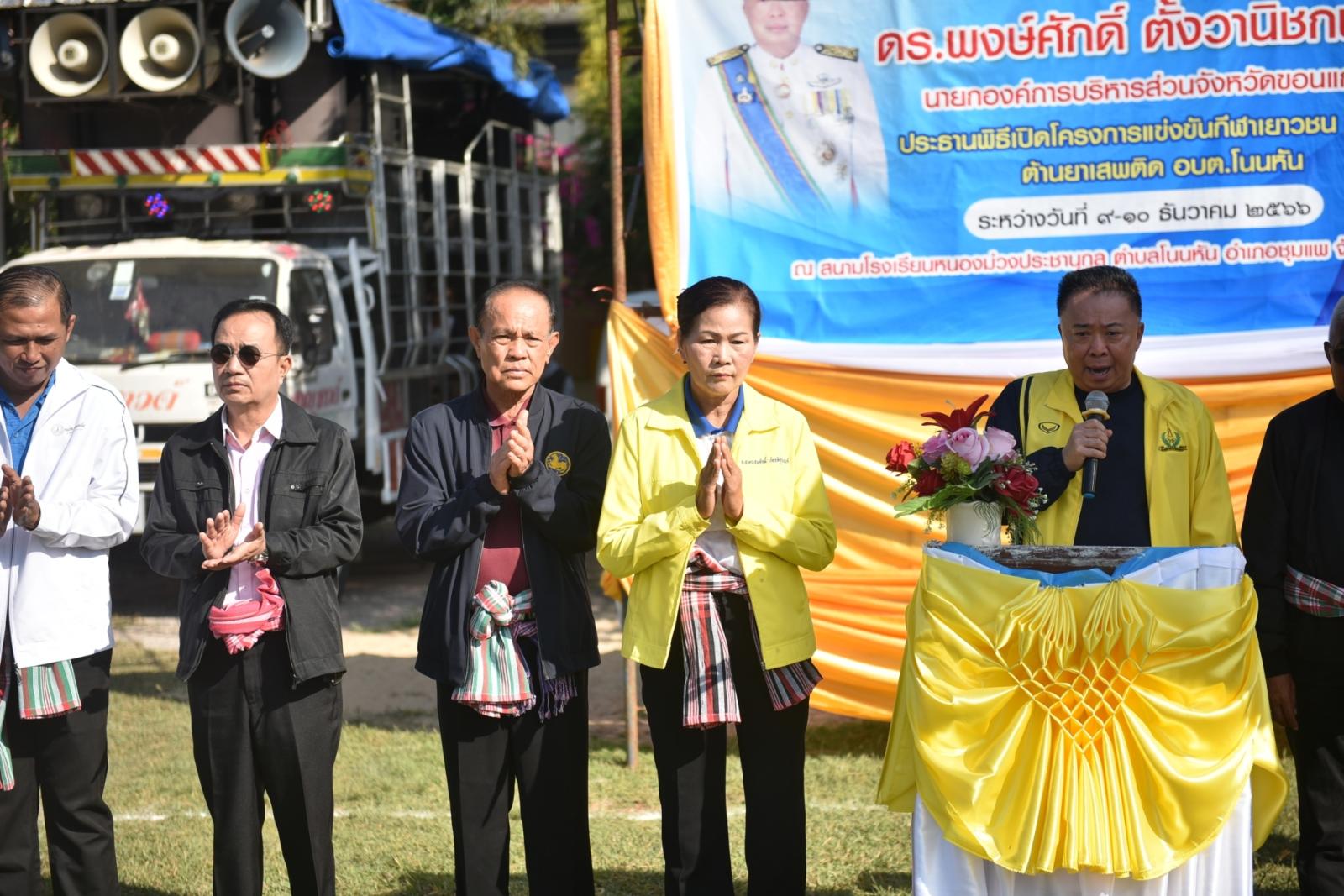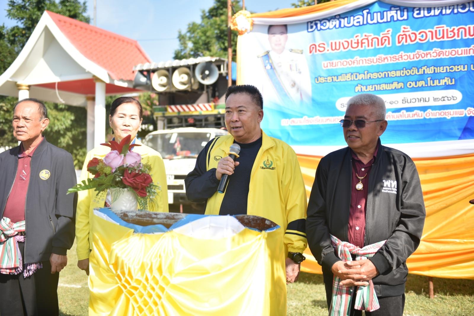 วันที่ 9 ธันวาคม 2566 เวลา 09.00 น. ดร.พงษ์ศักดิ์ ตั้งวานิชกพงษ์ นายกองค์การบริหารส่วนจังหวัดขอนแก่น เป็นประธานในพิธีเปิดการแข่งขันกีฬาเยาวชน ประชาชน ต้านยาเสพติด อบต.โนนหัน โดยมี นายนิโรจน์ แพ่งศรีสาร นายกองค์การบริหารส่วนตำบลโนนหัน กล่าวรายงาน ในโอกาสนี้มี นางกฤษณา วันทอง ส.อบจ.ขอนแก่น อ.ชุมแพ เขต 3 พร้อมด้วยคณะผู้นำท้องถิ่น ผู้นำท้องที่ ประชาชนชาวตำบลโนนหันร่วมให้การต้อนรับอย่างอบอุ่น ณ สนามกีฬาโรงเรียนหนองม่วงประชานุกูล ตำบลโนนหัน อำเภอชุมแพ จังหวัดขอนแก่น