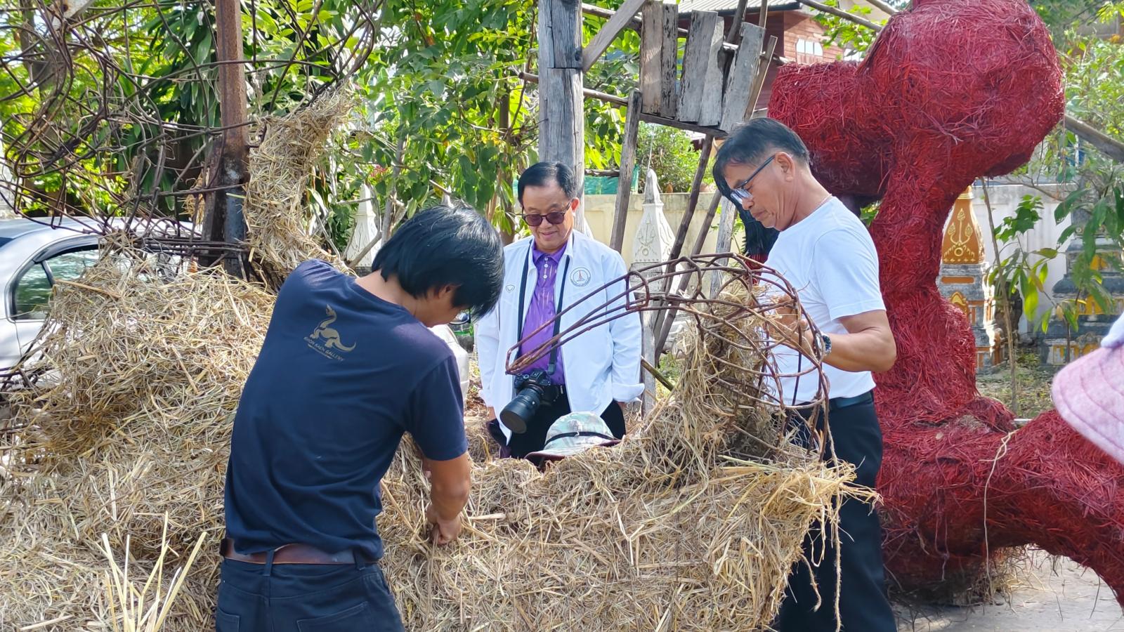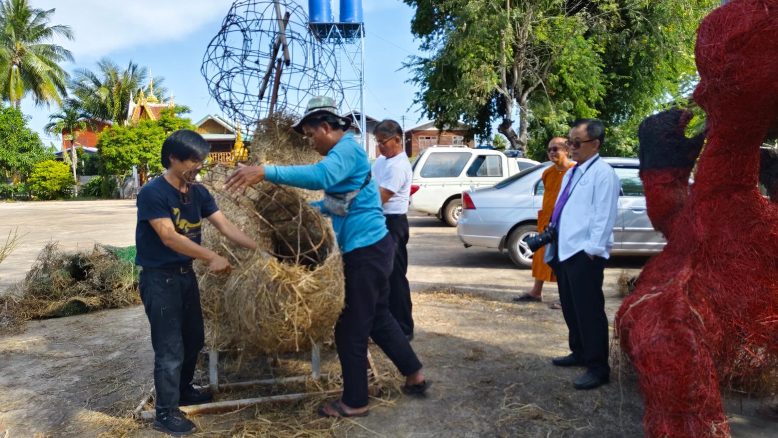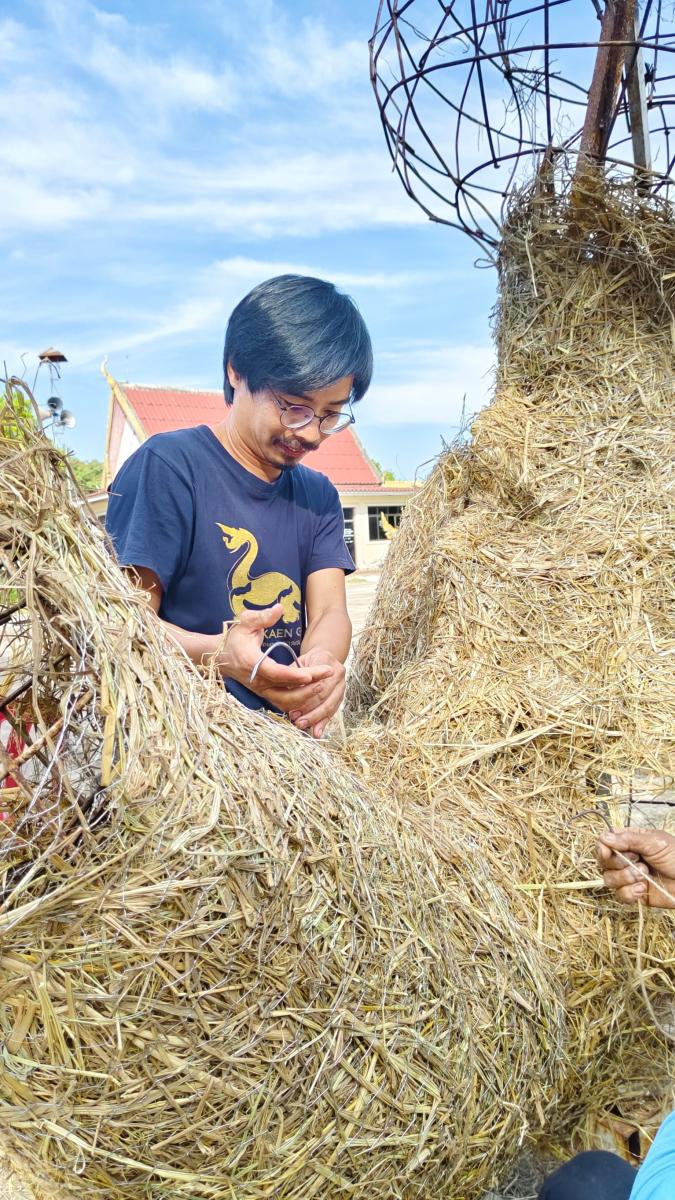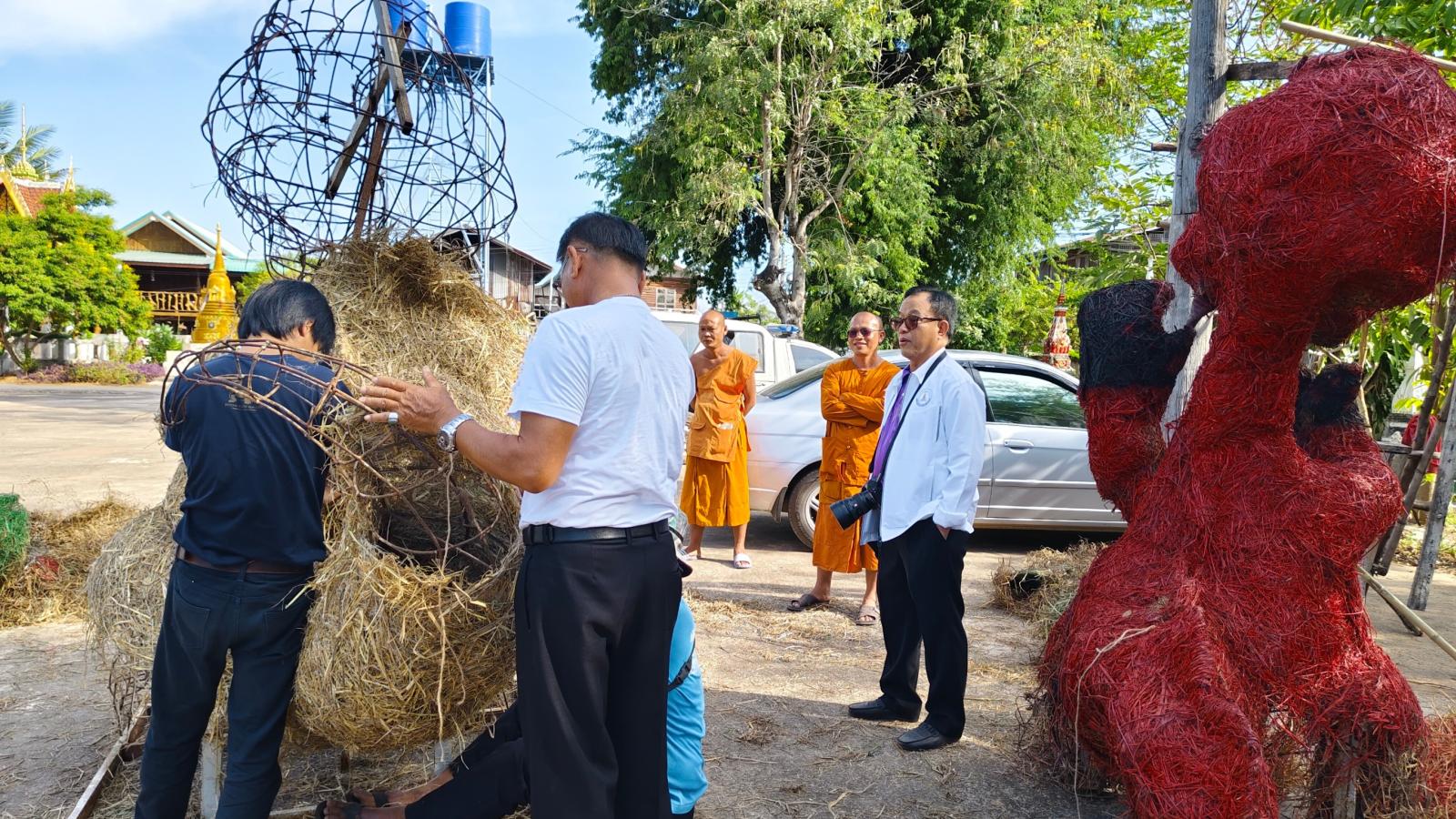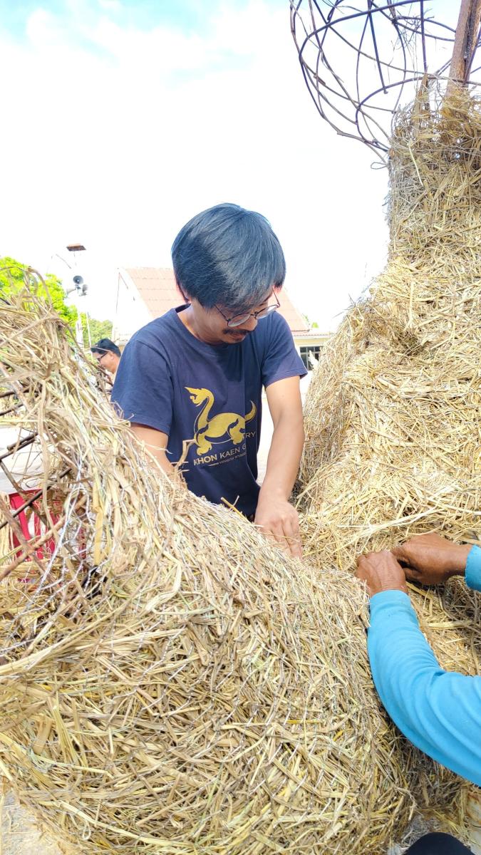 เมื่อวันที่ 8 ธันวาคม 2566 องค์การบริหารส่วนจังหวัดขอนแก่น นำโดย ดร.พงษ์ศักดิ์ ตั้งวานิชกพงษ์ นายกองค์การบริหารส่วนจังหวัดขอนแก่น มอบหมายให้นายธาดา พรหมสาขา ณ สกลนคร รองนายกองค์การบริหารส่วนจังหวัดขอนแก่น ร่วมกับขอนแก่นแกลลอรี่ และทีมงานอุทยานธรณีขอนแก่น ลงพื้นที่ตำบลหว้าทอง อ.ภูเวียง จ.ขอนแก่น เพื่อดูความคืบหน้าการเตรียมงานบุญประจำปีบุญกุ้มข้าวใหญ่ ในการนี้ขอนแก่นแกลเลอรี่ได้สอนวิธีการประดิษฐ์ไดโนเสาร์หุ่นฟาง ให้กับชาวบ้านที่สนใจเพื่อสามารถไปต่อยอดในการทำกิจกรรมในพื้นที่รวมถึงการสร้างรายได้เสริมอีกทางหนึ่งให้กับชาวบ้านด้วย บุญกุ้มข้าวใหญ่ของชาวบ้านโคกกลาง ตำบลหว้าทอง ใช้เวลาในการเตรียมตั้งแต่ช่วงที่ชาวบ้านเกี่ยวข้าวเอาข้าวมารวมกันทำลอมข้าวขนาดใหญ่ และตกแต่งบริเวณงานด้วยมัดข้าวอย่างสวยงามจนกว่าจะถึงวันบุญใช้เวลากว่า 3 เดือนในการเตรียมงาน และเป็นบุญประเพณีที่ชาวบ้านร่วมแรงร่วมใจกันทำ ทำให้คุณประเพณีนี้ดูยิ่งใหญ่และสวยงามเป็นอย่างมาก