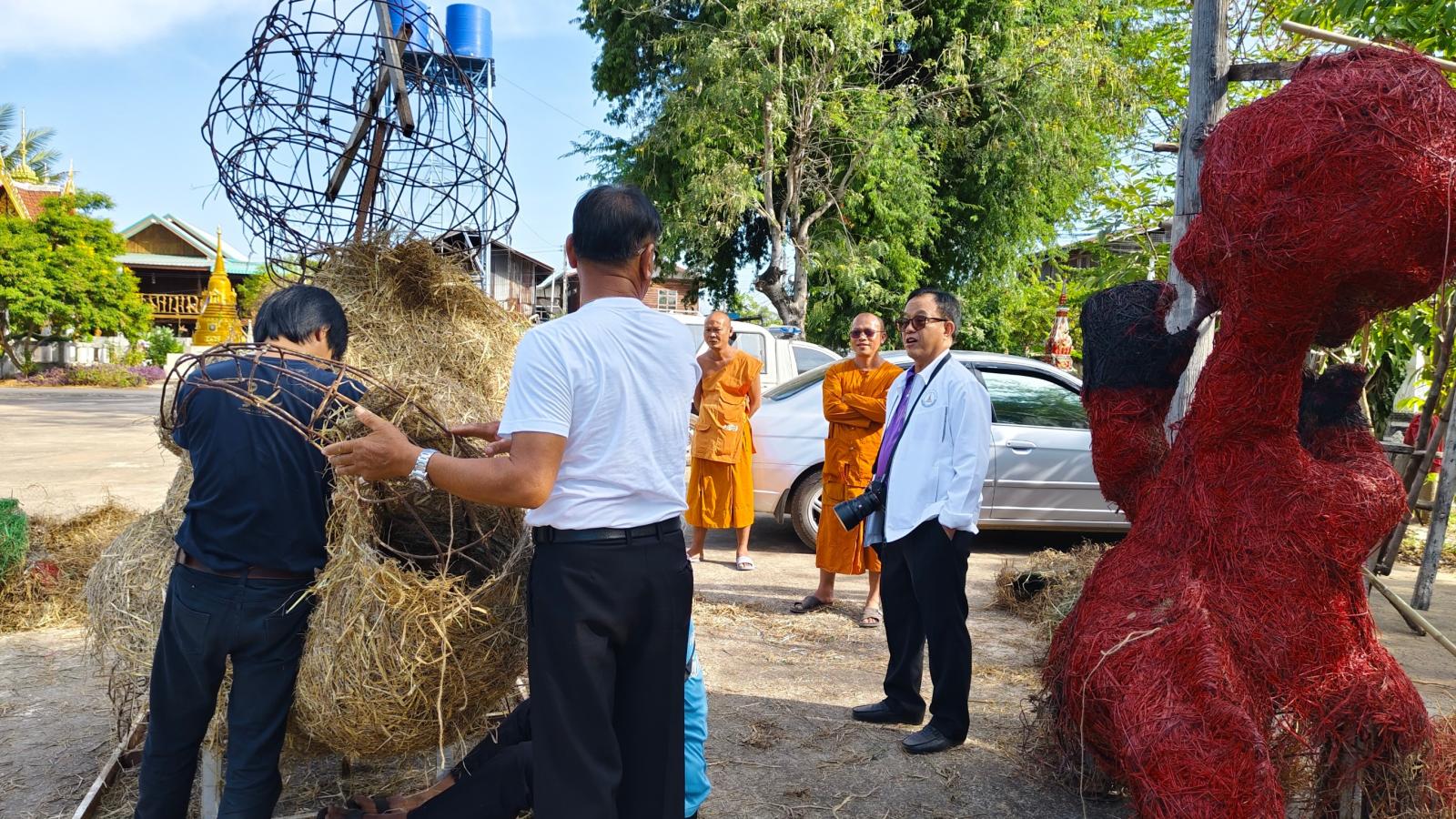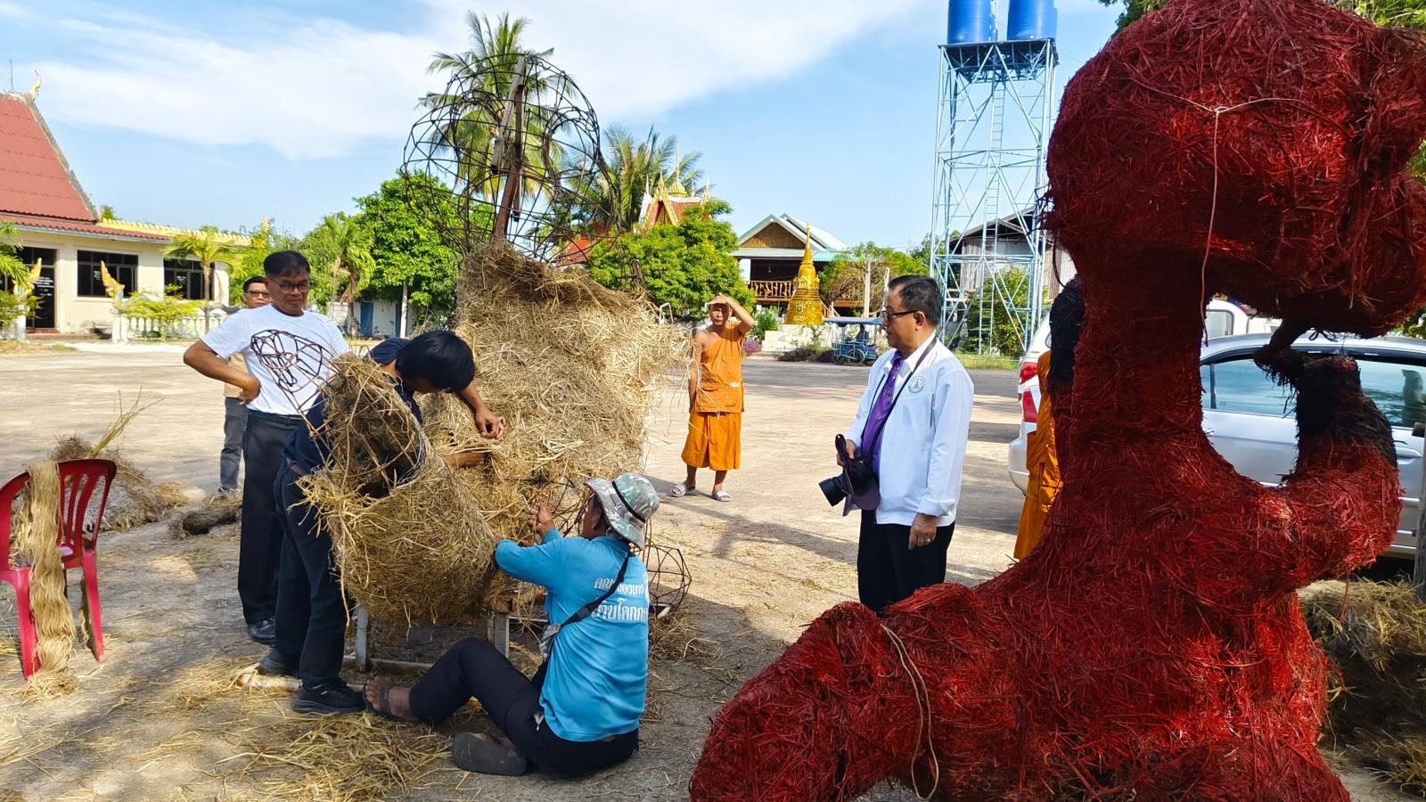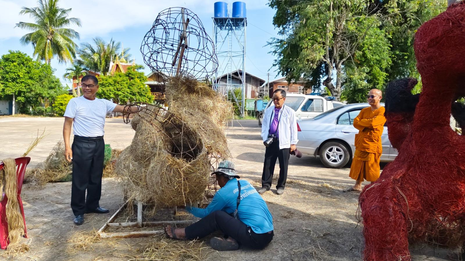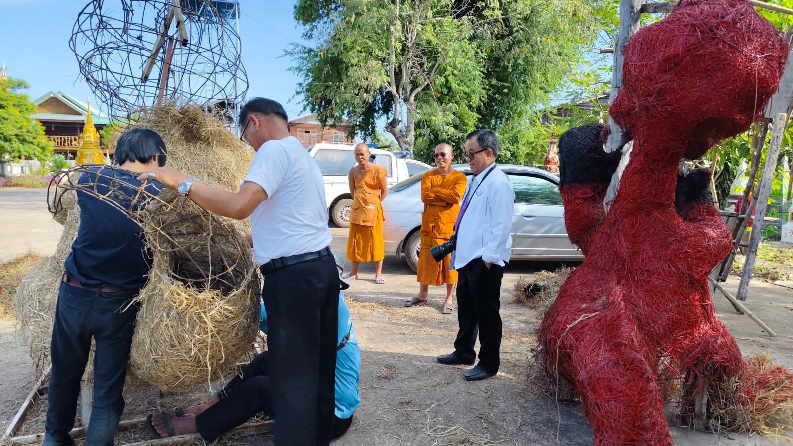 เมื่อวันที่ 8 ธันวาคม 2566 องค์การบริหารส่วนจังหวัดขอนแก่น นำโดย ดร.พงษ์ศักดิ์ ตั้งวานิชกพงษ์ นายกองค์การบริหารส่วนจังหวัดขอนแก่น มอบหมายให้นายธาดา พรหมสาขา ณ สกลนคร รองนายกองค์การบริหารส่วนจังหวัดขอนแก่น ร่วมกับขอนแก่นแกลลอรี่ และทีมงานอุทยานธรณีขอนแก่น ลงพื้นที่ตำบลหว้าทอง อ.ภูเวียง จ.ขอนแก่น เพื่อดูความคืบหน้าการเตรียมงานบุญประจำปีบุญกุ้มข้าวใหญ่ ในการนี้ขอนแก่นแกลเลอรี่ได้สอนวิธีการประดิษฐ์ไดโนเสาร์หุ่นฟาง ให้กับชาวบ้านที่สนใจเพื่อสามารถไปต่อยอดในการทำกิจกรรมในพื้นที่รวมถึงการสร้างรายได้เสริมอีกทางหนึ่งให้กับชาวบ้านด้วย บุญกุ้มข้าวใหญ่ของชาวบ้านโคกกลาง ตำบลหว้าทอง ใช้เวลาในการเตรียมตั้งแต่ช่วงที่ชาวบ้านเกี่ยวข้าวเอาข้าวมารวมกันทำลอมข้าวขนาดใหญ่ และตกแต่งบริเวณงานด้วยมัดข้าวอย่างสวยงามจนกว่าจะถึงวันบุญใช้เวลากว่า 3 เดือนในการเตรียมงาน และเป็นบุญประเพณีที่ชาวบ้านร่วมแรงร่วมใจกันทำ ทำให้คุณประเพณีนี้ดูยิ่งใหญ่และสวยงามเป็นอย่างมาก