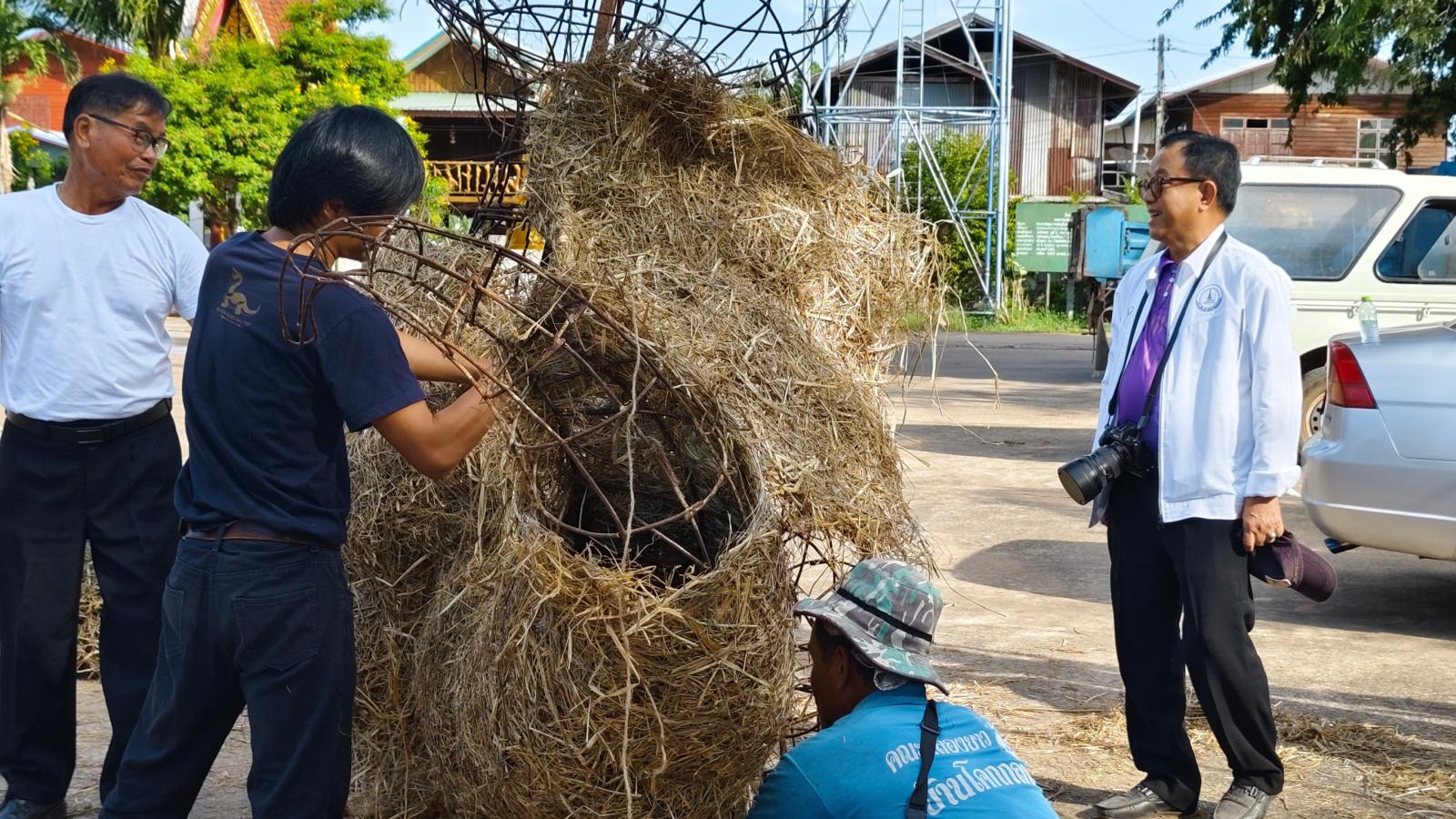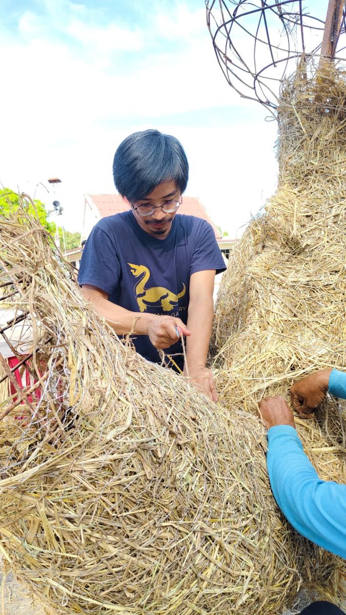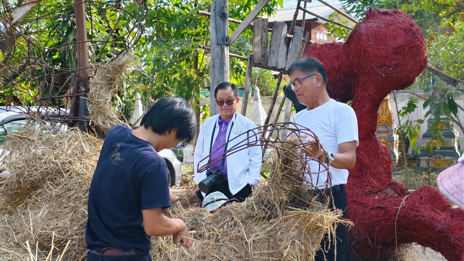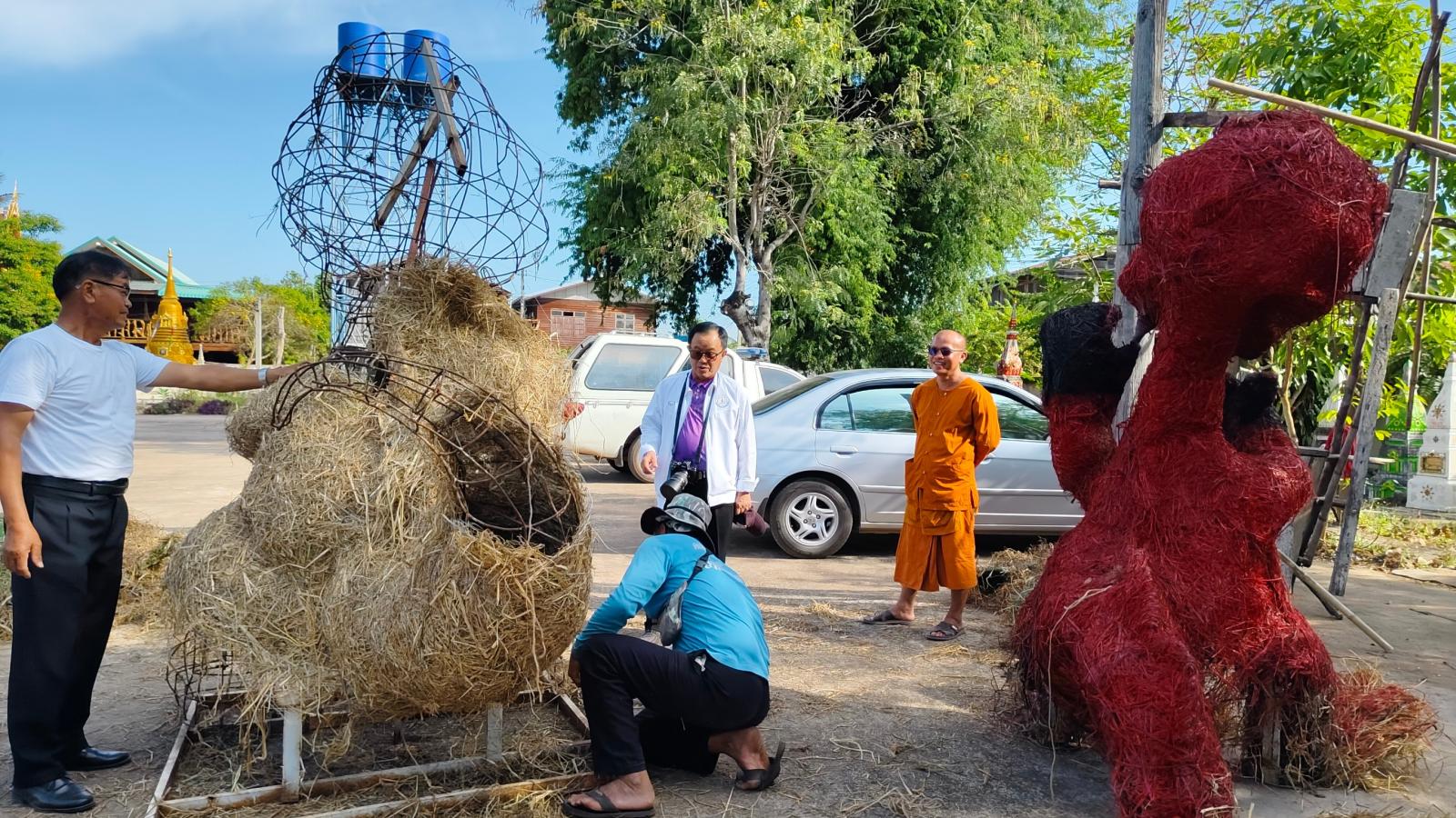 เมื่อวันที่ 8 ธันวาคม 2566 องค์การบริหารส่วนจังหวัดขอนแก่น นำโดย ดร.พงษ์ศักดิ์ ตั้งวานิชกพงษ์ นายกองค์การบริหารส่วนจังหวัดขอนแก่น มอบหมายให้นายธาดา พรหมสาขา ณ สกลนคร รองนายกองค์การบริหารส่วนจังหวัดขอนแก่น ร่วมกับขอนแก่นแกลลอรี่ และทีมงานอุทยานธรณีขอนแก่น ลงพื้นที่ตำบลหว้าทอง อ.ภูเวียง จ.ขอนแก่น เพื่อดูความคืบหน้าการเตรียมงานบุญประจำปีบุญกุ้มข้าวใหญ่ ในการนี้ขอนแก่นแกลเลอรี่ได้สอนวิธีการประดิษฐ์ไดโนเสาร์หุ่นฟาง ให้กับชาวบ้านที่สนใจเพื่อสามารถไปต่อยอดในการทำกิจกรรมในพื้นที่รวมถึงการสร้างรายได้เสริมอีกทางหนึ่งให้กับชาวบ้านด้วย บุญกุ้มข้าวใหญ่ของชาวบ้านโคกกลาง ตำบลหว้าทอง ใช้เวลาในการเตรียมตั้งแต่ช่วงที่ชาวบ้านเกี่ยวข้าวเอาข้าวมารวมกันทำลอมข้าวขนาดใหญ่ และตกแต่งบริเวณงานด้วยมัดข้าวอย่างสวยงามจนกว่าจะถึงวันบุญใช้เวลากว่า 3 เดือนในการเตรียมงาน และเป็นบุญประเพณีที่ชาวบ้านร่วมแรงร่วมใจกันทำ ทำให้คุณประเพณีนี้ดูยิ่งใหญ่และสวยงามเป็นอย่างมาก