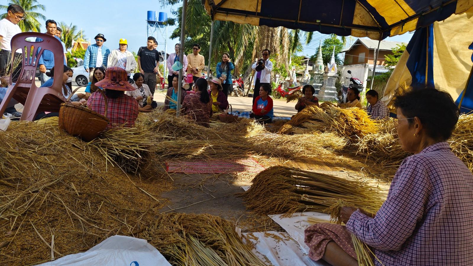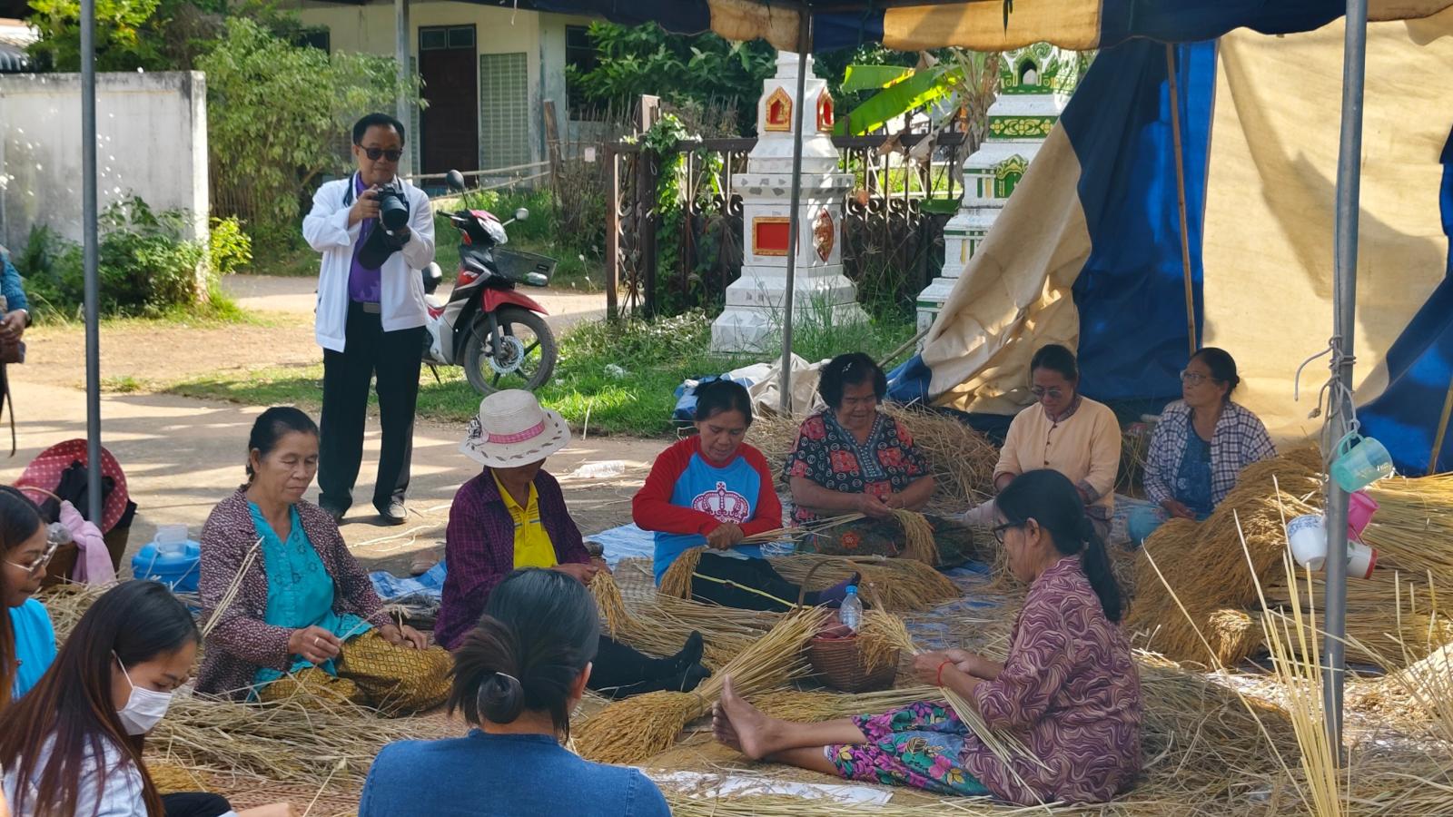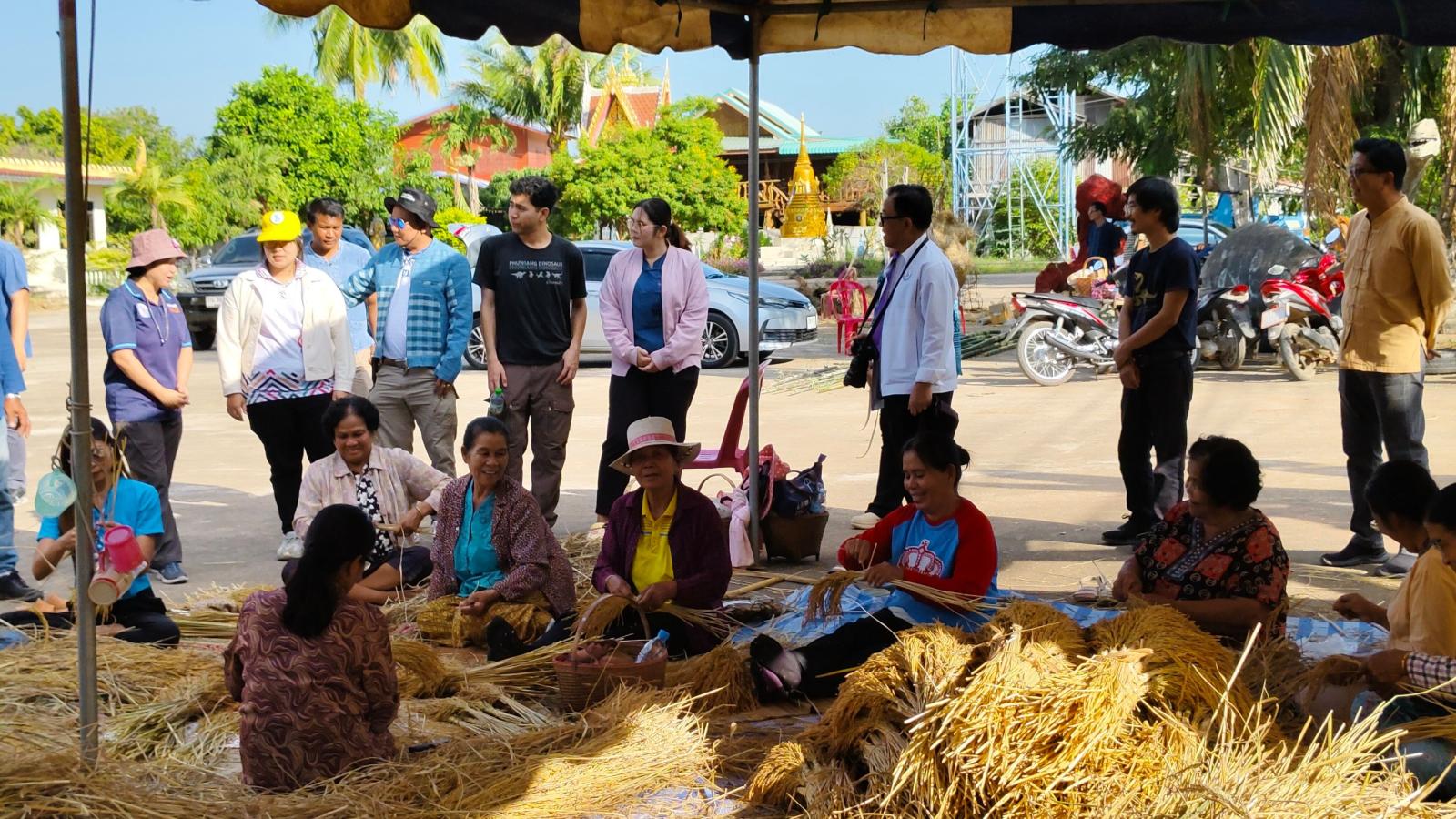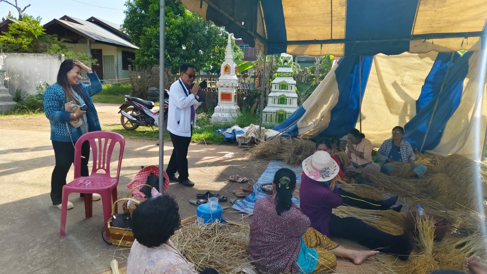 เมื่อวันที่ 8 ธันวาคม 2566 องค์การบริหารส่วนจังหวัดขอนแก่น นำโดย ดร.พงษ์ศักดิ์ ตั้งวานิชกพงษ์ นายกองค์การบริหารส่วนจังหวัดขอนแก่น มอบหมายให้นายธาดา พรหมสาขา ณ สกลนคร รองนายกองค์การบริหารส่วนจังหวัดขอนแก่น ร่วมกับขอนแก่นแกลลอรี่ และทีมงานอุทยานธรณีขอนแก่น ลงพื้นที่ตำบลหว้าทอง อ.ภูเวียง จ.ขอนแก่น เพื่อดูความคืบหน้าการเตรียมงานบุญประจำปีบุญกุ้มข้าวใหญ่ ในการนี้ขอนแก่นแกลเลอรี่ได้สอนวิธีการประดิษฐ์ไดโนเสาร์หุ่นฟาง ให้กับชาวบ้านที่สนใจเพื่อสามารถไปต่อยอดในการทำกิจกรรมในพื้นที่รวมถึงการสร้างรายได้เสริมอีกทางหนึ่งให้กับชาวบ้านด้วย บุญกุ้มข้าวใหญ่ของชาวบ้านโคกกลาง ตำบลหว้าทอง ใช้เวลาในการเตรียมตั้งแต่ช่วงที่ชาวบ้านเกี่ยวข้าวเอาข้าวมารวมกันทำลอมข้าวขนาดใหญ่ และตกแต่งบริเวณงานด้วยมัดข้าวอย่างสวยงามจนกว่าจะถึงวันบุญใช้เวลากว่า 3 เดือนในการเตรียมงาน และเป็นบุญประเพณีที่ชาวบ้านร่วมแรงร่วมใจกันทำ ทำให้คุณประเพณีนี้ดูยิ่งใหญ่และสวยงามเป็นอย่างมาก