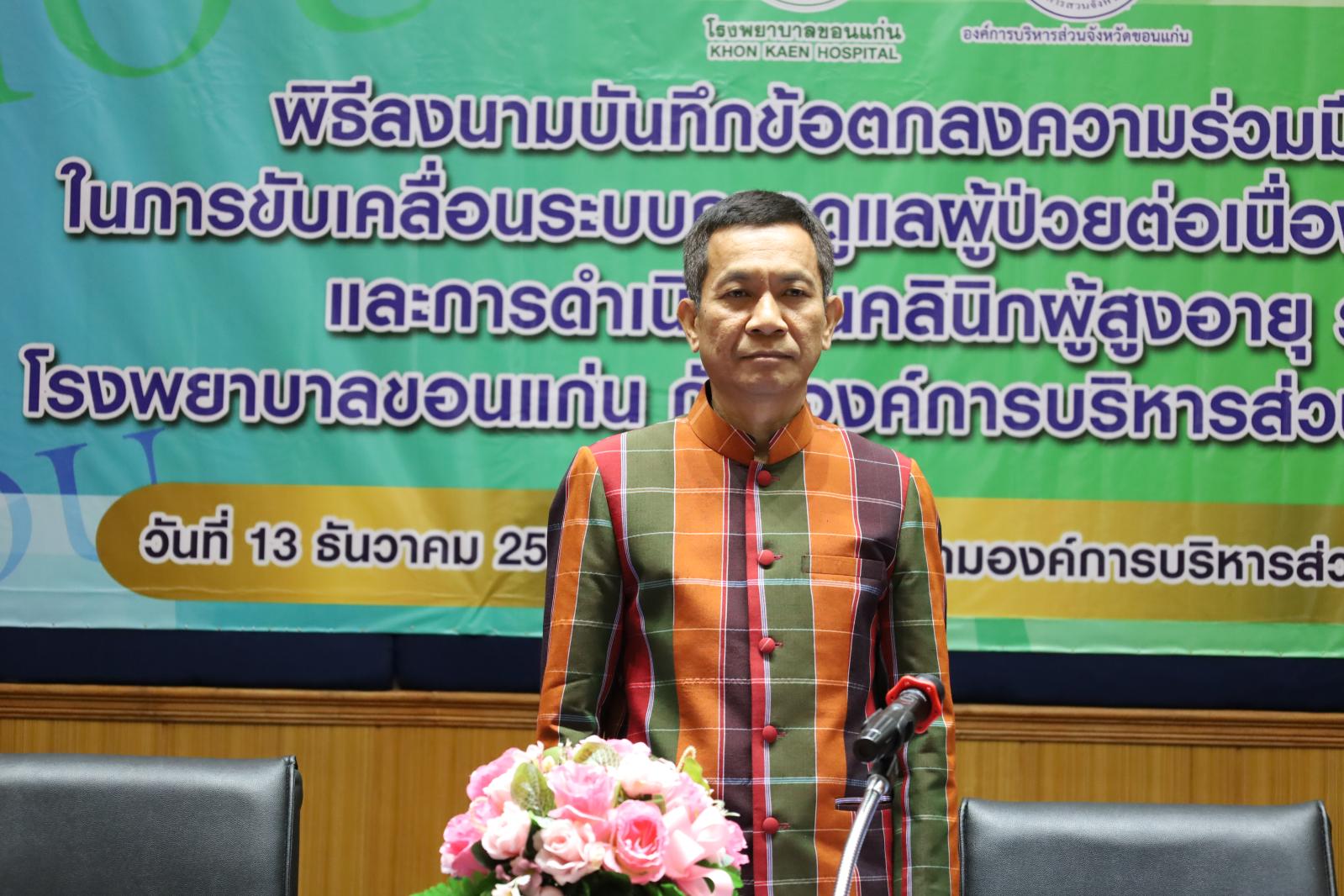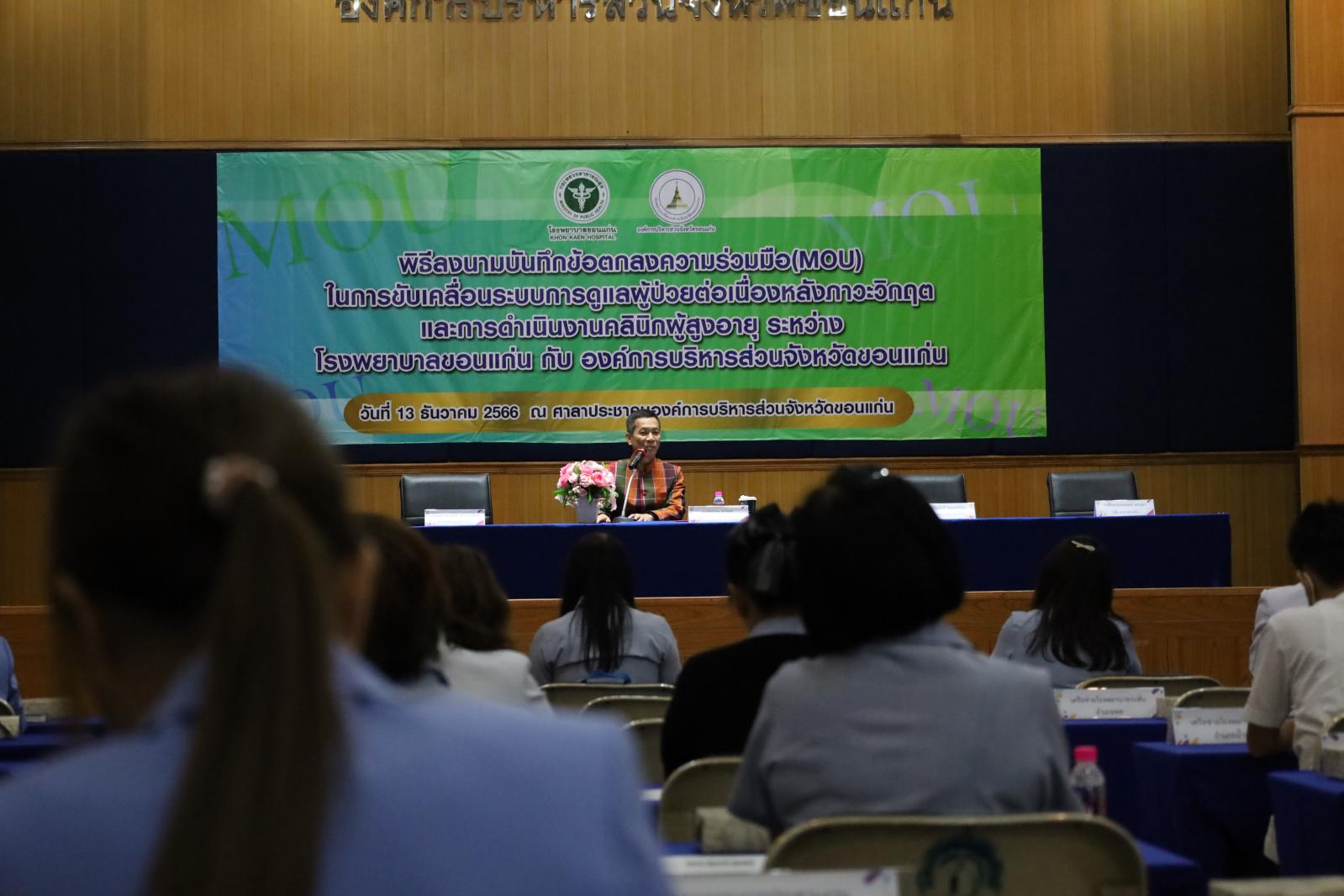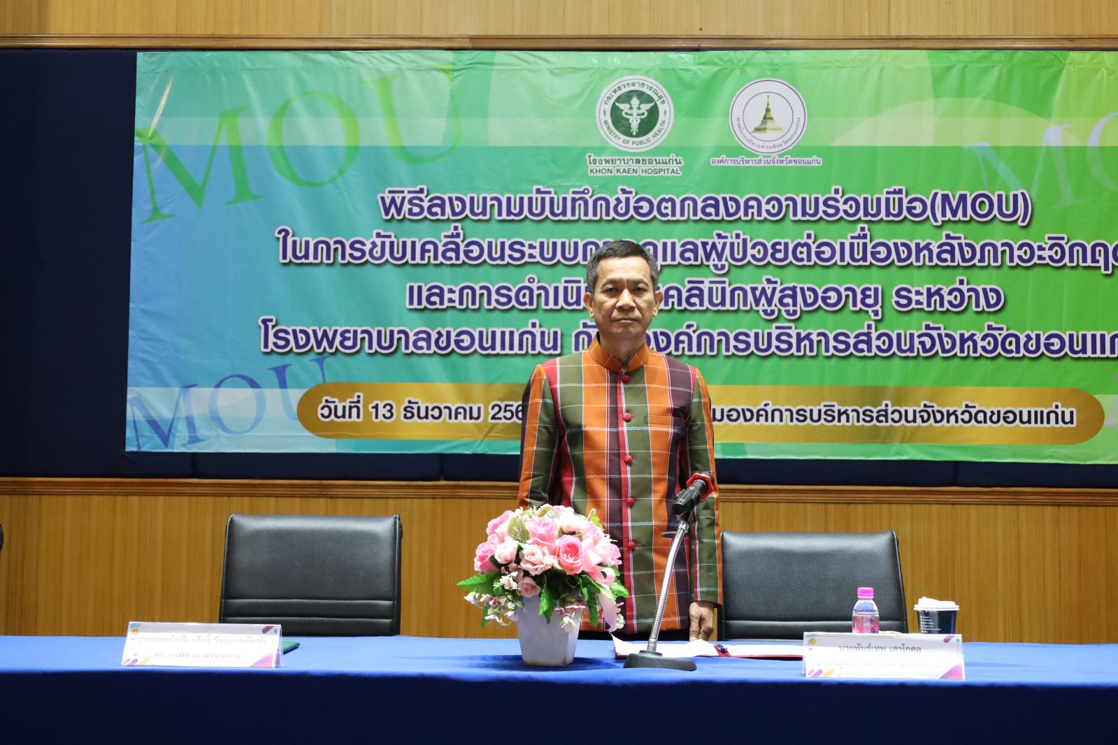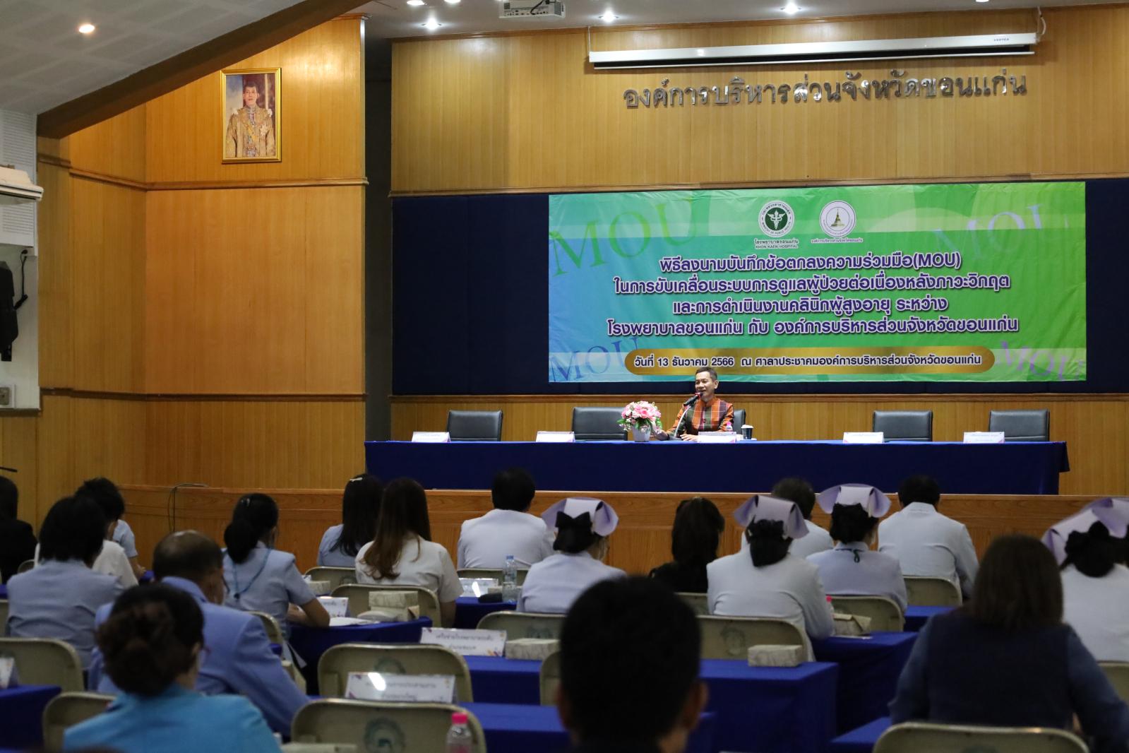 เมื่อวันที่ 13 ธันวาคม 2566 เวลา 14.00 น. ดร.พงษ์ศักดิ์ ตั้งวานิชกพงษ์ นายก อบจ.ขอนแก่น มอบหมายให้ นายประสิทธิ์ ทองแท่งไทย รองนายก อบจ.ขอนแก่น กล่าวต้อนรับในพิธีลงนามความร่วมมือ (MOU) ในการขับเคลื่อนระบบการดูแลผู้ป่วยต่อเนื่องหลังภาวะวิกฤติและดำเนินงานคลินิกผู้สูงอายุ ระหว่างโรงพยาบาลขอนแก่น กับ องค์การบริหารส่วนจังหวัดขอนแก่น โดยมี นายพันธุ์เทพ เสาโกศล รองผู้ว่าราชการจังหวัดขอนแก่น เป็นประธานและร่วมเป็นสักขีพยานในพิธีลงนามความร่วมมือ ในโอกาสนี้มี นายแพทย์เกรียงศักดิ์ วัชรนุกูลเกียรติ ผอ.โรงพยาบาลขอนแก่น, ว่าที่ร้อยเอกพงเจตน์ พรกุณา ปลัด อบจ.ขอนแก่น, นายแพทย์วิทยา ชาติบัญชาชัย ผอ.ศูนย์ความร่วมมือระหว่างองค์การอนามัยโลกด้านการป้องกันการบาดเจ็บ, นางบัวบุญ อุดมทรัพย์ รองนายแพทย์สาธารณสุขจังหวัดขอนแก่น, นางสาวนิศากร ดอนกระสินธุ์ ผอ.กองสาธารณสุข อบจ.ขอนแก่น เข้าร่วมพิธีลงนามและเป็นสักขีพยาน ณ ศาลาประชาคมองค์การบริหารส่วนจังหวัดขอนแก่น อ.เมืองขอนแก่น จ.ขอนแก่น