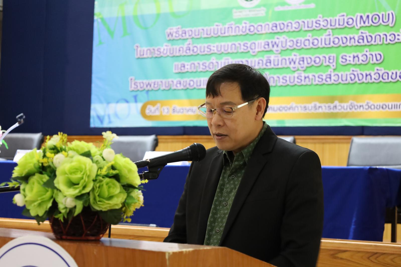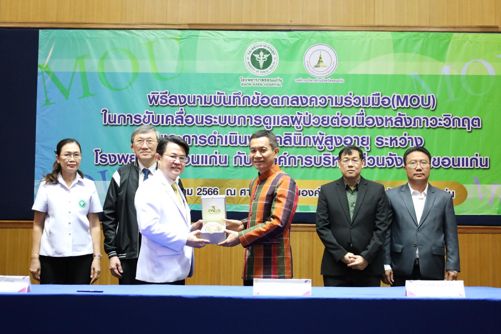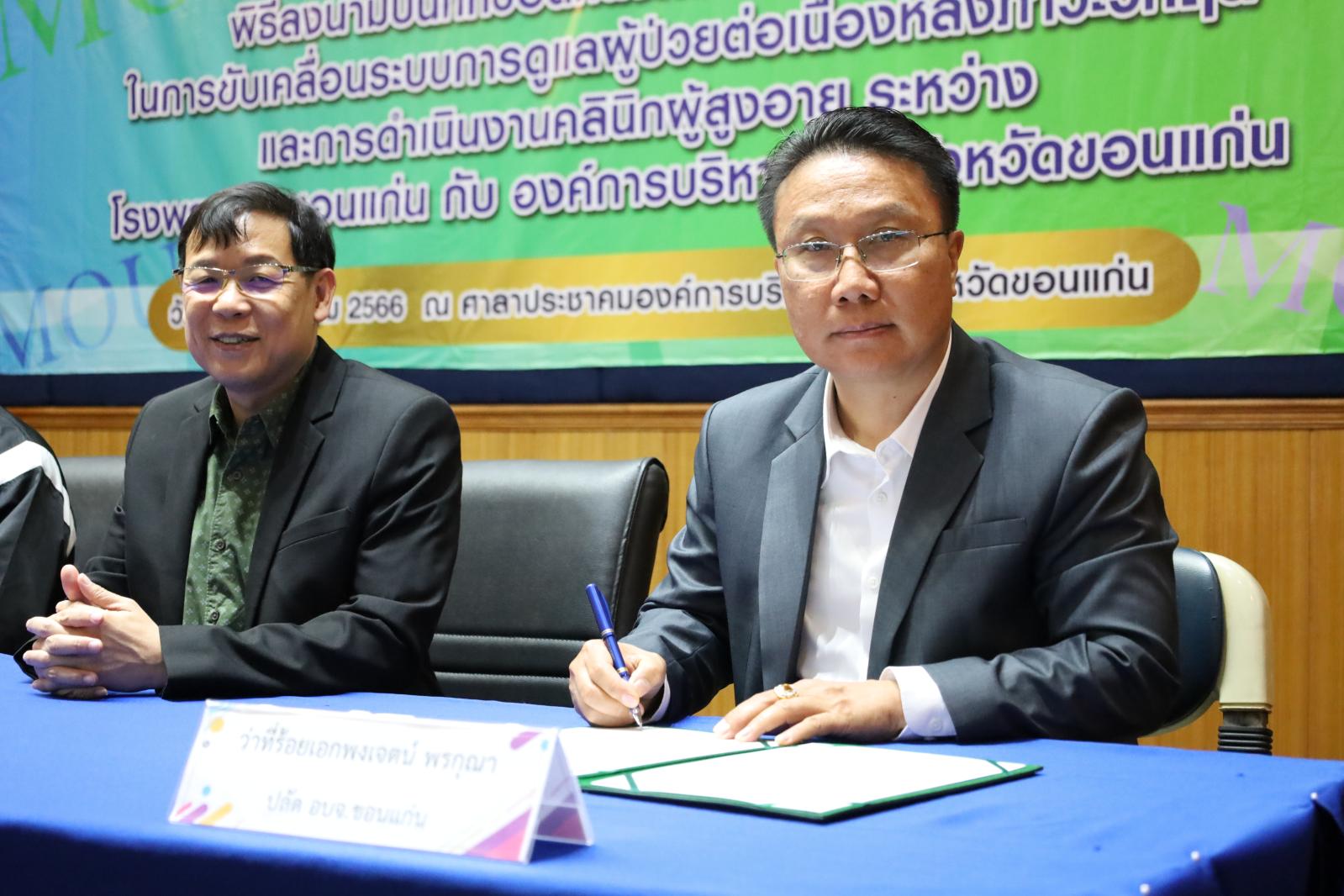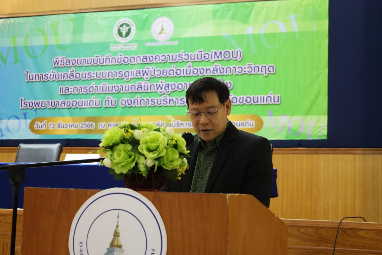 เมื่อวันที่ 13 ธันวาคม 2566 เวลา 14.00 น. ดร.พงษ์ศักดิ์ ตั้งวานิชกพงษ์ นายก อบจ.ขอนแก่น มอบหมายให้ นายประสิทธิ์ ทองแท่งไทย รองนายก อบจ.ขอนแก่น กล่าวต้อนรับในพิธีลงนามความร่วมมือ (MOU) ในการขับเคลื่อนระบบการดูแลผู้ป่วยต่อเนื่องหลังภาวะวิกฤติและดำเนินงานคลินิกผู้สูงอายุ ระหว่างโรงพยาบาลขอนแก่น กับ องค์การบริหารส่วนจังหวัดขอนแก่น โดยมี นายพันธุ์เทพ เสาโกศล รองผู้ว่าราชการจังหวัดขอนแก่น เป็นประธานและร่วมเป็นสักขีพยานในพิธีลงนามความร่วมมือ ในโอกาสนี้มี นายแพทย์เกรียงศักดิ์ วัชรนุกูลเกียรติ ผอ.โรงพยาบาลขอนแก่น, ว่าที่ร้อยเอกพงเจตน์ พรกุณา ปลัด อบจ.ขอนแก่น, นายแพทย์วิทยา ชาติบัญชาชัย ผอ.ศูนย์ความร่วมมือระหว่างองค์การอนามัยโลกด้านการป้องกันการบาดเจ็บ, นางบัวบุญ อุดมทรัพย์ รองนายแพทย์สาธารณสุขจังหวัดขอนแก่น, นางสาวนิศากร ดอนกระสินธุ์ ผอ.กองสาธารณสุข อบจ.ขอนแก่น เข้าร่วมพิธีลงนามและเป็นสักขีพยาน ณ ศาลาประชาคมองค์การบริหารส่วนจังหวัดขอนแก่น อ.เมืองขอนแก่น จ.ขอนแก่น