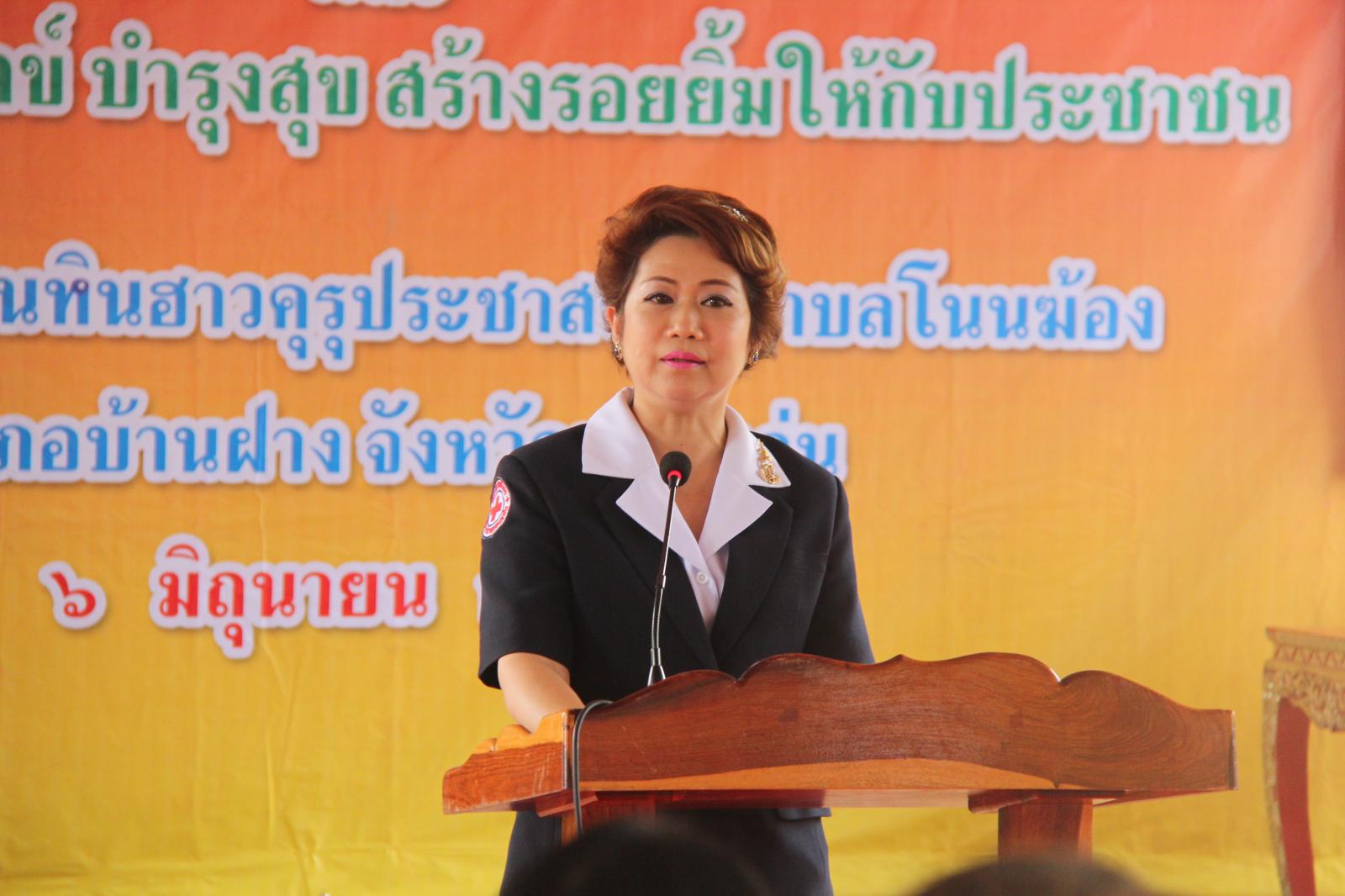 เมื่อวันศุกร์ที่ 6 มิถุนายน 2557 ณ โรงเรียนบ้านหินฮาวคุรุประชาสรรค์ ต.โนนฆ้อง อ.บ้านฝาง จ.ขอนแก่น ดร.พงษ์ศักดิ์ ตั้งวานิชกพงษ์ นายกองค์การบริหารส่วนจังหวัดขอนแก่น มอบหมายให้ นายธนัช เครือมา สมาชิกสภาองค์การบริหารส่วนจังหวัดขอนแก่น เขตอำเภอบ้านฝาง นำคณะข้าราชการ และพนักงานองค์การบริหารส่วนจังหวัดขอนแก่น ออกปฏิบัติงานหน่วยแพทย์เคลื่อนที่ พอ.สว. ในโอกาสนี้องค์การบริหารส่วนจังหวัดขอนแก่น ได้นำเครื่องอุปโภค บริโภค ไปแจกจ่ายให้กับประชาชนในตำบลโนนฆ้องด้วย