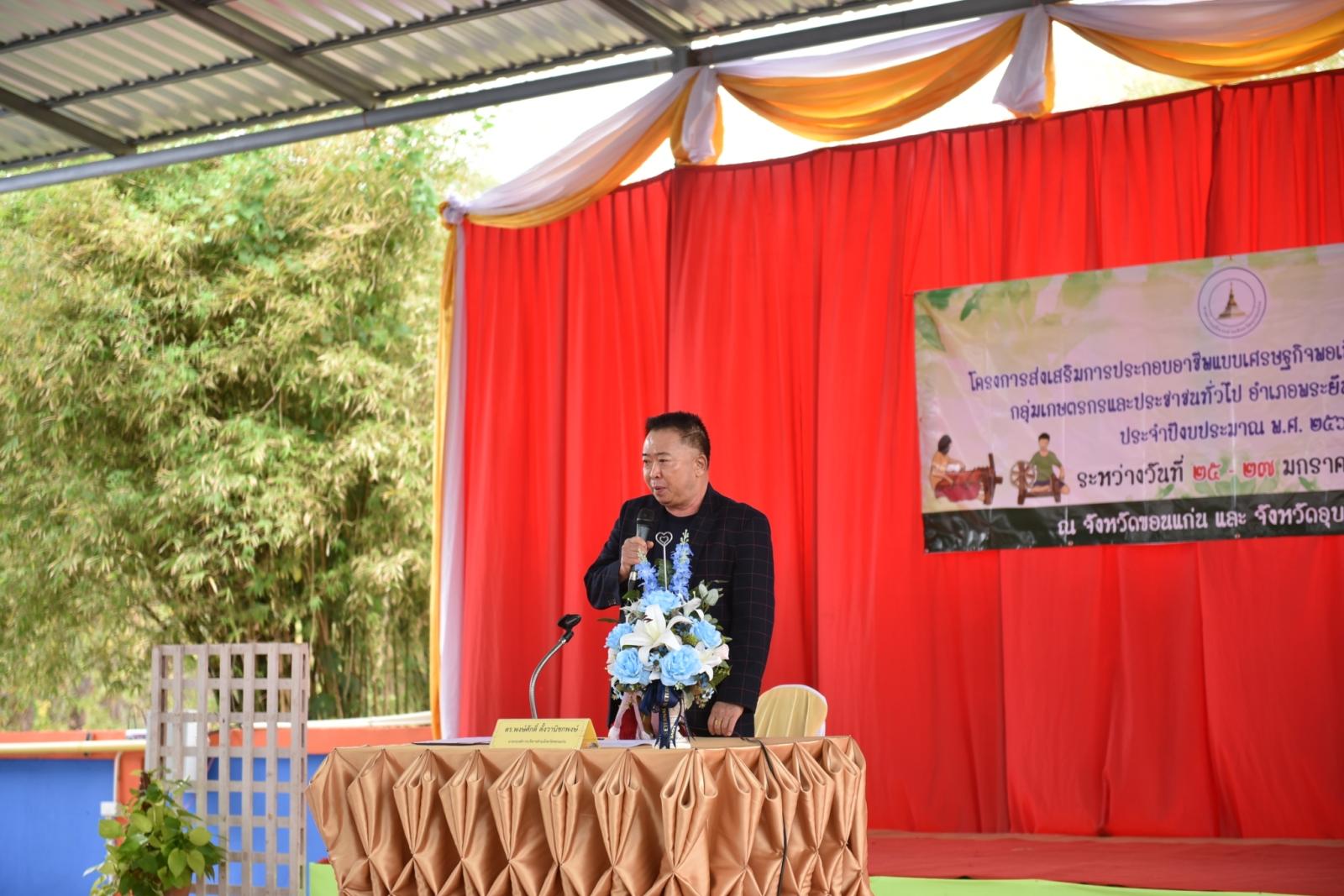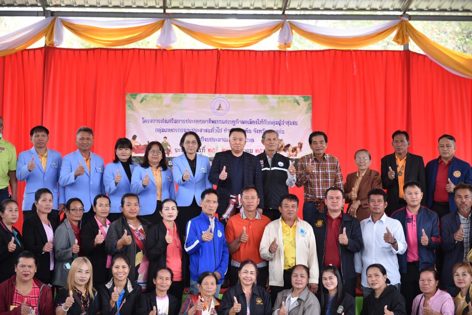 วันที่ 25 มกราคม 2567 เวลา 11.00 น. องค์การบริหารส่วนจังหวัดขอนแก่น นำโดย ดร.พงษ์ศักดิ์ ตั้งวานิชกพงษ์ นายกองค์การบริหารส่วนจังหวัดขอนแก่นเป็นประธานเปิดโครงการส่งเสริมการประกอบอาชีพ แบบเศรษฐกิจพอเพียง ให้กับกลุ่มผู้นำชุมชน กลุ่มเกษตรกรและประชาชนทั่วไป อ.พระยืน ประจำปีงบประมาณ พ.ศ.2567 โดยมี น.ส.สุธิดา อุ่นสนธิ์ หัวหน้าฝ่ายอำนวยการ กล่าวรายงาน ในโอกาสนี้มี นายสมาส นามพิกุล ส.อบจ.ขอนแก่น เขต อ.พระยืน พร้อมด้วย นายมีสวัสดิ์ ชมชัยภูมิ ส.อบจ.ขอนแก่น เขต อ.โคกโพธิ์ไชย ร่วมเป็นเกียรติในพิธี ณ โรงเรียนอนุบาลพิกุลทิพย์ อำเภอพระยืน จังหวัดขอนแก่น