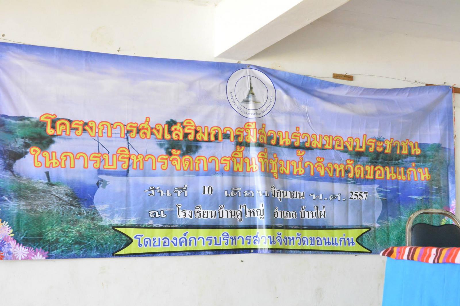 เมื่อวันที่ 9 มิถุนายน 2557 ดร.พงษ์ศักดิ์ ตั้งวานิชกพงษ์ นายกองค์การบริหารส่วนจังหวัดขอนแก่น เป็นประธานเปิดโครงการส่งเสริมการมีส่วนร่วมของประชาชน ในการจัดการพื้นที่ชุ่มน้ำ จังหวัดขอนแก่น ณ โรงเรียนบ้านดู่ใหญ่ อำเภอบ้านไผ่ โดยมี นายเดชคำรณ สิงคลีบุตร ส.อบจ.ขอนแก่น อ.บ้านไผ่ เขต 1 และ นายองอาจ ฉัตรชัยพลรัตน์ ส.อบจ.ขอนแก่น อ.บ้านไผ่ เขต 2 ร่วมเป็นเกียรติในพิธี