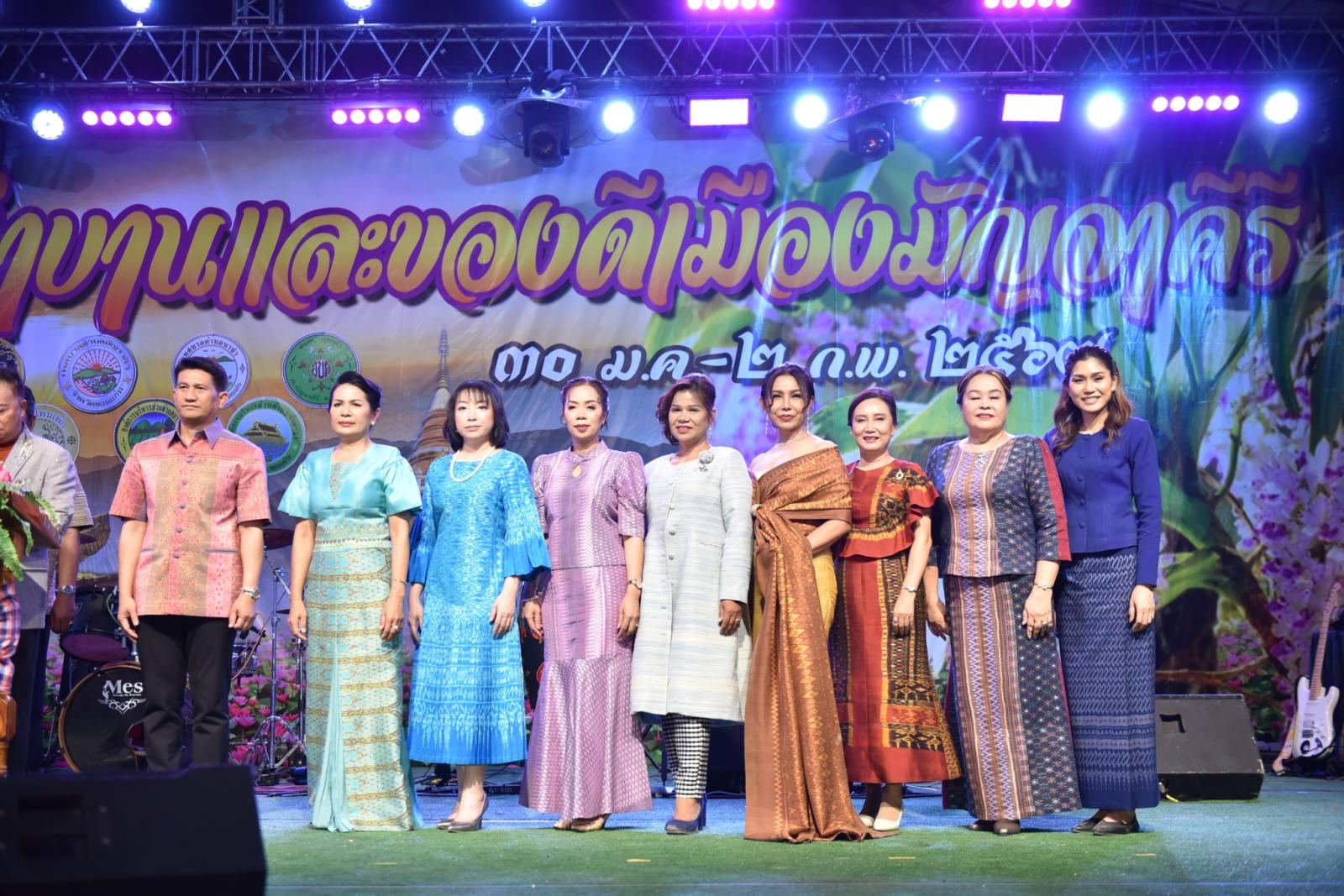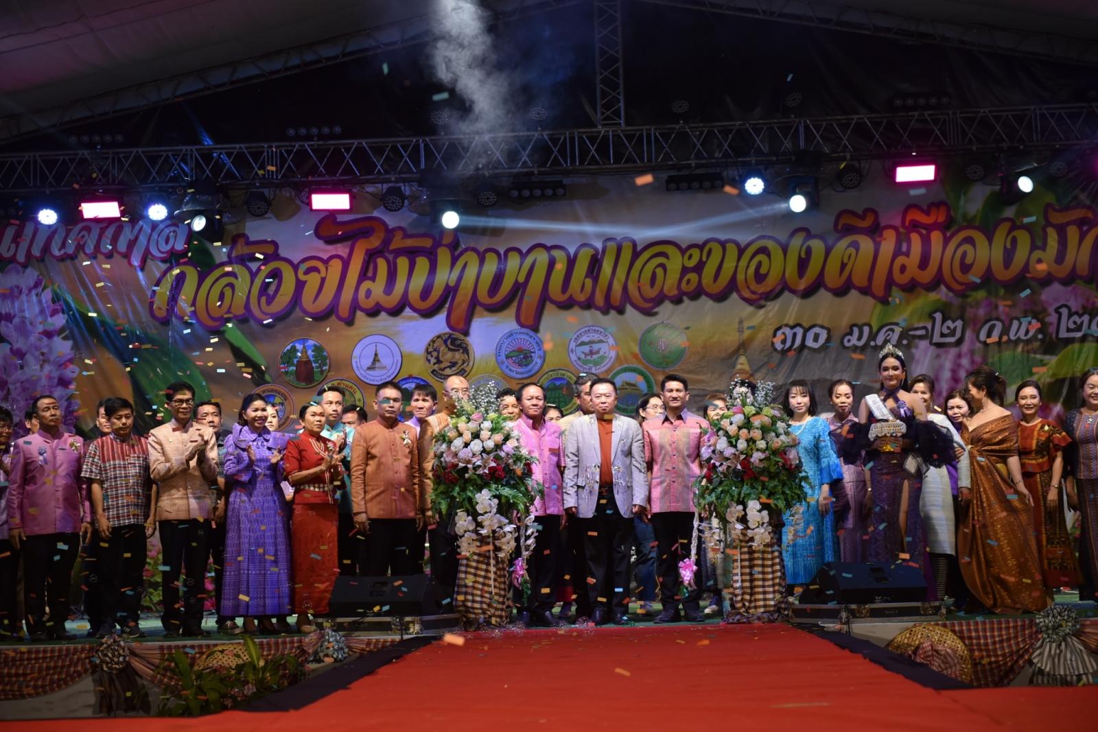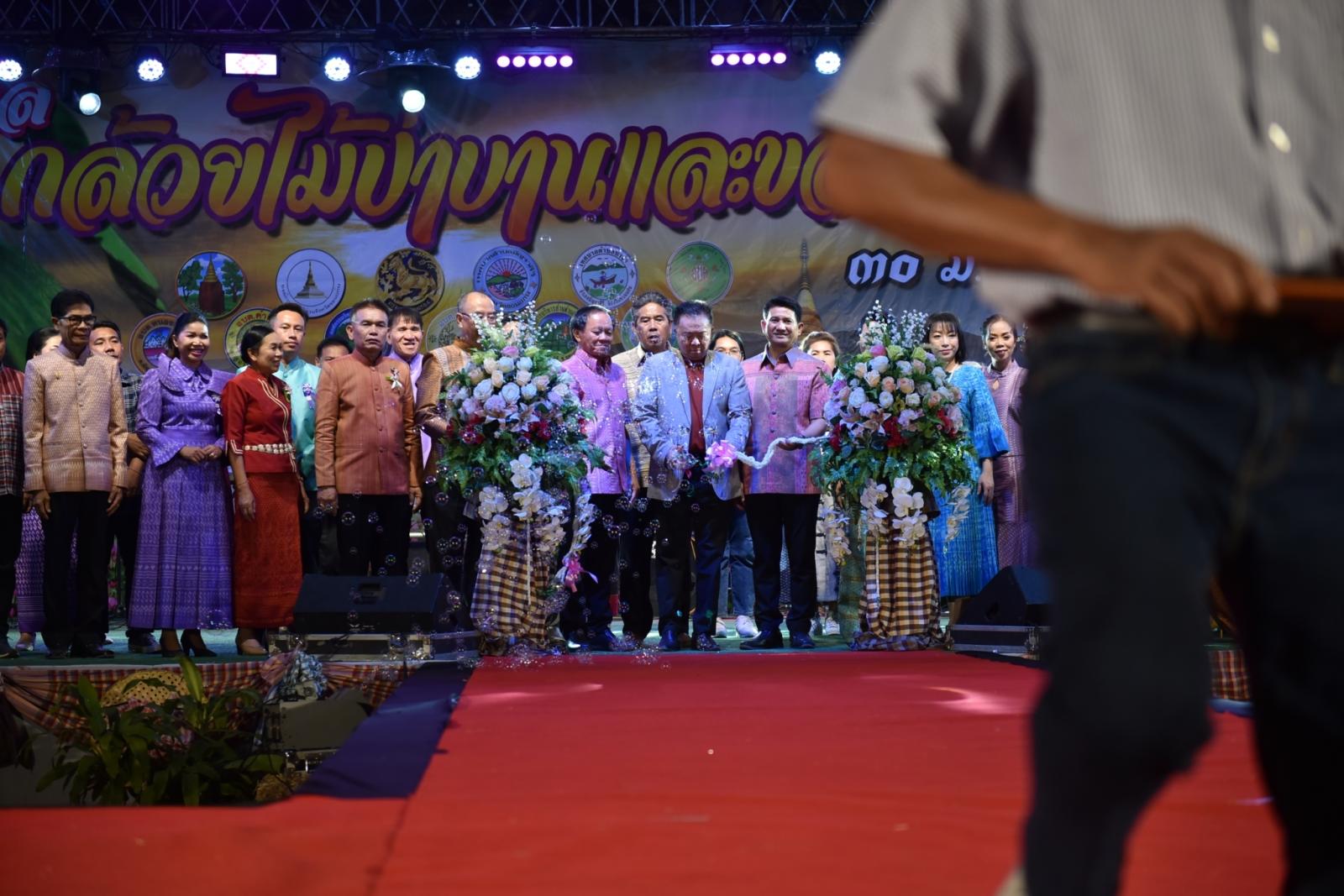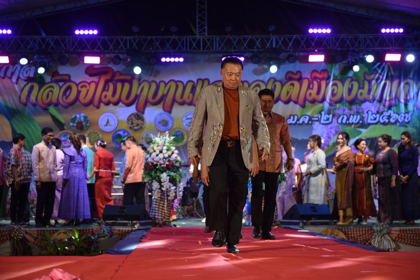 พิธีเปิดการเดินแฟชั่นผ้าไทยให้สนุก การประกวดร้องเพลงลูกทุ่ง และงานพาแลง ในงานเทศกาลกล้วยไม้บานและของดีเมืองมัญจาคีรี ประจำปี 2567