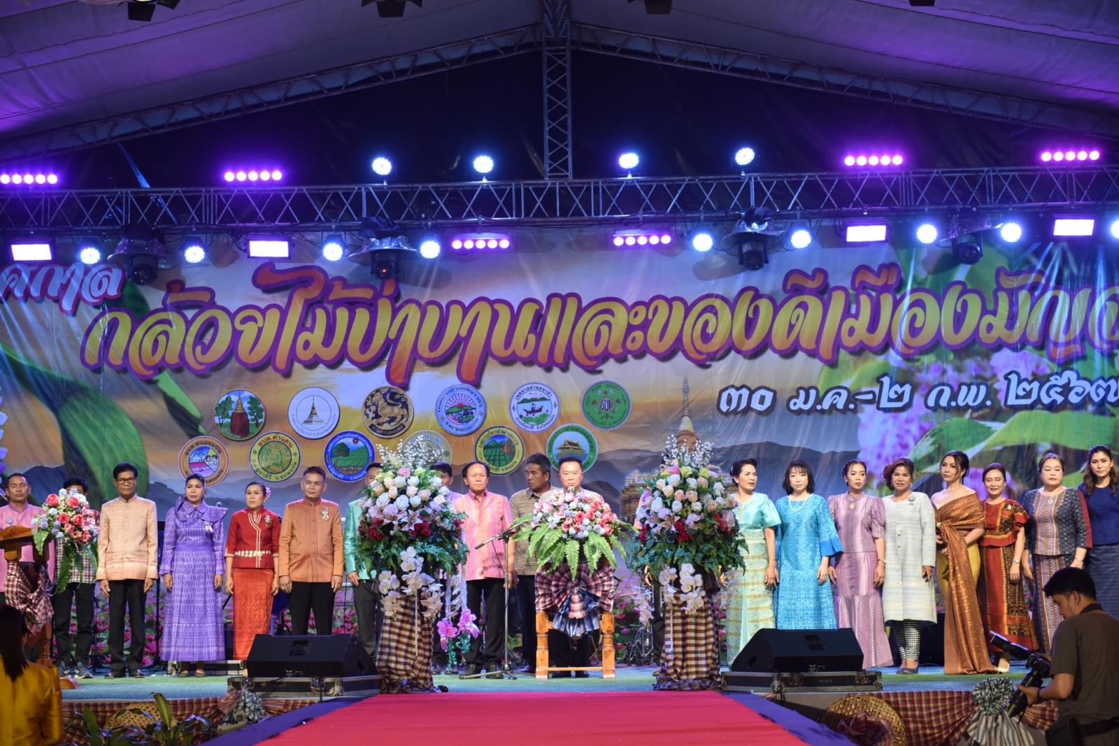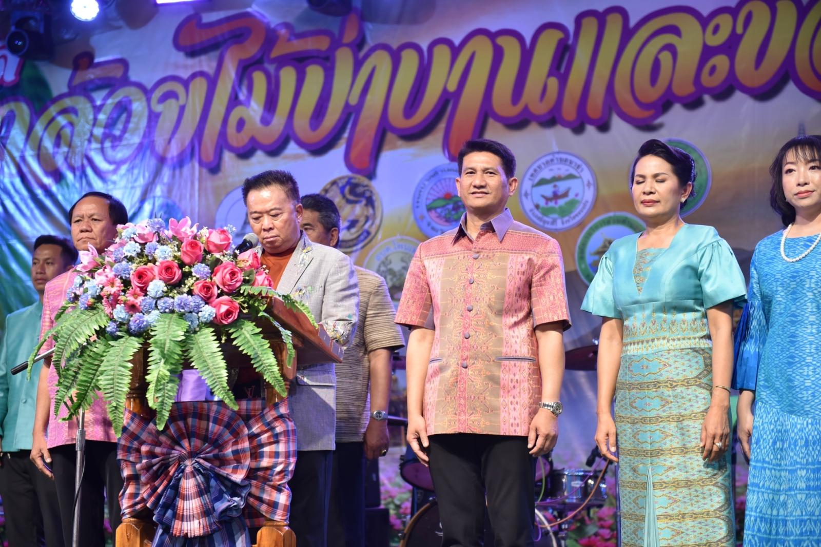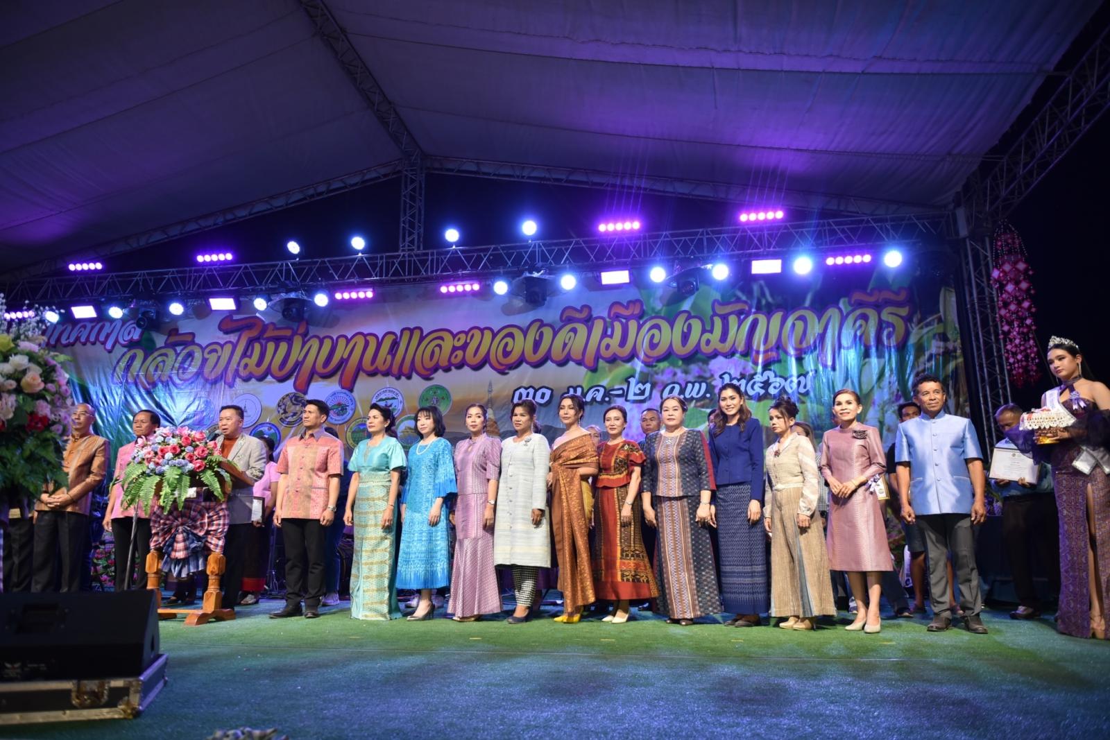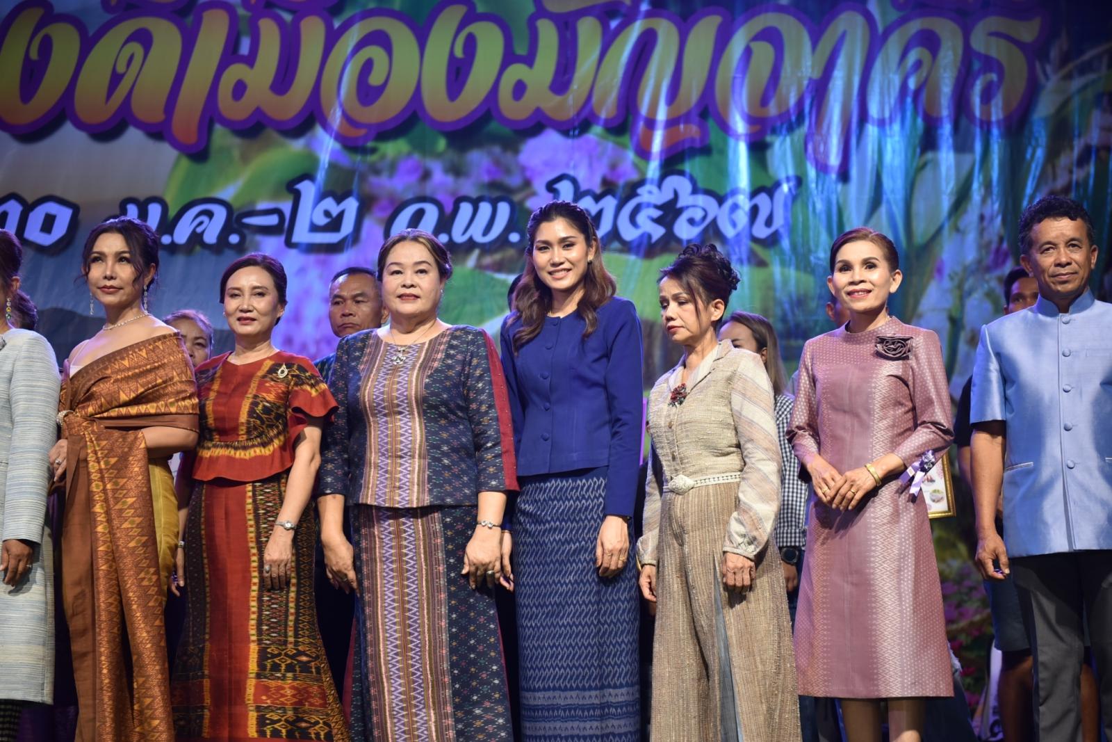 พิธีเปิดการเดินแฟชั่นผ้าไทยให้สนุก การประกวดร้องเพลงลูกทุ่ง และงานพาแลง ในงานเทศกาลกล้วยไม้บานและของดีเมืองมัญจาคีรี ประจำปี 2567