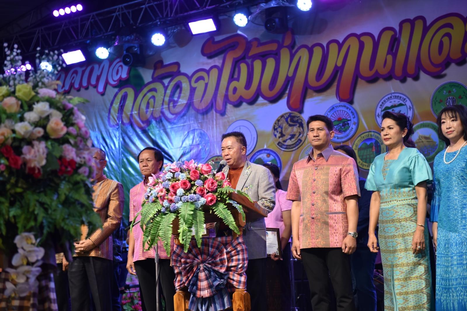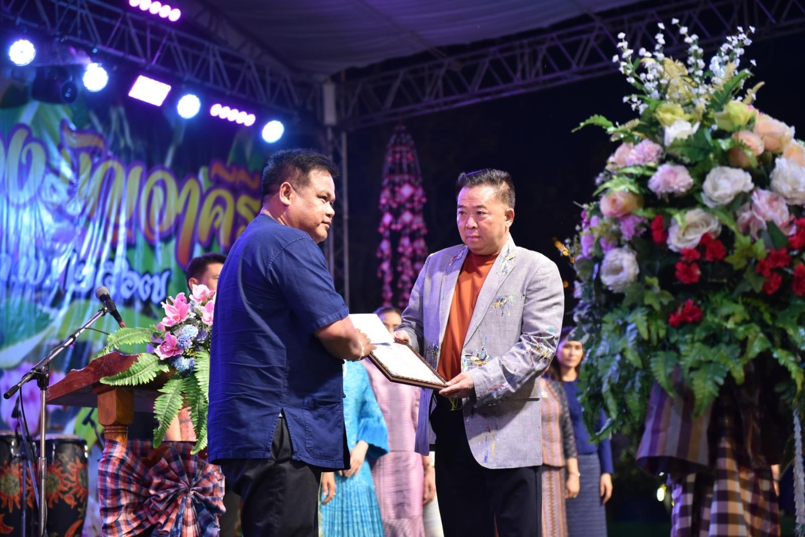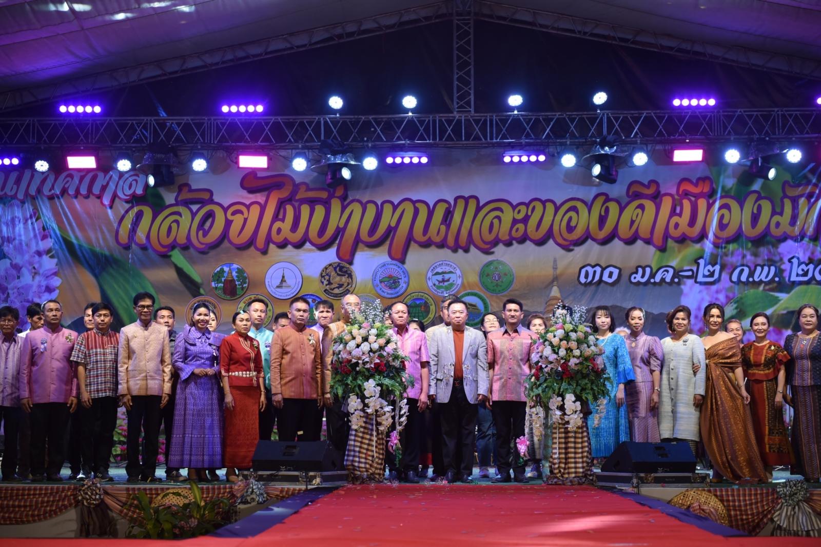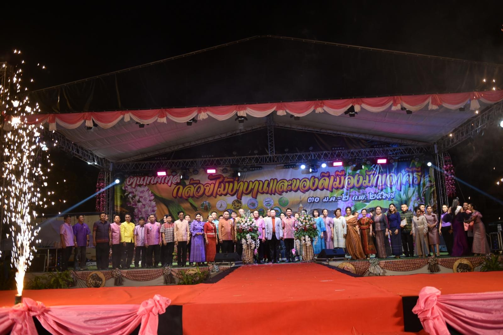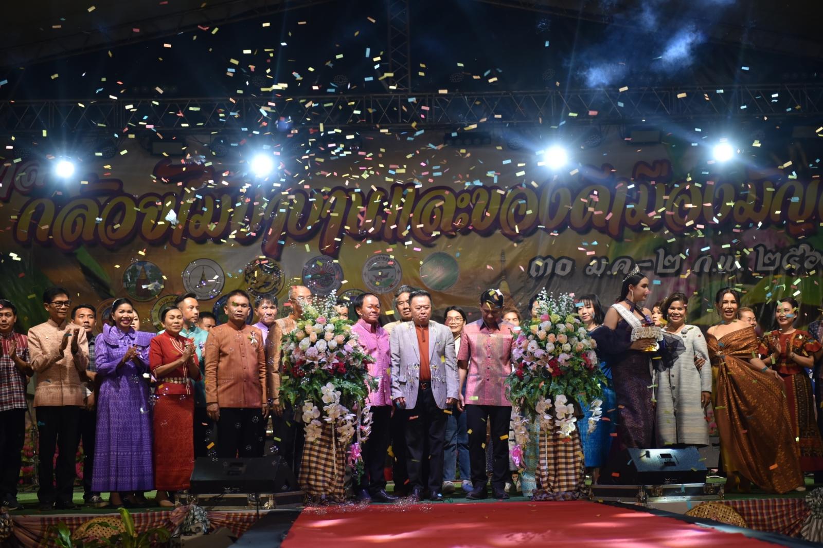 พิธีเปิดการเดินแฟชั่นผ้าไทยให้สนุก การประกวดร้องเพลงลูกทุ่ง และงานพาแลง ในงานเทศกาลกล้วยไม้บานและของดีเมืองมัญจาคีรี ประจำปี 2567