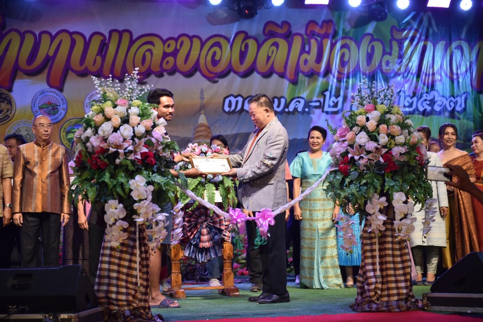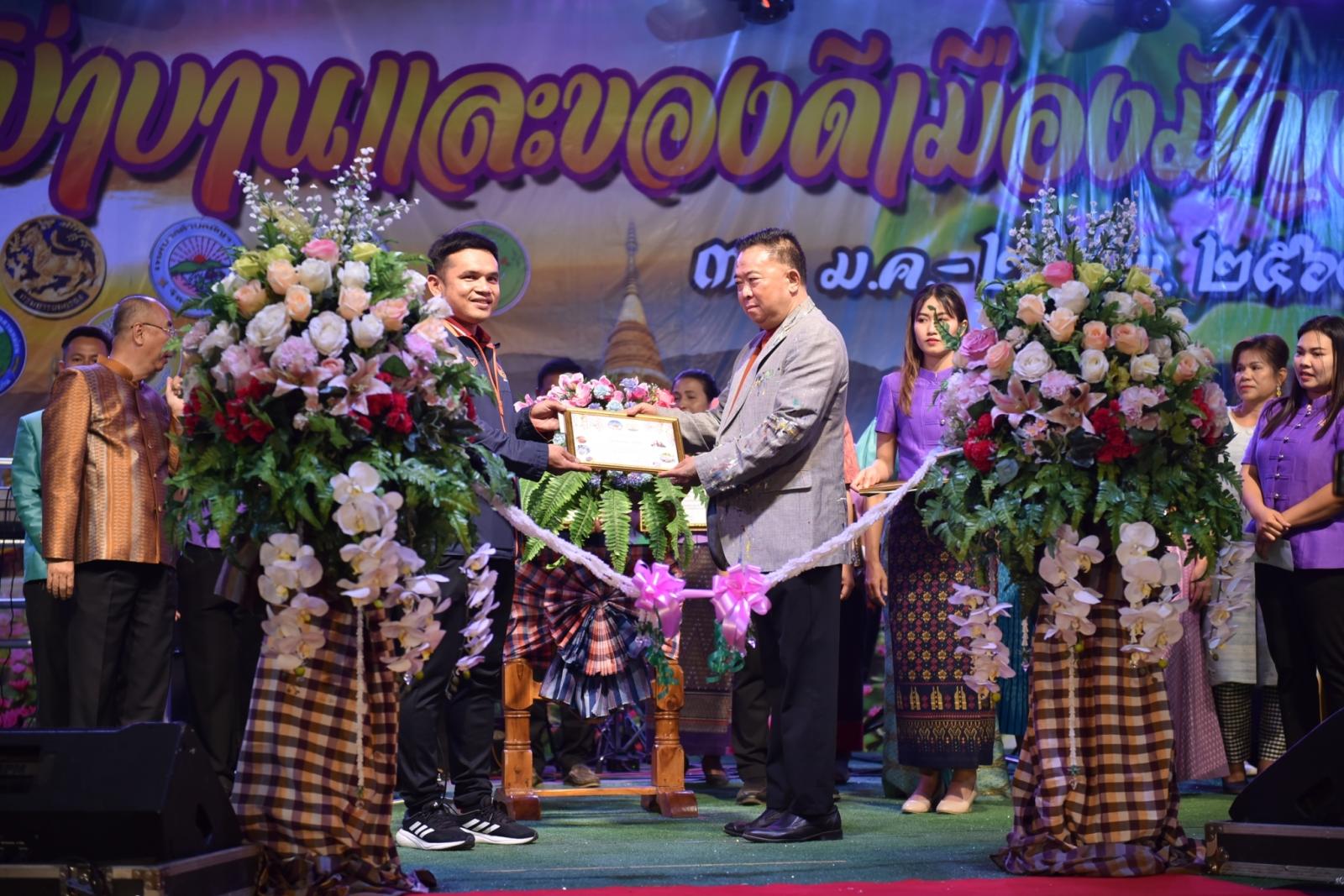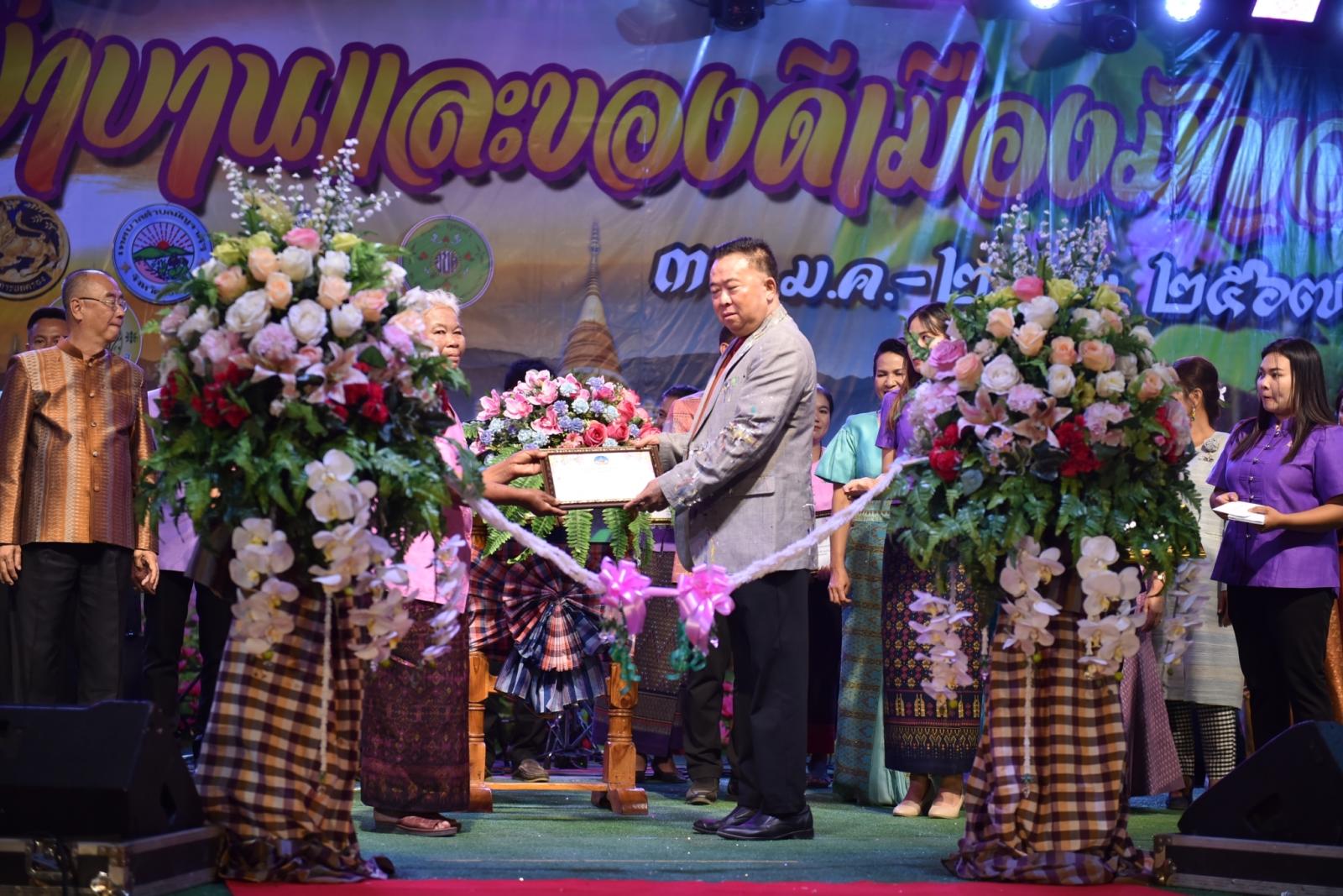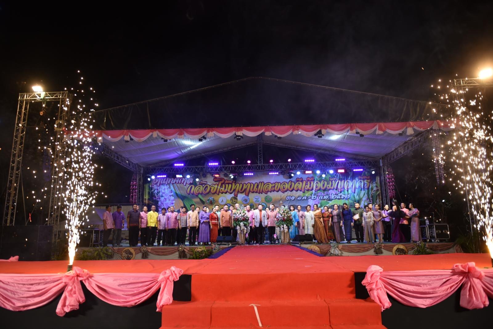 พิธีเปิดการเดินแฟชั่นผ้าไทยให้สนุก การประกวดร้องเพลงลูกทุ่ง และงานพาแลง ในงานเทศกาลกล้วยไม้บานและของดีเมืองมัญจาคีรี ประจำปี 2567