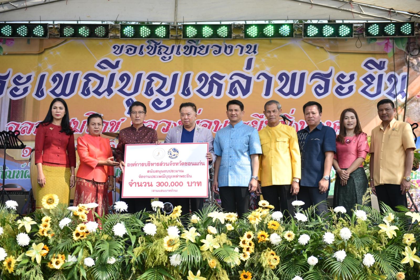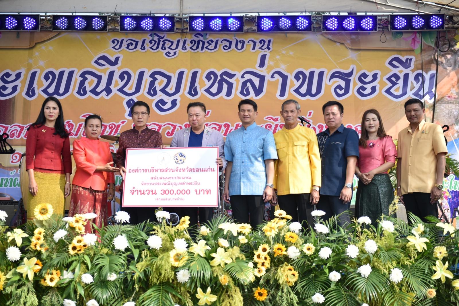 วันที่ 1 กุมภาพันธ์ 2567 เวลา 09.00 น. องค์การบริหารส่วนจังหวัดขอนแก่น นำโดย ดร.พงษ์ศักดิ์ ตั้งวานิชกพงษ์ นายกองค์การบริหารส่วนจังหวัดขอนแก่นเป็นประธานในพิธีเปิดงานประเพณีบุญเหล่าพระยืน ฉลองสมโภชบวงสรวงหลวงพ่อพระยืนมิ่งมงคล ประจำปี 2567 โดยมี นายศักดิ์ดา ต้นคชสาร นายอำเภอพระยืน กล่าวรายงาน ในโอกาสนี้มี นายสิทธิกุล ภูคำวงศ์ รองนายก อบจ.ขอนแก่น พร้อมด้วย นายสมาส นามพิกุล ส.อบจ.ขอนแก่น เขต อ.พระยืน หัวหน้าส่วนราชการ ผู้บริหารสถานศึกษา ผู้บริหารองค์กรปกครองส่วนท้องถิ่น กำนัน ผู้ใหญ่บ้าน พ่อค้า ประชาชนชาวอำเภอพระยืน ร่วมเป็นเกียรติในพิธี ณ โรงเรียนชุมชนบ้านพระยืน อ.พระยืน จ.ขอนแก่น