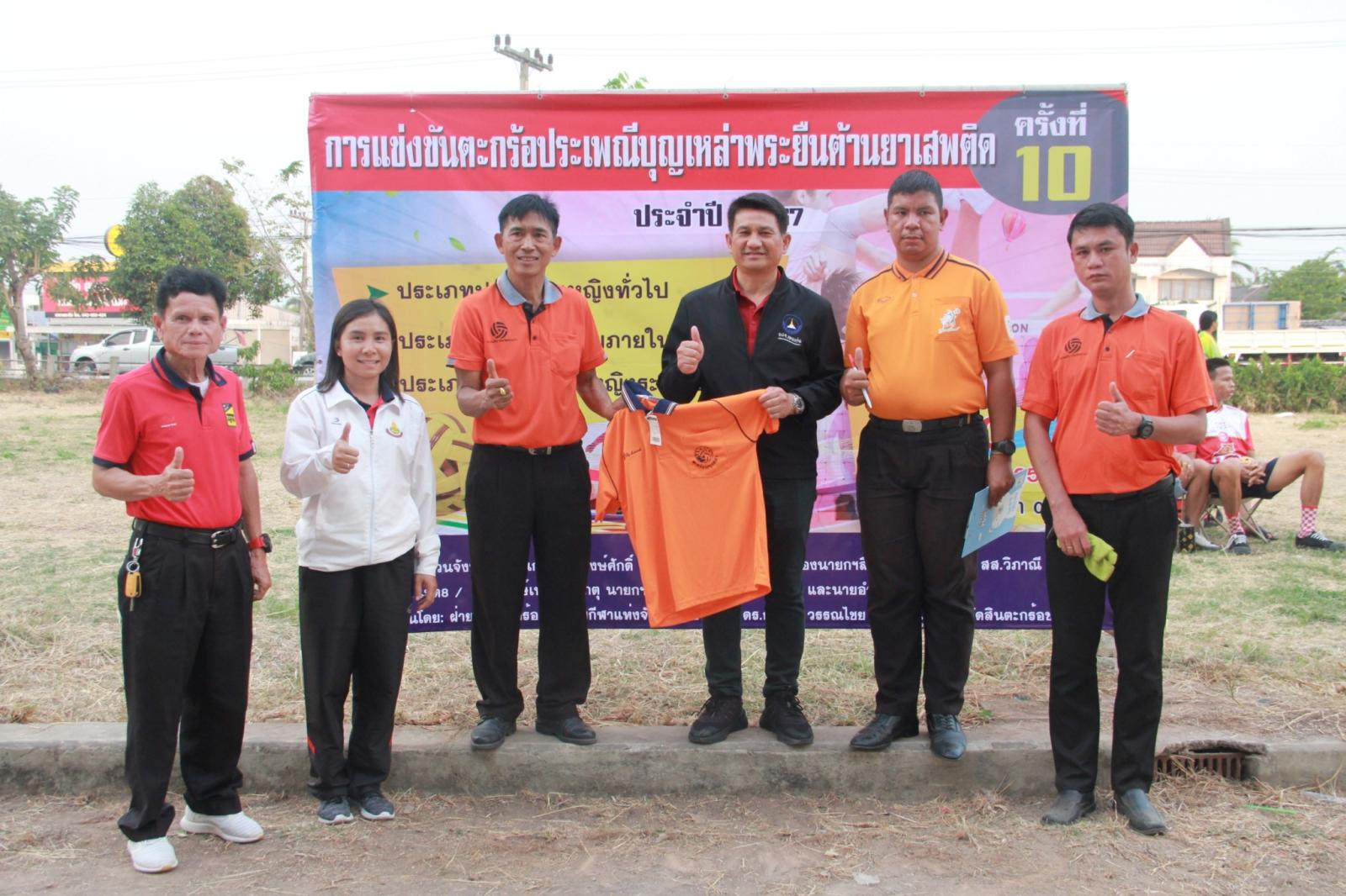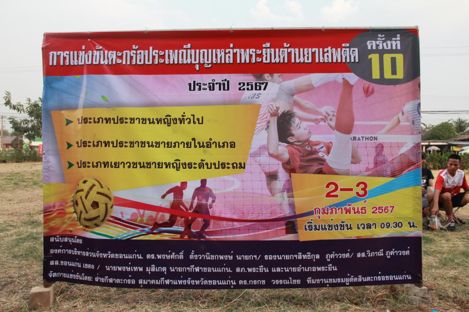 การแข่งขันตะกร้อประเพณีบุญเหล่าอำเภอพระยืนต้านยาเสพติด