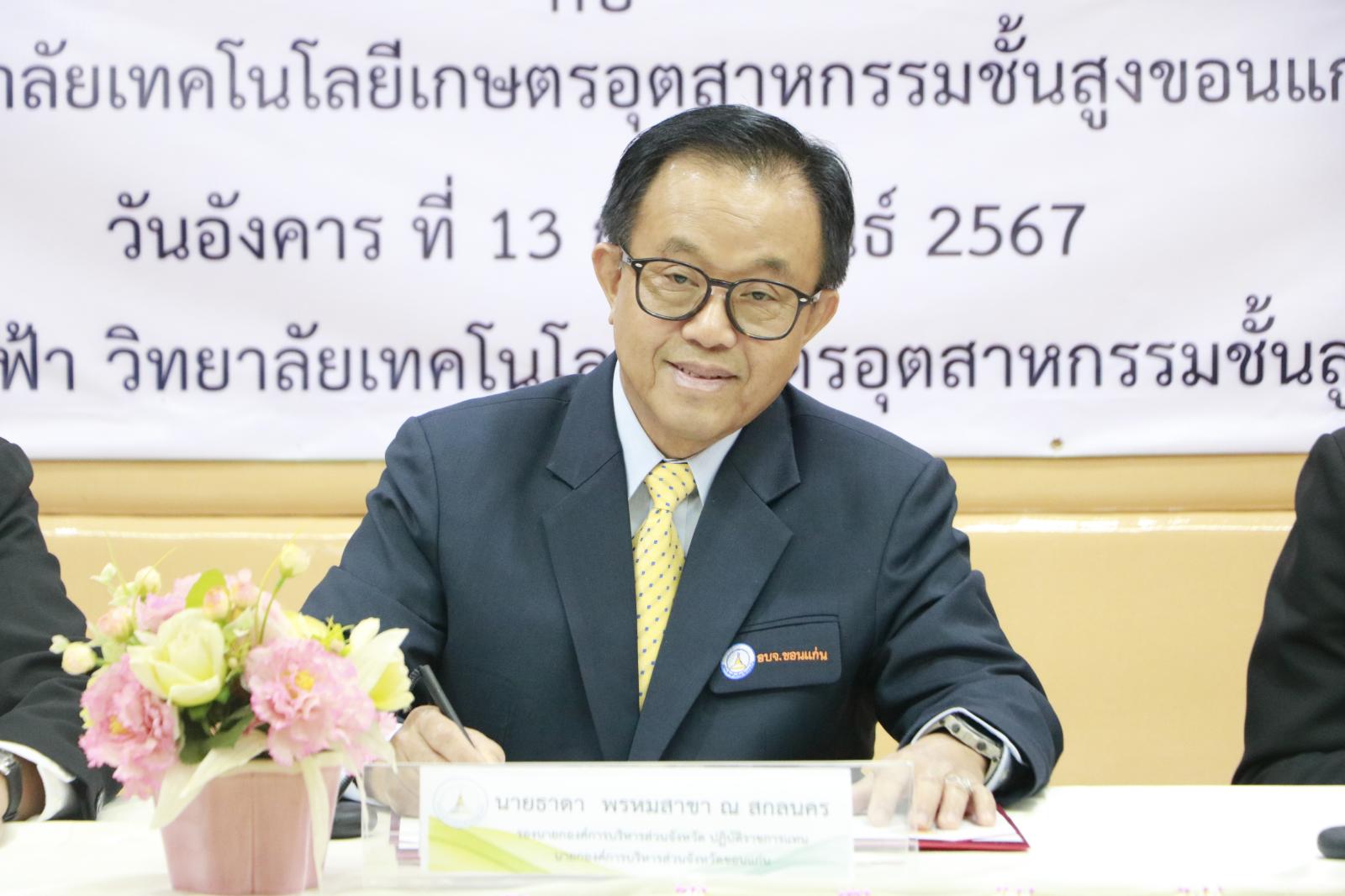 เมื่อวันที่ 13 กุมภาพันธ์ 2567 เวลา 09.30 น. องค์การบริหารส่วนจังหวัดขอนแก่น ร่วมกับ วิทยาลัยเทคโนโลยีเกษตรอุตสาหกรรมชั้นสูงขอนแก่น ดำเนินการจัดพิธีลงนามบันทึกข้อตกลงความร่วมมือทางวิชาการเพื่อสนับสนุนส่งเสริม ความร่วมมือและพัฒนาศักยภาพและสมรรถนะของบุคลากรและนักเรียน นักศึกษา ในสังกัดทั้งสองหน่วยงาน ให้มีความรู้ความสามารถมีศักยภาพตรงตามความต้องการของสถานประกอบการ และสอดคล้องกับนโยบายของรัฐบาลในการพัฒนากำลังคน ในการนี้ ดร.พงษ์ศักดิ์ ตั้งวานิชกพงษ์ นายก อบจ.ขอนแก่น มอบหมายให้ นายธาดา พรหมสาขา ณ สกลนคร รองนายก อบจ.ขอนแก่น ลงนามในบันทึกข้อตกลงความร่วมมือทางวิชาการ (MOU) ร่วมกับ นายนักรบ จันทร์สุกรี ผอ.วิทยาลัยเทคโนโลยีเกษตรอุตสาหกรรมชั้นสูงขอนแก่น ในโอกาสนี้มี นายนำศิลป์ วิเศษ ผอ.สำนักการศึกษา ศาสนาและวัฒนธรรม นายบุญจันทร์ มูลกัน ผอ.โรงเรียนสีชมพูศึกษา และ นายภัทระ ขันดงแก้ว รอง ผอ.วิทยาลัยเทคโนโลยีเกษตรอุตสาหกรรมชั้นสูงขอนแก่น ร่วมเป็นสักขีพยานในบันทึกข้อตกลง นอกจากนี้ยังมีคณะผู้บริหารขององค์การบริหารส่วนจังหวัดขอนแก่นและสถานศึกษาในสังกัดองค์การบริหารส่วนจังหวัดขอนแก่น ร่วมเป็นเกียรติในพิธีลงนามในครั้งนี้ ณ ห้องประชุมไร่ฟ้า วิทยาลัยเทคโนโลยีเกษตรอุตสาหกรรมชั้นสูงขอนแก่น อำเภอหนองเรือ จังหวัดขอนแก่น