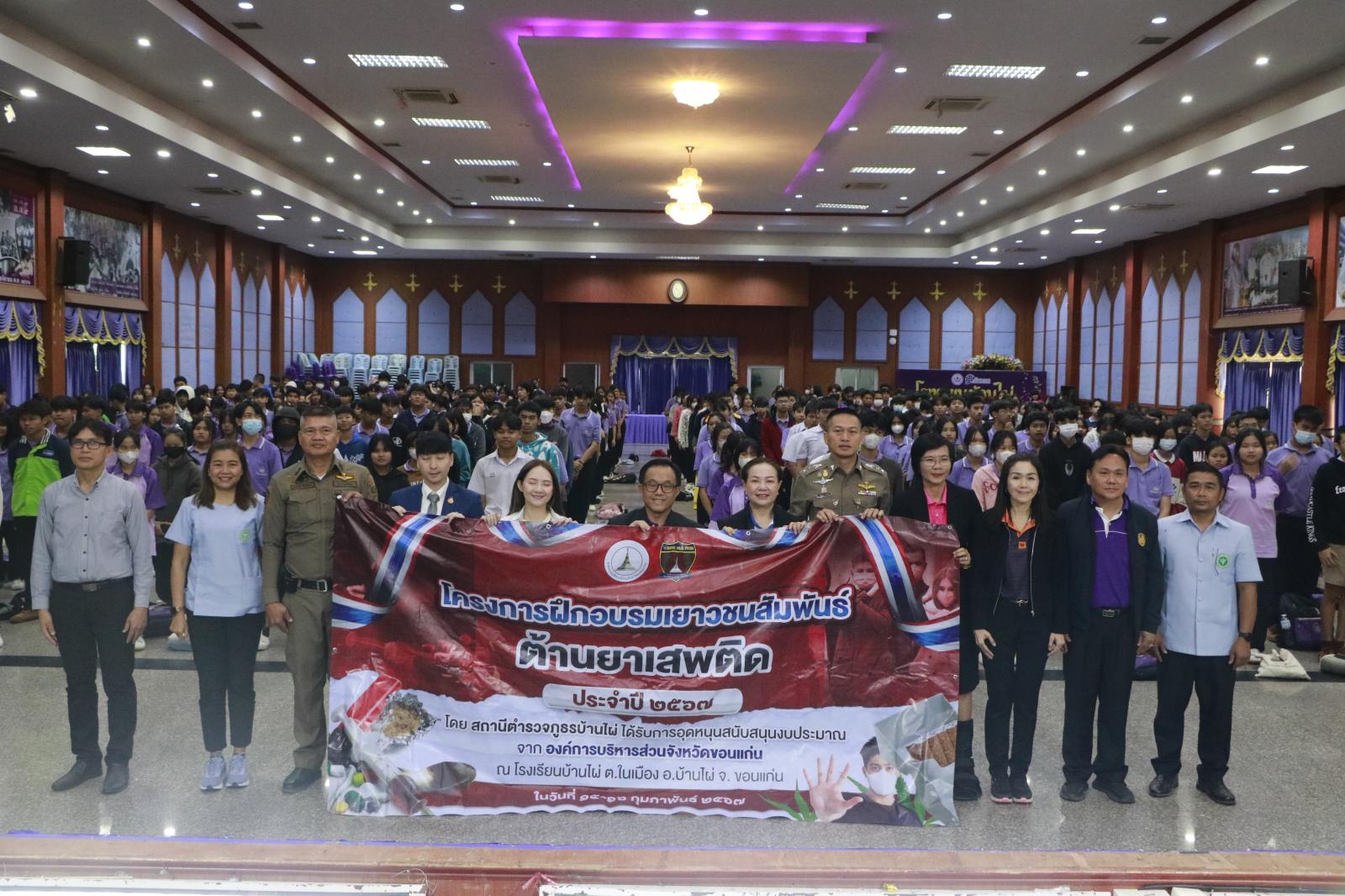 เมื่อวันที่ 15 กุมภาพันธ์ 2567 เวลา 10.00 น. ดร.พงษ์ศักดิ์ ตั้งวานิชกพงษ์ นายก อบจ.ขอนแก่น มอบหมายให้ นายธาดา พรหมสาขา ณ สกลนคร รองนายก อบจ.ขอนแก่น เป็นประธานเปิดโครงการฝึกอบรมเยาวชนสัมพันธ์ต้านยาเสพติด ประจำปี 2567 โดยมี พ.ต.ต.ประสงค์ บรรเทา สวป.(ชส) สภ.บ้านไผ่ กล่าวรายงาน ในโอกาสนี้มี พ.ต.อ.ปรัชญามาศ ไชยสระ ผกก.สภ.บ้านไผ่, นางกฤษณา ศิริพรรณ ส.อบจ.ขอนแก่น อ.บ้านไผ่ เขต 1 นางสาวสุธิดา อุ่นสนธิ์ หัวหน้าฝ่ายอำนวยการ สำนักปลัด อบจ.ขอนแก่น ผู้บริหาร คณาจารย์ โรงเรียนบ้านไผ่ (ขก.5) เข้าร่วมเป็นเกียรติในพิธี ณ หอประชุมโรงเรียนบ้านไผ่ (ขก.5) อ.บ้านไผ่ จ.ขอนแก่น