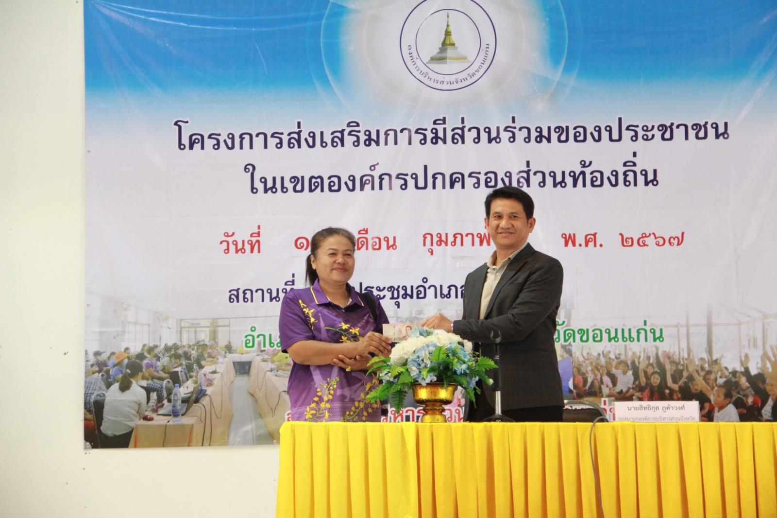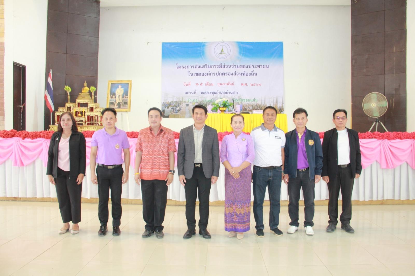 ในวันที่ 15 กุมภาพันธ์ 2567 เวลา 11.00 น.องค์การบริหารส่วนจังหวัดขอนแก่น นำโดย ดร.พงษ์ศักดิ์ ตั้งวานิชกพงษ์ นายก อบจ.ขอนแก่น มอบหมายให้ นายสิทธิกุล ภูคำวงศ์ รอง นายก อบจ.ขอนแก่น เป็นประธานเปิดโครงการส่งเสริมการมีส่วนร่วมของประชาชนในเขตองค์กรปกครองส่วนท้องถิ่น อ.บ้านฝาง จำนวน 400 คน ในโอกาสนี้มีนายกานต์ ทองเสน นายอำเภอบ้านฝาง, นางปรียานุช ศรีภักดี ส.อบจ.ขอนแก่น เขต อ.บ้านฝาง, นายเพ็ชร มูลป้อม ที่ปรึกษานายก อบจ.ขอนแก่น พร้อมด้วย คณะผู้บริหาร หัวหน้าส่วนราชการ เจ้าหน้าที่ อบจ.ขอนแก่น ร่วมเป็นเกียรติในพิธี ณ หอประชุมที่ว่าการอำเภอบ้านฝาง จังหวัดขอนแก่น