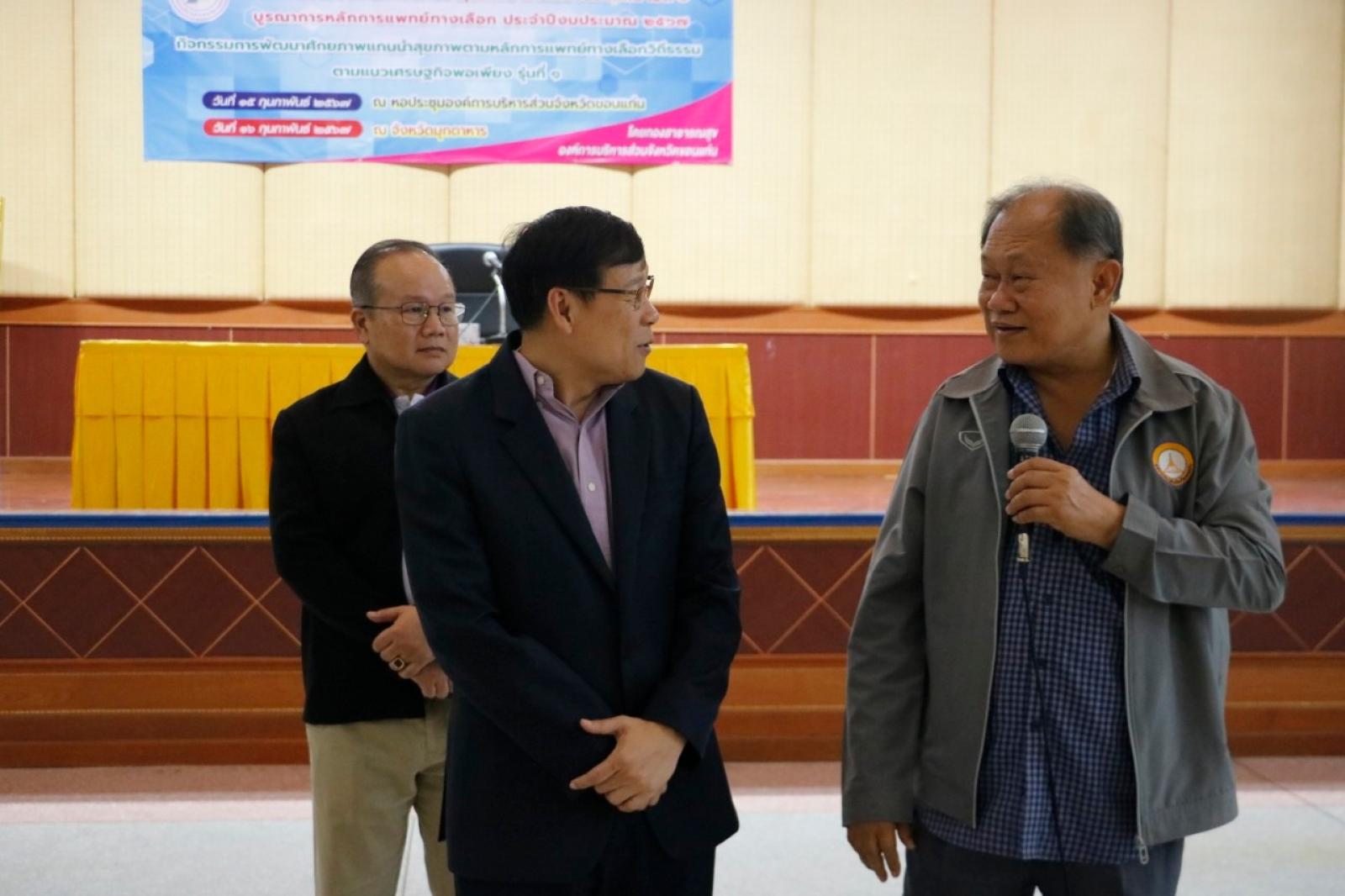 เมื่อวันที่ 15 กุมภาพันธ์ 2567 เวลา 11.30 น. องค์การบริหารส่วนจังหวัดขอนแก่น นำโดย ดร.พงษ์ศักดิ์ ตั้งวานิชกพงษ์ นายกองค์การบริหารส่วนจังหวัดขอนแก่น ได้มอบหมายให้ นายประสิทธิ์ ทองแท่งไทย รองนายกองค์การบริหารส่วนจังหวัดขอนแก่น เป็นประธานในพิธีเปิดโครงการฝึกอบรมและศึกษาดูงานด้านการส่งเสริมสุขภาพและป้องกันโรค เพื่อการพัฒนาศักยภาพแกนนำสุขภาพอำเภอเมืองขอนแก่น เขต 2 บูรณาการหลักการแพทย์ทางเลือก ประจำปีงบประมาณ 2567 รุ่นที่ 1 โดยมี นาย ยศพนธ์ แก่นจันทร์ รักษาการหัวหน้าฝ่ายป้องกันควบคุมโรค กองสาธารณสุข กล่าวรายงาน ในโอกาสนี้ได้รับเกียรติจาก นายวุฒิพร ศรีมังกรแก้ว ส. อบจ.ขอนแก่น อำเภอเมืองเขต 2 พร้อมด้วยหัวหน้าส่วนราชการ ,ประชาชนชาวจังหวัดขอนแก่น อ.เมือง เขต2 เข้าร่วมพิธี ณ หอประชุมอบจ.ขอนแก่น