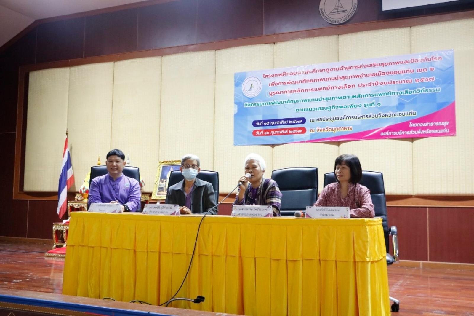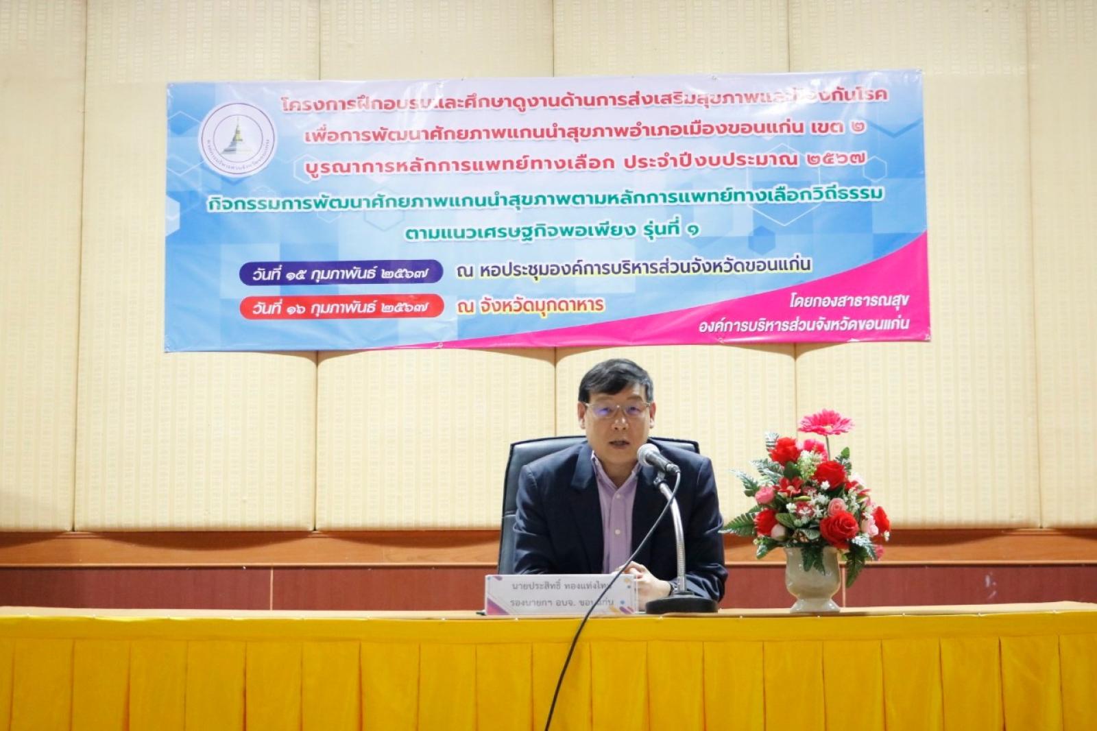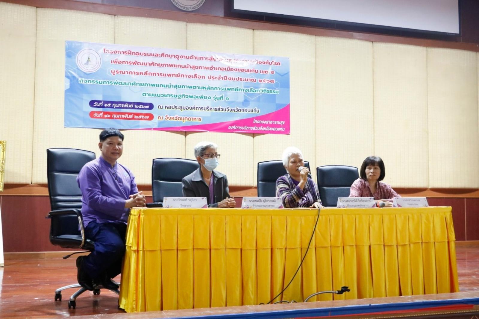 โครงการฝึกอบรมและศึกษาดูงานด้านการส่งเสริมสุขภาพและป้องกันโรค เพื่อการพัฒนาศักยภาพแกนนำสุขภาพอำเภอเมืองขอนแก่น เขต 2 บูรณาการหลักการแพทย์ทางเลือก ประจำปีงบประมาณ 2567 รุ่นที่ 1