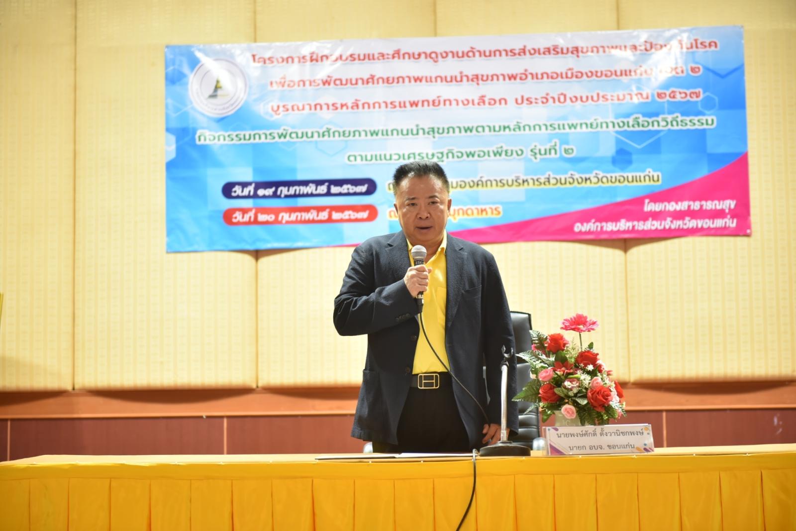 วันที่ 19 กุมภาพันธ์ 2567 เวลา 11.30 น. องค์การบริหารส่วนจังหวัดขอนแก่น นำโดย ดร.พงษ์ศักดิ์ ตั้งวานิชกพงษ์ นายกองค์การบริหารส่วนจังหวัดขอนแก่น เป็นประธานเปิดโครงการฝึกอบรมและศึกษาดูงานด้านการส่งเสริมสุขภาพและป้องกันโรค เพื่อการพัฒนาศักยภาพแกนนำสุขภาพ อำเภอเมืองขอนแก่น เขต 2 บูรณาการหลักการแพทย์ทางเลือก ประจำปีงบประมาณ 2567 โดยมี น.ส.นิศากร ดอนกระสินธุ์ ผู้อำนวยการกองสาธารณสุข กล่าวรายงาน ในโอกาสนี้มี นายวุฒิพร ศรีมังกรแก้ว ส.อบจ.ขอนแก่น อ.เมือง เขต 2 ร่วมเป็นเกียรติในพิธี ณ หอประชุมองค์การบริหารส่วนจังหวัดขอนแก่น