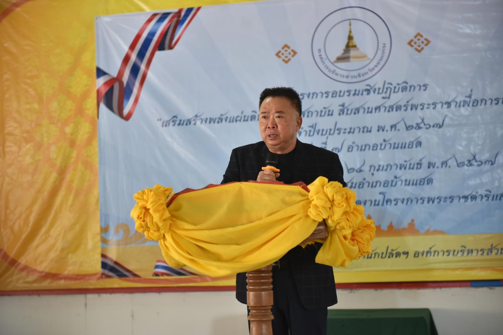 วันที่ 22 กุมภาพันธ์ 2567 เวลา 09.30 น. องค์การบริหารส่วนจังหวัดขอนแก่นนำโดย ดร.พงษ์ศักดิ์ ตั้งวานิชกพงษ์ นายกองค์การบริหารส่วนจังหวัดขอนแก่น เป็นประธานเปิดโครงการอบรมเชิงปฏิบัติการ"เสริมสร้างพลังแผ่นดินปกป้องสถาบัน สืบสานศาสตร์พระราชาเพื่อการพัฒนาที่ยั่งยืน " ประจำปีงบประมาณ พ.ศ.2567 รุ่นที่7 (อำเภอบ้านแฮด) โดยมี นางสาวศิริวรรณ สุรินทะ หัวหน้าสำนักปลัด อบจ.ขอนแก่น กล่าวรายงาน ในโอกาสนี้มี นางนริศรา อรุณเดชาชัย ส.อบจ.ขอนแก่น เขต อ.บ้านแฮด พร้อมด้วย คณะผู้นำท้องถิ่น ผู้นำท้องที่ ร่วมเป็นเกียรติในพิธี ณ หอประชุมอำเภอบ้านแฮด จังหวัดขอนแก่น