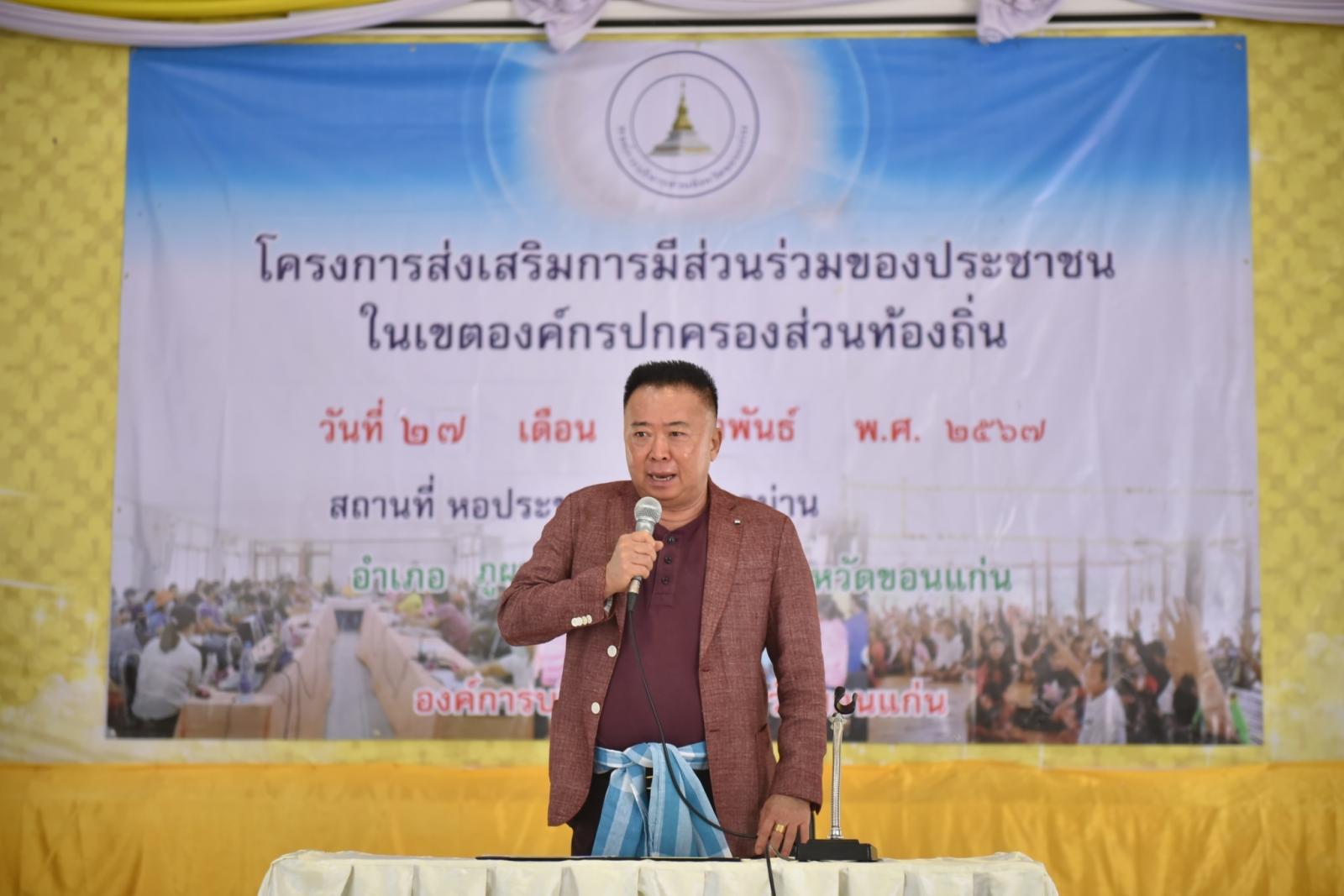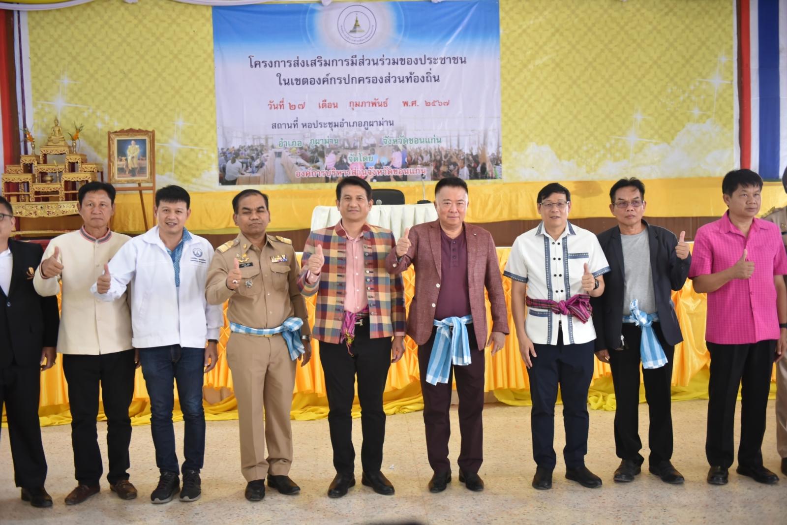 วันที่ 27 กุมภาพันธ์ 2567 เวลา 10.00 น. องค์การบริหารส่วนจังหวัดขอนแก่น นำโดย ดร.พงษ์ศักดิ์ ตั้งวานิชกพงษ์ นายกองค์การบริหารส่วนจังหวัดขอนแก่น เป็นประธานเปิดโครงการส่งเสริมการมีส่วนร่วมของประชาชนในเขตองค์กรปกครองส่วนท้องถิ่น อ.ภูผาม่าน จำนวน 300 คน โอกาสนี้มี นายสิทธิกุล ภูคำวงศ์ , นายประสิทธิ์ ทองแท่งไทย รอง นายก อบจ.ขอนแก่น, นายเพ็ชร มูลป้อม ที่ปรึกษานายก อบจ.ขอนแก่น พร้อมด้วย นายปรัชญา ทองแท่งไทย ส.อบจ.ขอนแก่น อ.ภูผาม่าน ผู้นำท้องที่ ผู้นำท้องถิ่น และคณะผู้บริหาร หัวหน้าส่วนราชการ เจ้าหน้าที่ อบจ.ขอนแก่น ร่วมเป็นเกียรติในพิธี ณ หอประชุมอำเภอภูผาม่าน จังหวัดขอนแก่น