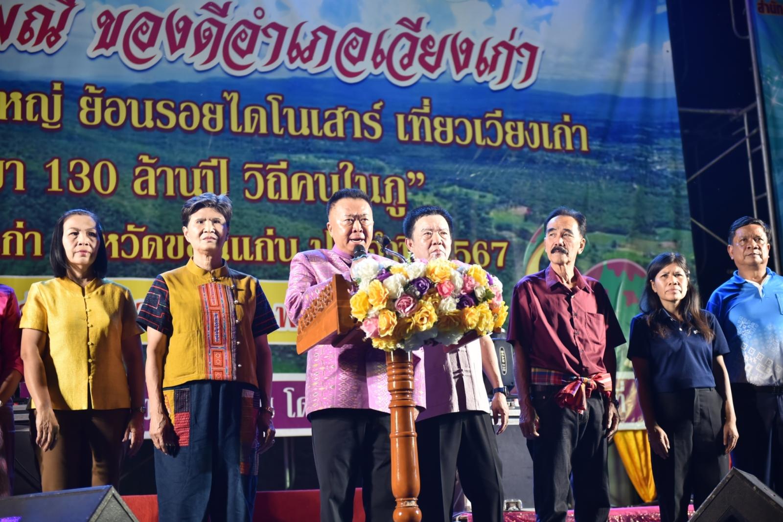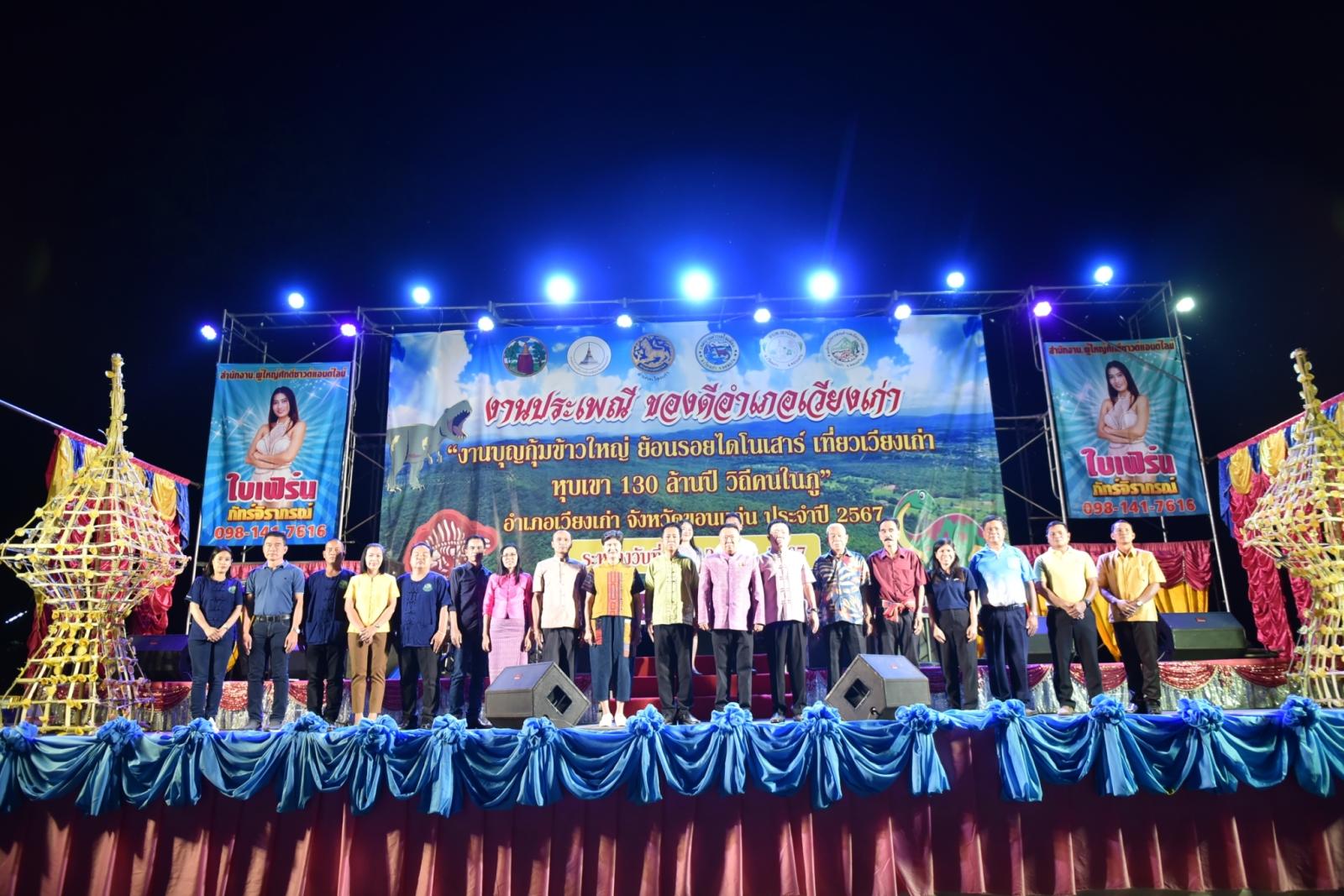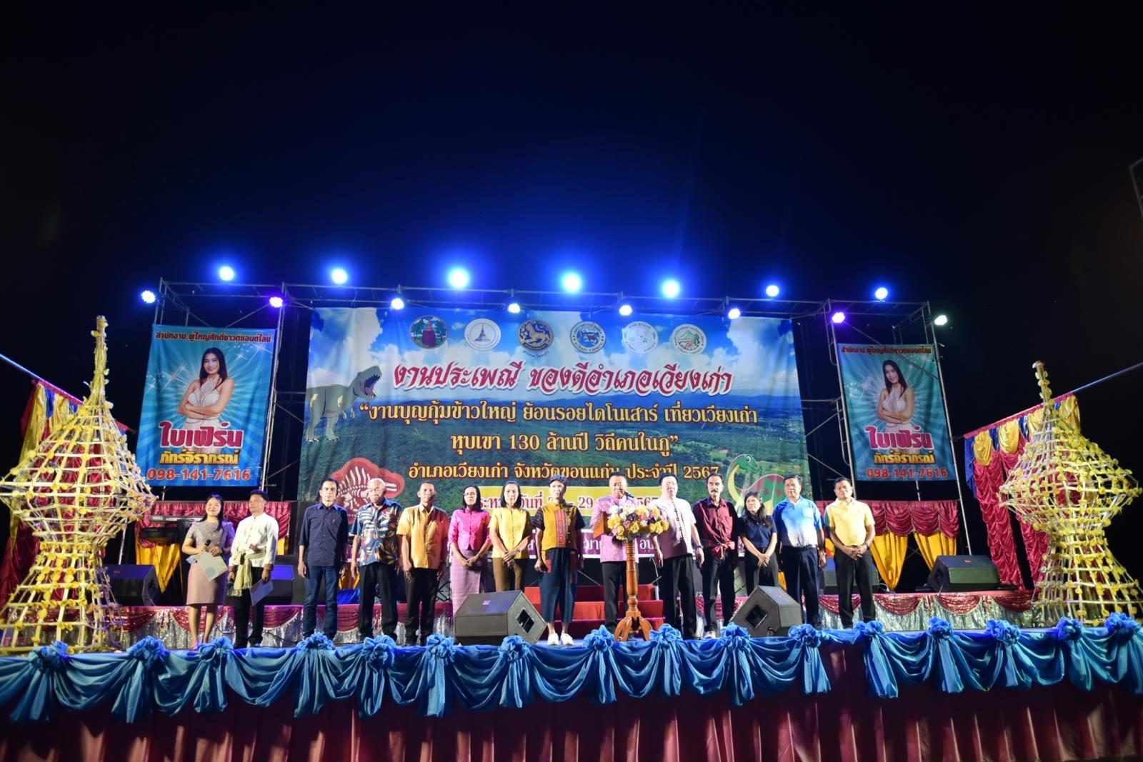วันที่ 28 กุมภาพันธ์ 2567 เวลา 19.00 น. องค์การบริหารส่วนจังหวัดขอนแก่น นำโดย ดร.พงษ์ศักดิ์ ตั้งวานิชกพงษ์ นายกองค์การบริหารส่วนจังหวัดขอนแก่นได้รับเกียรติ เป็นประธานเปิดงานพาแลง ในงาน"ประเพณีงานของดีอำเภอเวียงเก่า งานบุญกุ้มข้าวใหญ่ ย้อนรอยไดโนเสาร์ เที่ยวเวียงเก่าหุบเขา 130 ปี วิถีคนในภู" ประจำปี 2567 โดยมี นายธนชาติ บริสุทธิ์ นายอำเภอเวียงเก่า กล่าวรายงาน ในโอกาสนี้มี นางวิภา เรืองประเสริฐกุล ส.อบจ.ขอนแก่น เขต อ.ภูเวียง , นายวิบูลย์ เรืองประเสริฐกุล ส.อบจ.ขอนแก่น เขต อ.เวียงเก่า , นายประชิต อึ้งประเสริฐ ผู้อำนวยการกองการท่องเที่ยวและกีฬา พร้อมด้วยคณะผู้นำท้องถิ่น ผู้นำท้องที่ ชาวอำเภอเวียงเก่า ร่วมเป็นเกียรติในพิธี ณ เวทีกลางสนามหน้าที่ว่าการอำเภอเวียงเก่า จังหวัดขอนแก่น