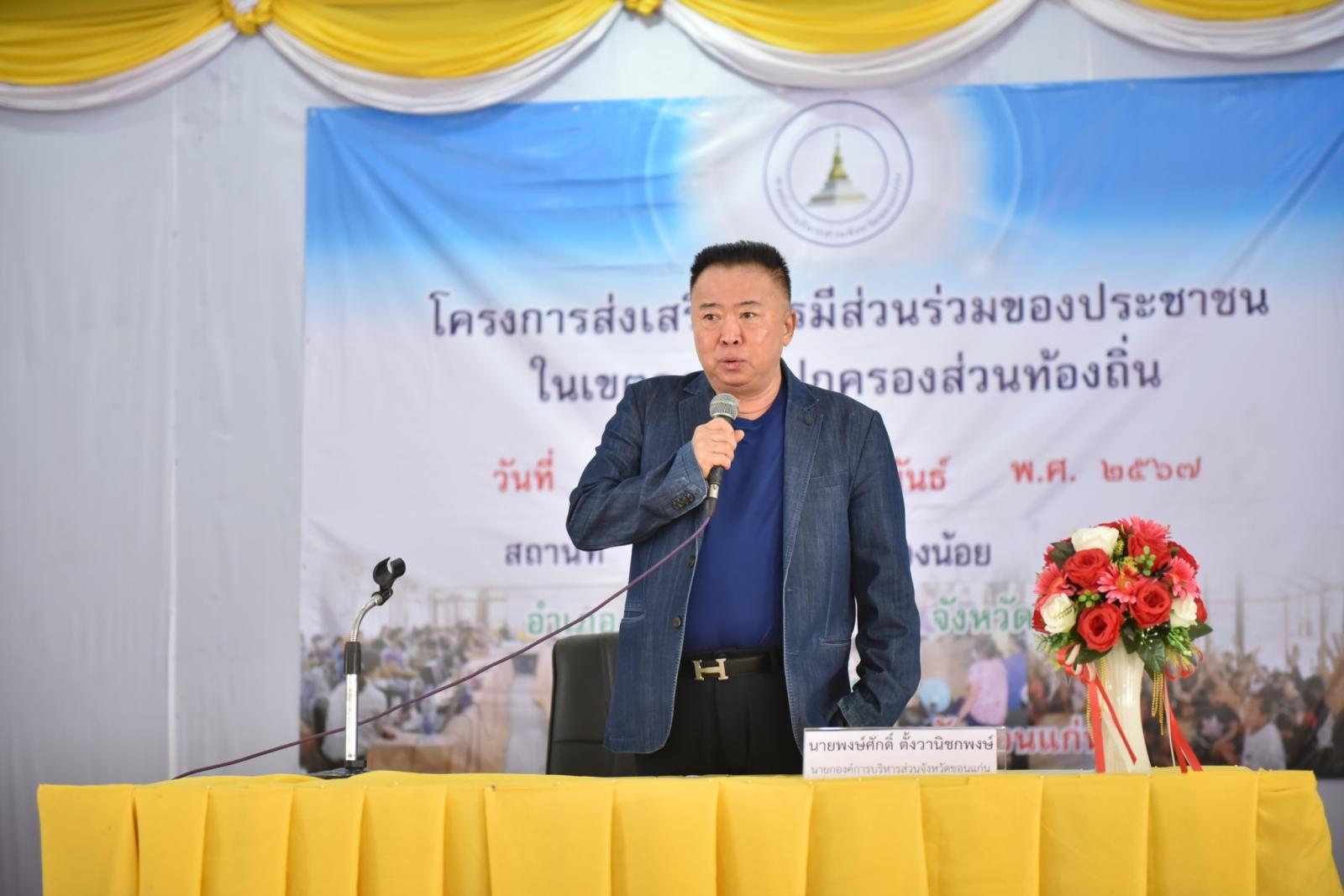 วันที่ 5 มีนาคม 2567 เวลา 11.00 น. องค์การบริหารรส่วนจังหวัดขอนแก่น นำโดย ดร.พงษ์ศักดิ์ ตั้งวานิชกพงษ์ นายกองค์การบริหารส่วนจังหวัดขอนแก่น เป็นประธานเปิดโครงการส่งเสริมการมีส่วนร่วมของประชาชนในเขตองค์กรปกครองส่วนท้องถิ่น อ.หนองเรือ จำนวน 400 คน ในโอกาสนี้มี นายสิทธิกุล ภูคำวงศ์ รองนายก อบจ.ขอนแก่น, นายประสิทธิ์ ทองแท่งไทย รองนายก อบจ.ขอนแก่น พร้อมด้วย นายเพ็ชร มูลป้อม ที่ปรึกษานายก อบจ.ขอนแก่น, นายทวิช พิมพะ นายอำเภอหนองเรือ, นายรัชเดช เตาะเจริญสุข ส.อบจ.ขอนแก่น อ.หนองเรือ เขต 1} นายภูริทัต เตาะเจริญสุข ส.อบจ.ขอนแก่น อ.หนองเรือ เขต 2, ผู้นำท้องที่, ผู้นำท้องถิ่น, ผอ.รพ.สต.ในเขต อ.หนองเรือ, เจ้าหน้าที่ อบจ.ขอนแก่น ร่วมเป็นเกียรติในพิธี ณ หอประชุมที่ว่าการอำเภอหนองเรือ อ.หนองเรือ จ.ขอนแก่น