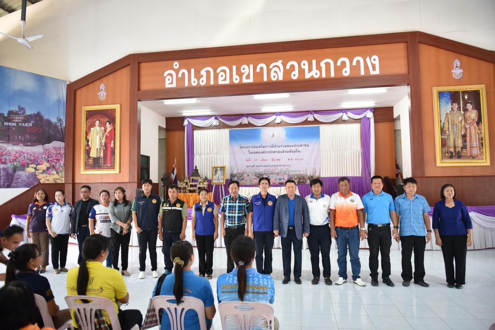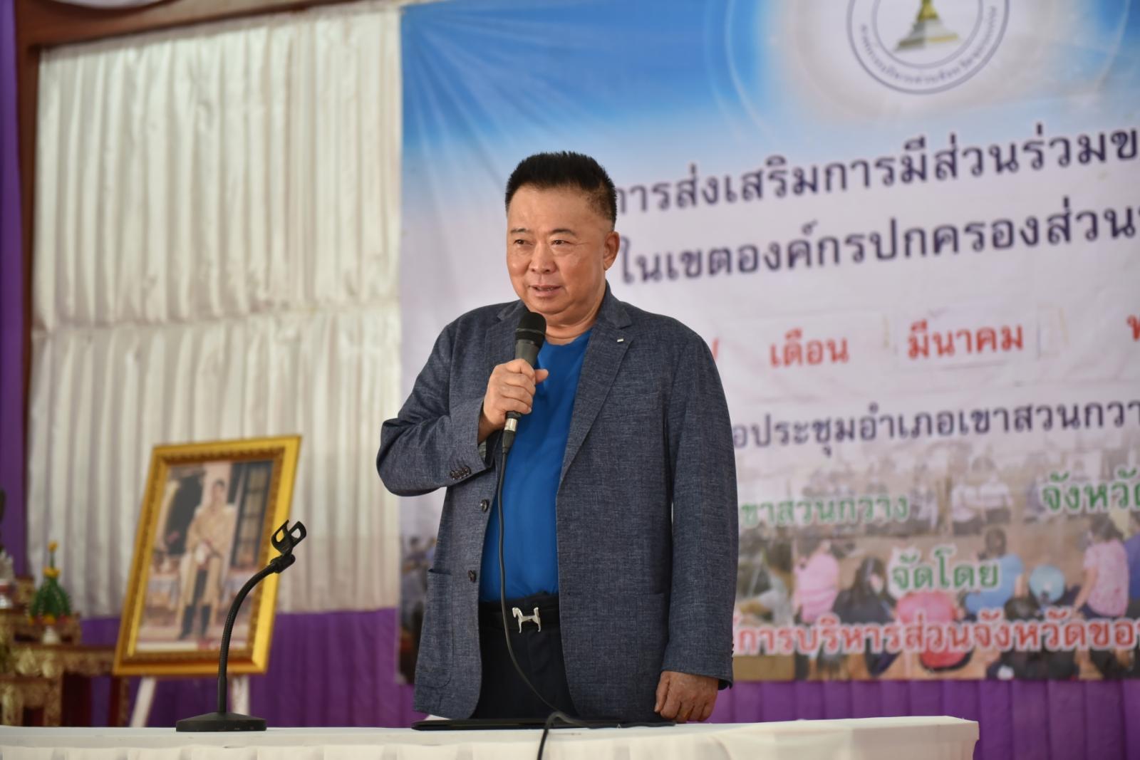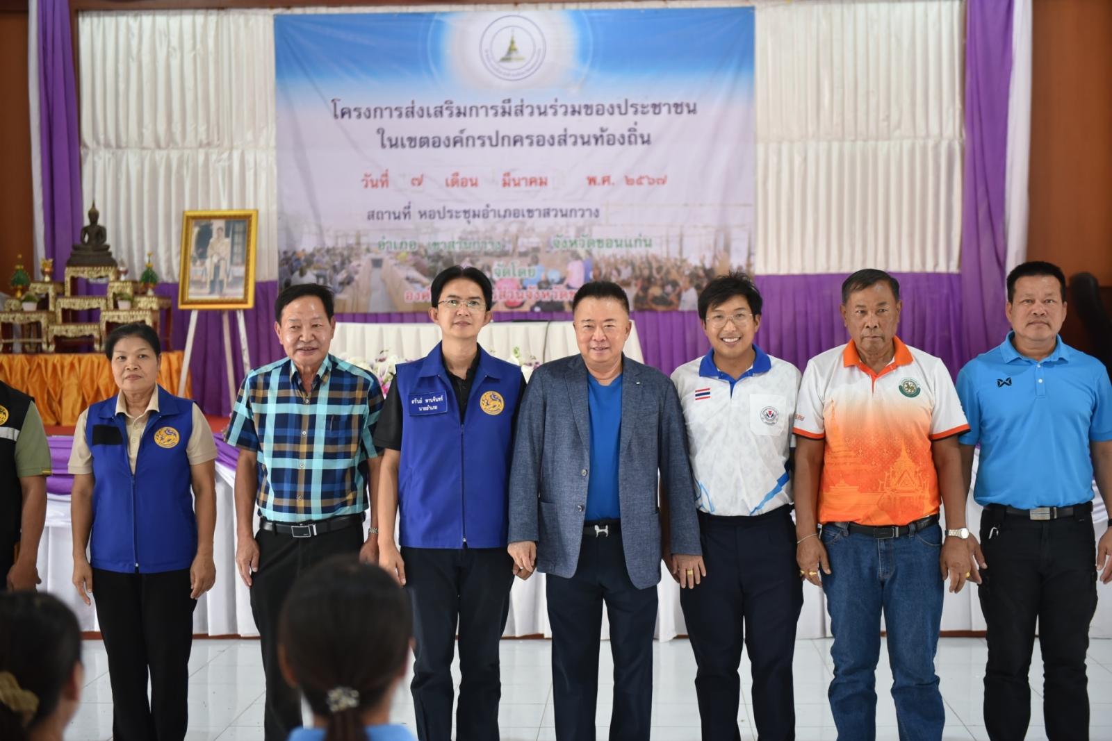 วันที่ 7 มีนาคม เวลา 10.00 น. องค์การบริหารส่วนจังหวัดขอนแก่น นำโดย ดร.พงษ์ศักดิ์ ตั้งวานิชกพงษ์ นายกองค์การบริหารส่วนจังหวัดขอนแก่น เป็นประธานเปิดโครงการส่งเสริมการมีส่วนร่วมของประชาชนในเขตองค์กรปกครองส่วนท้องถิ่น อ.เขาสวนกวางจำนวน 400 คน ในโอกาสนี้มี นายเพ็ชร มูลป้อม ที่ปรึกษานายก อบจ.ขอนแก่น นายธนะวัฒน์ เต็มธนกิจไพศาล ส.อบจ.ขอนแก่น เขต อ.เขาสวนกวาง พร้อมด้วย นายสรันย์ พานจันทร์ นายอำเภอเขาสวนกวาง และ คณะผู้นำท้องที่, ผู้นำท้องถิ่น, เจ้าหน้าที่ อบจ.ขอนแก่น ร่วมเป็นเกียรติในพิธี ณ หอประชุมที่ว่าการอำเภอเขาสวนกวาง จังหวัดขอนแก่น