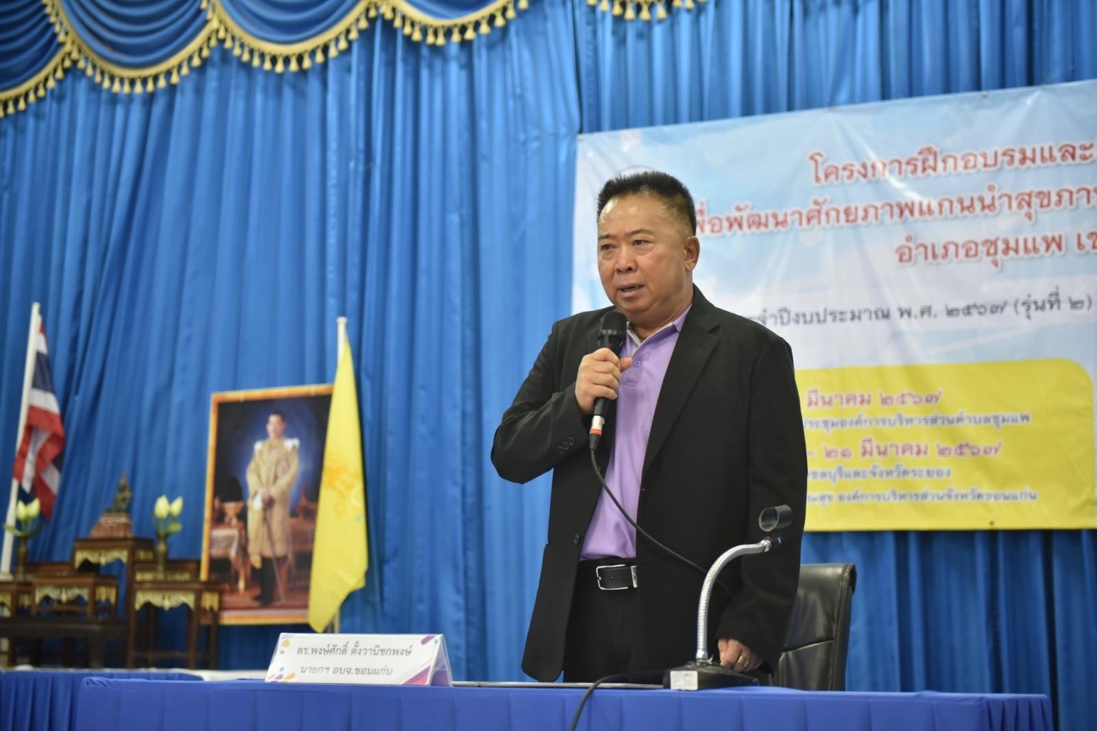 วันที่ 19 มีนาคม 2567 เวลา 13.30 น. องค์การบริหารส่วนจังหวัดขอนแก่น นำโดย ดร.พงษ์ศักดิ์ ตั้งวานิชกพงษ์ นายกองค์การบริหารส่วนจังหวัดขอนแก่นเป็นประธานเปิดโครงการฝึกอบรมและศึกษาดูงานเพื่อพัฒนาศักยภาพแกนนำสุขภาพด้านการดูแลผู้สูงอายุ อำเภอชุมแพ เขต1 รุ่นที่2 ประจำปีงบประมาณ 2567 โดยมี น.ส.นิศากร ดอนกระสินธุ์ ผู้อำนวยการกองสาธารณสุข กล่าวรายงาน ในโอกาสนี้มี นายนิรุตติ์ ปานนาค ส.อบจ.ขอนแก่น อ.ชุมแพ เขต 1 พร้อมด้วย คณะผู้บริหาร เจ้าหน้าที่ รพ.สต.ในพื้นที่ ร่วมเป็นเกียรติในพิธี ณ หอประชุมองค์การบริหารส่วนตำบลชุมแพ อ.ชุมแพ จ.ขอนแก่น
