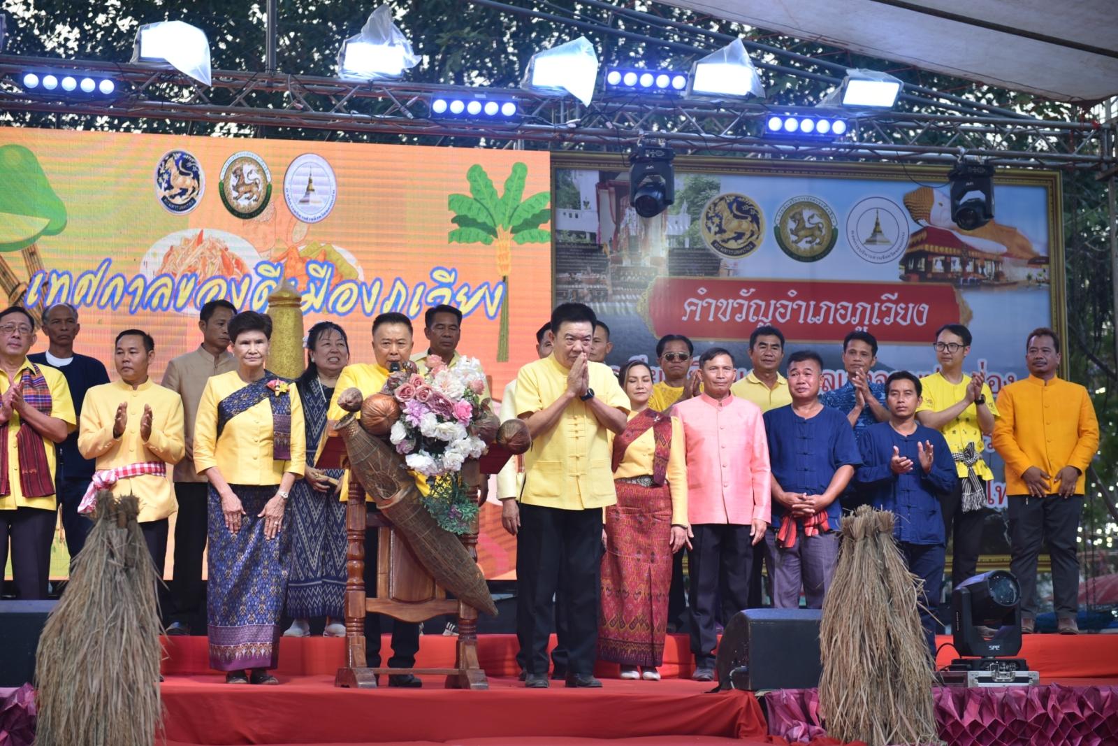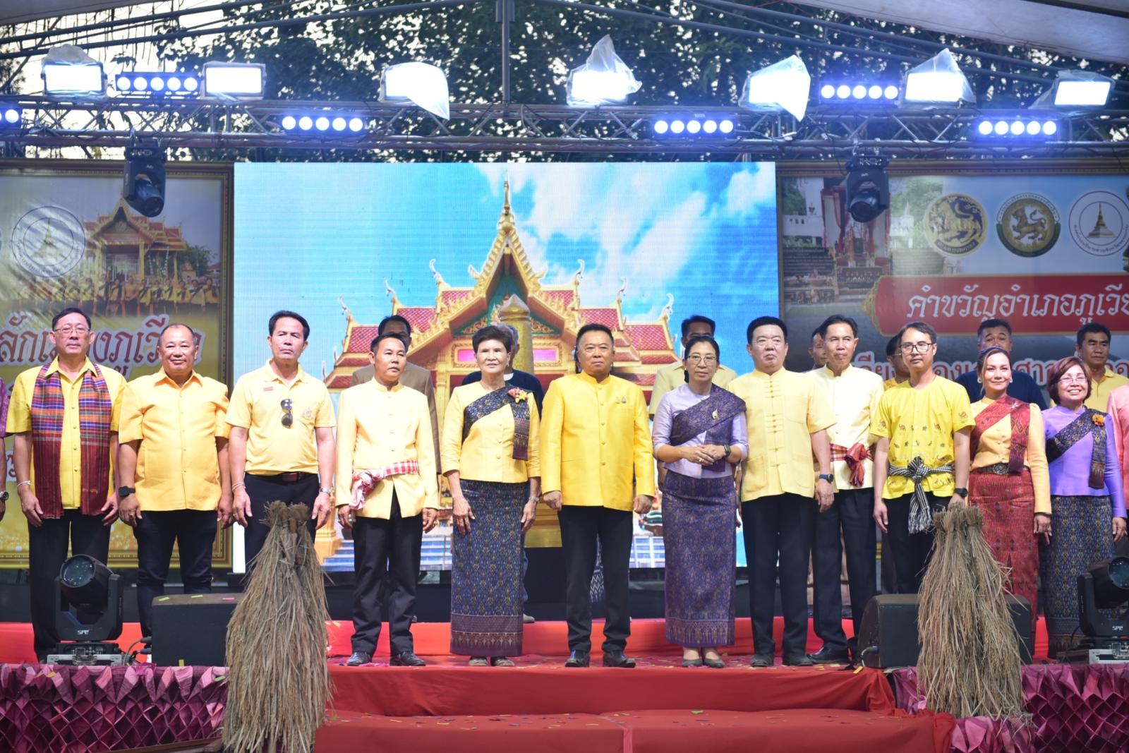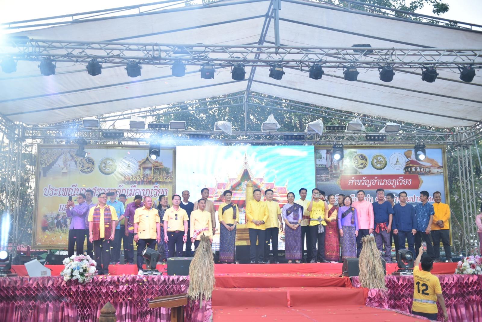 วันที่ 24 มีนาคม 2567 เวลา 17.30 น. องค์การบริหารส่วนจังหวัดขอนแก่น นำโดย ดร.พงษ์ศักดิ์ ตั้งวานิชกพงษ์ นายกองค์การบริหารส่วนจังหวัดขอนแก่น ได้รับเกียรติเป็นประธานในงานประเพณีบวงสรวงหลักเมืองภูเวียงและเทศกาลของดีเมืองภูเวียงพร้อมมอบเกียรติบัตร โดยมี นางสุวรรณา วรรณศรี นายอำเภอภูเวียงกล่าวรายงาน ในโอกาสนี้มี นางวิภา เรืองประเสริฐกุล ส.อบจ.ขอนแก่น เขต อ.ภูเวียง, นายวิบูลย์ เรืองประเสริฐกุล ส.อบจ.ขอนแก่น เขต อ.เวียงเก่า พร้อมด้วย คณะผู้บริหารองค์กรปกครองส่วนท้องถิ่น กำนัน ผู้ใหญ่บ้าน พ่อค้า แม่ค้า ประชาชนชาวอำเภอภูเวียง ร่วมเป็นเกียรติในพิธี ณ ที่ว่าการอำเภอภูเวียง จังหวัดขอนแก่น