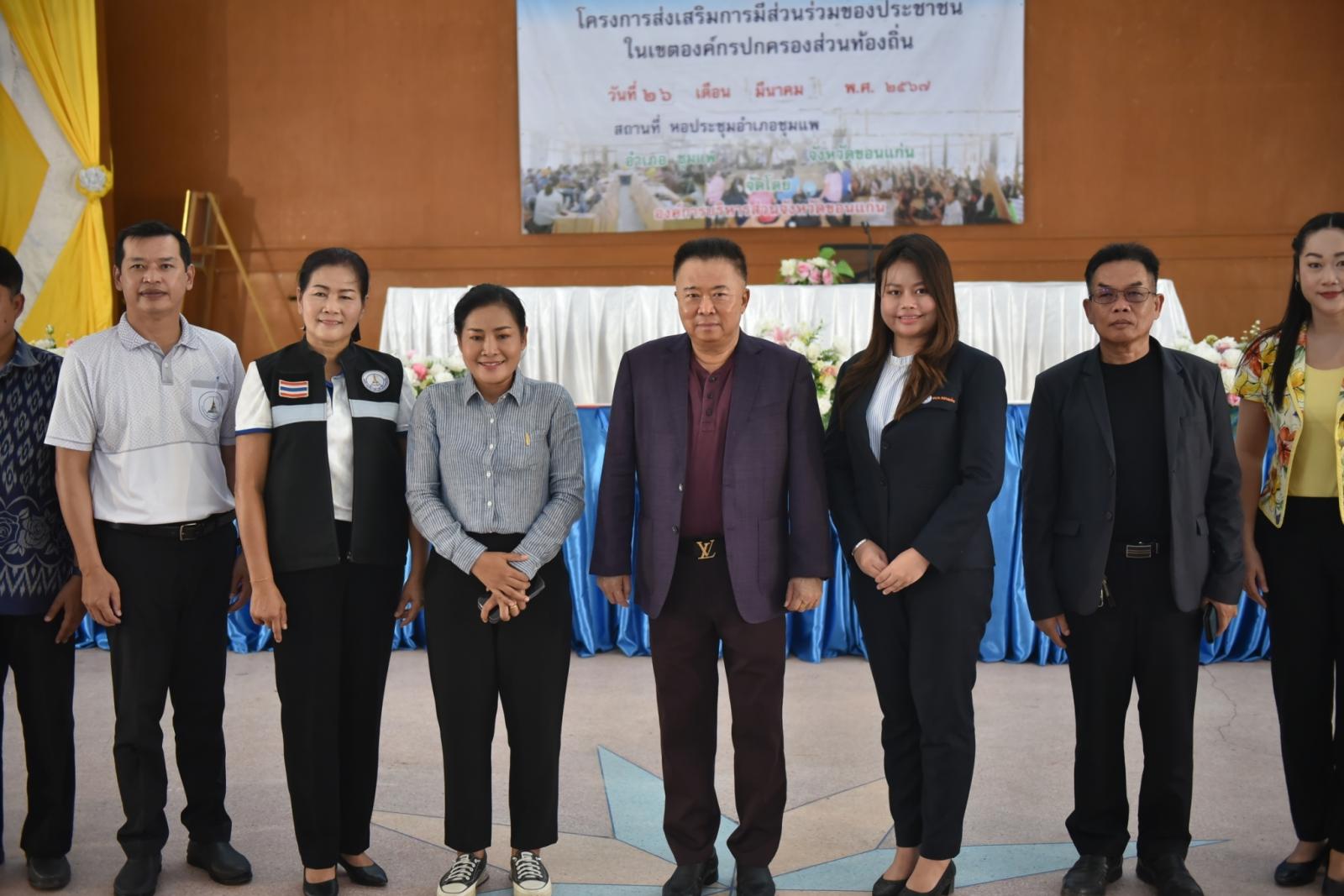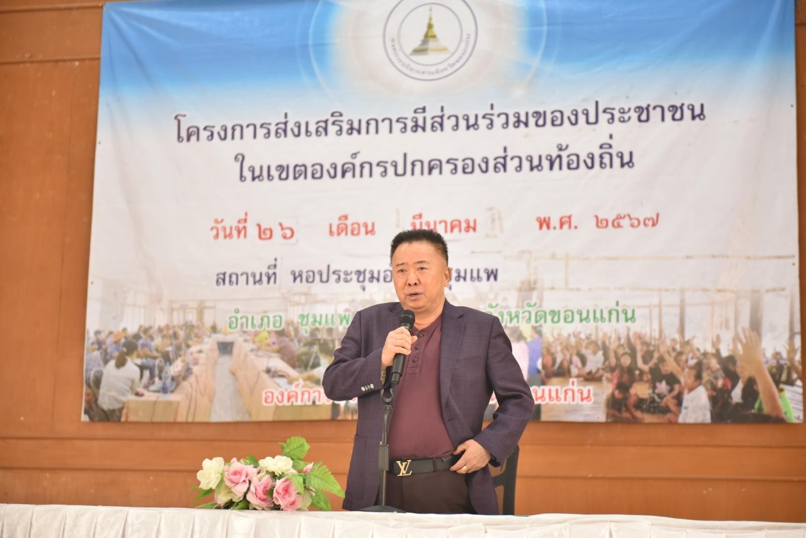 วันที่ 26 มีนาคม 2567 เวลา 11.00 น. ดร.พงษ์ศักดิ์ ตั้งวานิชกพงษ์ นายกองค์การบริหารส่วนจังหวัดขอนแก่น เป็นประธานเปิดโครงการส่งเสริมการมีส่วนร่วมของประชาชนในเขตองค์กรปกครองส่วนท้องถิ่น อ.ชุมแพ จำนวน 450 คน ในโอกาสนี้มี นายเพ็ชร มูลป้อม ที่ปรึกษานายก อบจ.ขอนแก่น ,นายนิรุตติ์ ปานนาค ส.อบจ.ขอนแก่น อ.ชุมแพ เขต 1,นางสาวชลิดา ปู่เพ็ง ส.อบจ.ขอนแก่น อ.ชุมแพ เขต 2 ,นางกฤษณา วันทอง ส.อบจ.ขอนแก่น อ.ชุมแพ เขต 3 พร้อมด้วย นางสาวอ้อยใจ คำบุญเรือง นายอำเภอชุมแพ และคณะผู้บริหาร หัวหน้าส่วนราชการ เจ้าหน้าที่ อบจ.ขอนแก่น ร่วมเป็นเกียรติในพิธี ณ หอประชุมอำเภอชุมแพ จังหวัดขอนแก่น