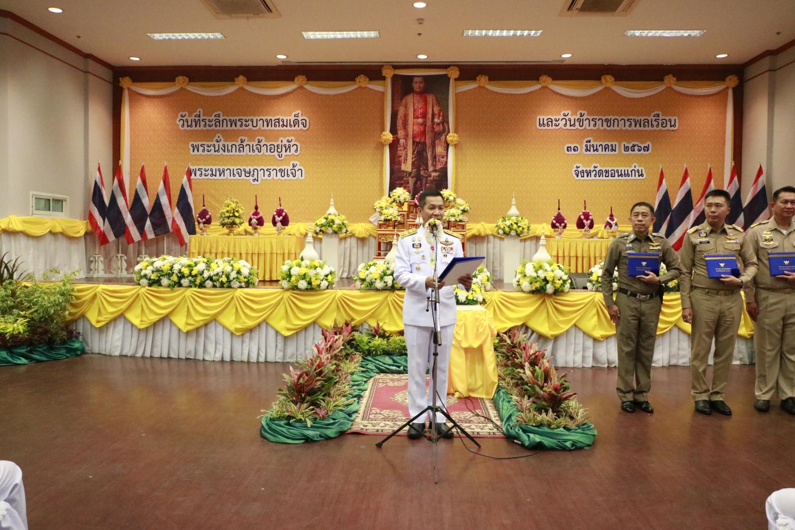เมื่อวันที่ 29 มีนาคม 2567 เวลา 06.30 น. องค์การบริหารส่วนจังหวัดขอนแก่น นำโดย ดร.พงษ์ศักดิ์ ตั้งวานิชกพงษ์ นายกองค์การบริหารส่วนจังหวัดขอนแก่น มอบหมายให้ นายนำศิลป์ วิเศษ ผู้อำนวยการสำนักศึกษาศาสนาและวัฒนธรรม พร้อมด้วยหัวหน้าส่วนราชการ ข้าราชการ อบจ.ขอนแก่น เข้าร่วมพิธีถวายราชสักการะและพิธีทำบุญตักบาตร เนื่องใน “ วันที่ระลึกพระบาทสมเด็จพระนั่งเกล้าเจ้าอยู่หัว พระมหาเจษฎาราชเจ้า” และ “วันข้าราชการพลเรือน” ประจำปี 2567 โดยมี นายพันธ์เทพ เสาโกศล รองผู้ว่าราชการจังหวัดขอนแก่น เป็นประธานในพิธี พร้อมด้วยหัวหน้าส่วนราชการ หน่วยงานภาครัฐ เข้าร่วมด้วย ณ ห้องประชุมแก่นเมือง ชั้น 1 ศาลากลางจังหวัดขอนแก่น (หลังใหม่)
