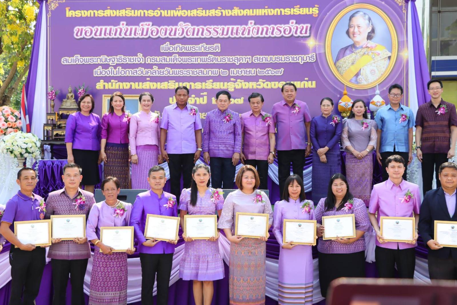 เมื่อวันที่ 2 เมษายน 2567 เวลา 09.30 น. องค์การบริหารส่วนจังหวัดขอนแก่น นำโดย ดร.พงษ์ศักดิ์ ตั้งวานิชกพงษ์ นายกองค์การบริหารส่วนจังหวัดขอนแก่น มอบหมายให้ นางบุษกร ศรีสุวรรณ์ ผู้อำนวยการส่วนส่งเสริมการศึกษาฯ และนางจิราพร ศิลปเทศ นักวิชาการศึกษาชำนาญการ เข้าร่วมเป็นเกียรติในพิธีเปิดโครงการส่งเสริมการอ่านเพื่อเสริมสร้างสังคมแห่งการเรียนรู้ ขอนแก่นเมืองนวัตกรรมแห่งการอ่าน เพื่อเทิดพระเกียรติสมเด็จพระกนิษฐาธิราชเจ้า กรมสมเด็จพระเทพรัตนราชสุดาฯสยามบรมราชกุมารี เนื่องในโอกาสวันคล้ายวันพระราชสมภพ 2 เมษายน 2567 โดยมี นายไกรสร กองฉลาด ผู้ว่าราชการจังหวัดขอนแก่น เป็นประธานในพิธี ณ สำนักงานส่งเสริมการเรียนรู้จังหวัดขอนแก่น