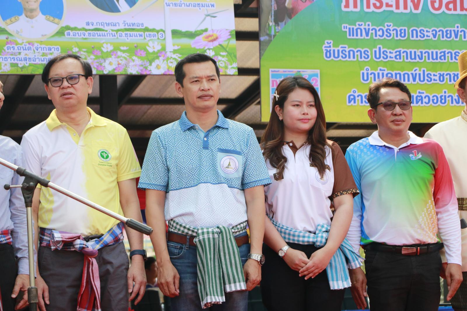 โดยมี นางสาวอ้อยใจ คำบุญเรือง นายอำเภอชุมแพ กล่าวต้อนรับ นายแพทย์พงษ์ศักดิ์ จันทร์งาม รองผู้อำนวยการโรงพยาบามชุมแพ ฝ่ายบริหารปฐมภูมิ กล่าวคำนิยม อสม. และ นางกฤษณา วันทอง ส.อบจ.ขอนแก่น อ.ชุมแพ เขต3 ในฐานะประธาน อสม.อำเภอชุมแพ กล่าวรายงาน ในโอกาสนี้ได้รับเกียรติจาก นายสิงหภณ ดีนาง สส.ขอนแก่น เขต6 มอบรถพยาบาลให้กับโรงพยาบาลชุมแพ และมอบเครื่องวัดความดัน ให้แก่ รพสต. ในอำเภอชุมแพ พร้อมนี้มี นายวิศรุต ปู่เพ็ง ที่ปรึกษารัฐมนตรีช่วยว่าการกระทรวงศึกษาธิการ ,นายนิรุตติ์ ปานนาค ส.อบจ.อำเภอชุมแพ เขต1 ,นางสาวชลิดา ปู่เพ็ง ส.อบจ.อำเภอชุมแพ เขต2 ผู้นำท้องถิ่น ผู้นำท้องที่ อำเภอชุมแพ และอสม. อำเภอชุมแพ และประชาชนเข้าร่วม ณ สนามโรงเรียนชุมแพศึกษา อ.ชุมแพ จังหวัดขอนแก่น