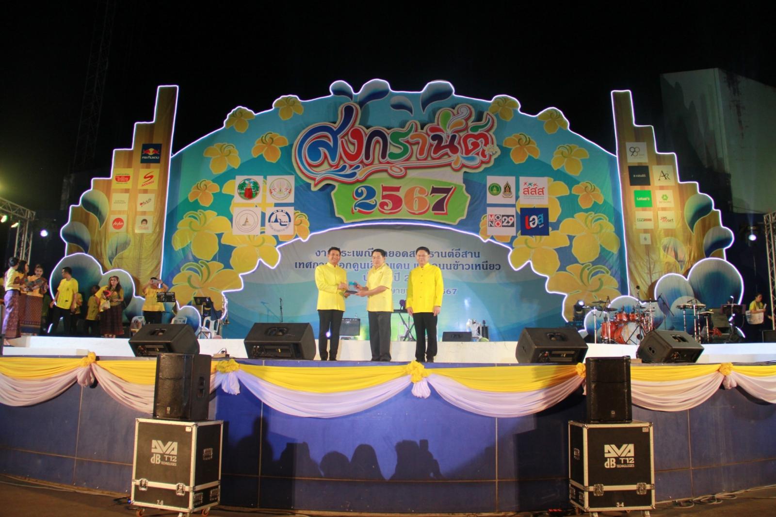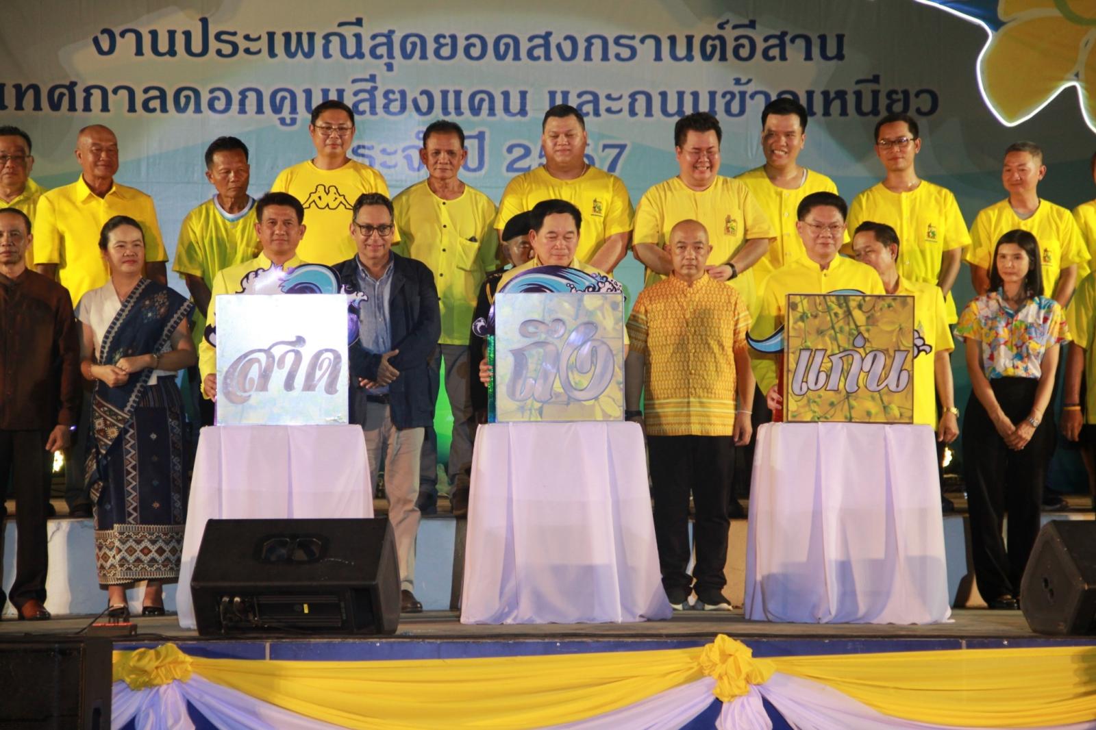 นวันที่ 8 เมษายน 2567 เวลา 18:00 น องค์การบริหารส่วนจังหวัดขอนแก่น นำโดย ดร.พงษ์ศักดิ์ ตั้งวานิชกพงษ์ นายกองค์การบริหารส่วนจังหวัดขอนแก่น มอบหมายให้ นายสิทธิกุล ภูคำวงศ์ รองนายกองค์การบริหารส่วนจังหวัดขอนแก่น ร่วมกล่าวแสดงความยินดี และกล่าวต้อนรับนักท่องเที่ยวในงานประเพณีสุดยอดสงกรานต์อีสาน เทศกาลดอกคูณเสียงแคน และถนนข้าวเหนียว ประจำปี 2567 โดยมีนายไกรสร กองฉลาด ผู้ว่าราชการจังหวัดขอนแก่น เป็นประธาน มีนายธีระศักดิ์ ฑีฆายุพันธุ์ นายกเทศมนตรีนครขอนแก่น กล่าวถึงความเป็นมาและวัตถุประสงค์ของการจัดงาน ในโอกาสนี้ มี นายยุทธพร พิรุณสาร รองผู้ว่าราชการจังหวัดขอนแก่น หัวหน้าส่วนข้าราชการ หน่วยงานภาครัฐ และเอกชนร่วมเป็นเกียรติ ณ เวที สวนสาธารณะ 200 ปี บึงแก่นนครอำเภอเมือง จังหวัดขอนแก่น